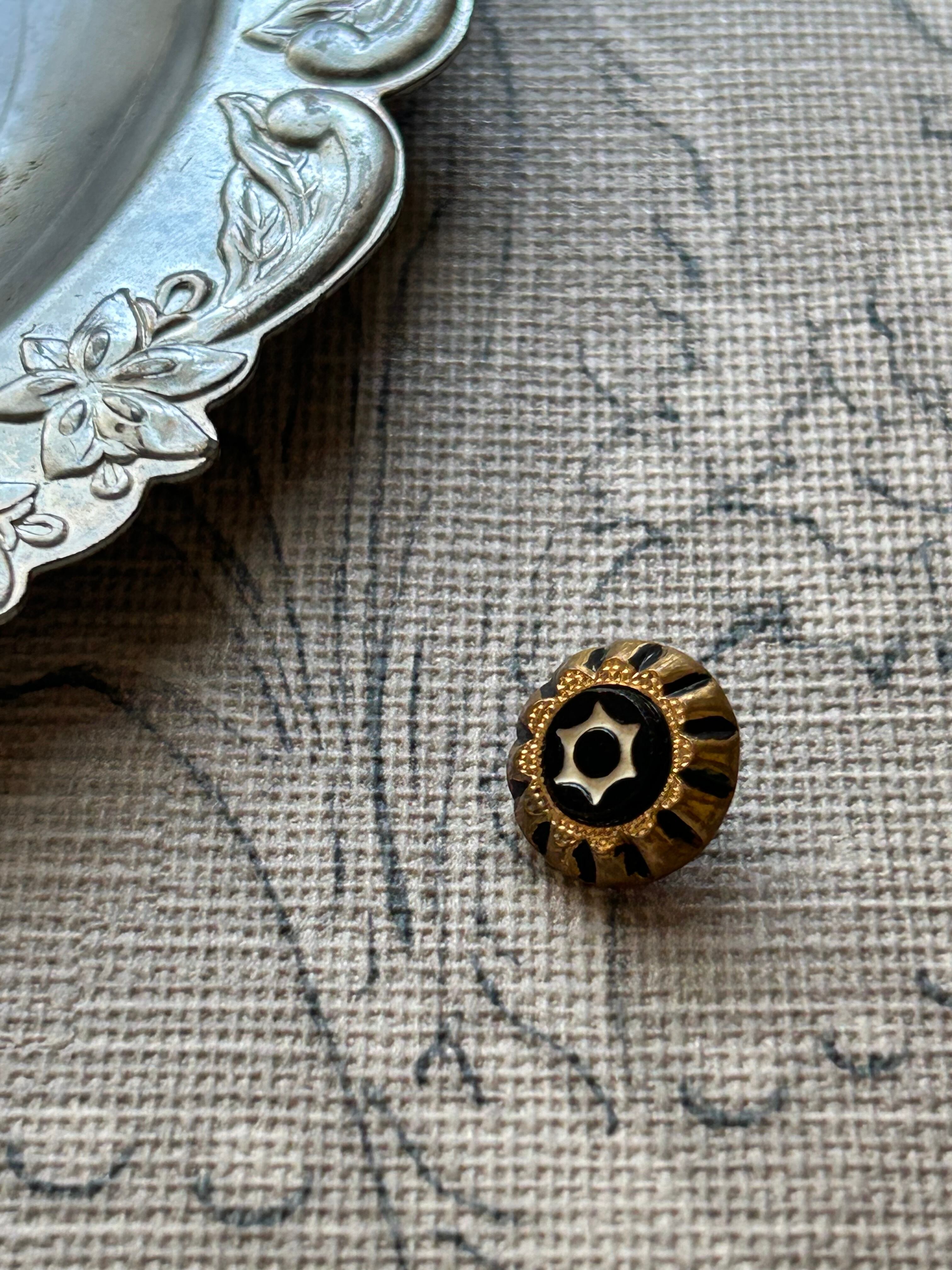 フランスアンティークボタン カボション×メタル 1900年代初頭 星型の彫り模様 アクセサリーパーツ コレクション