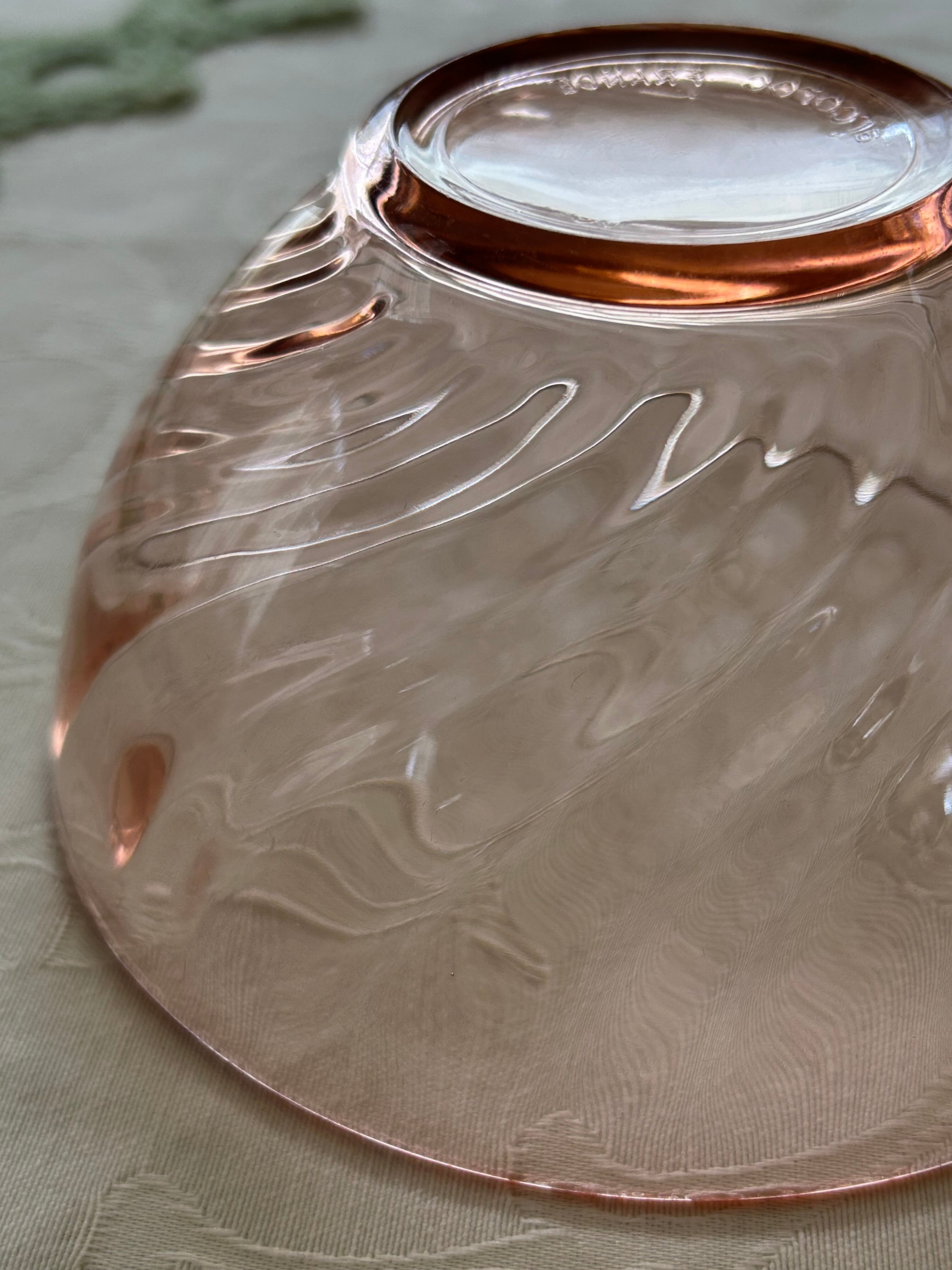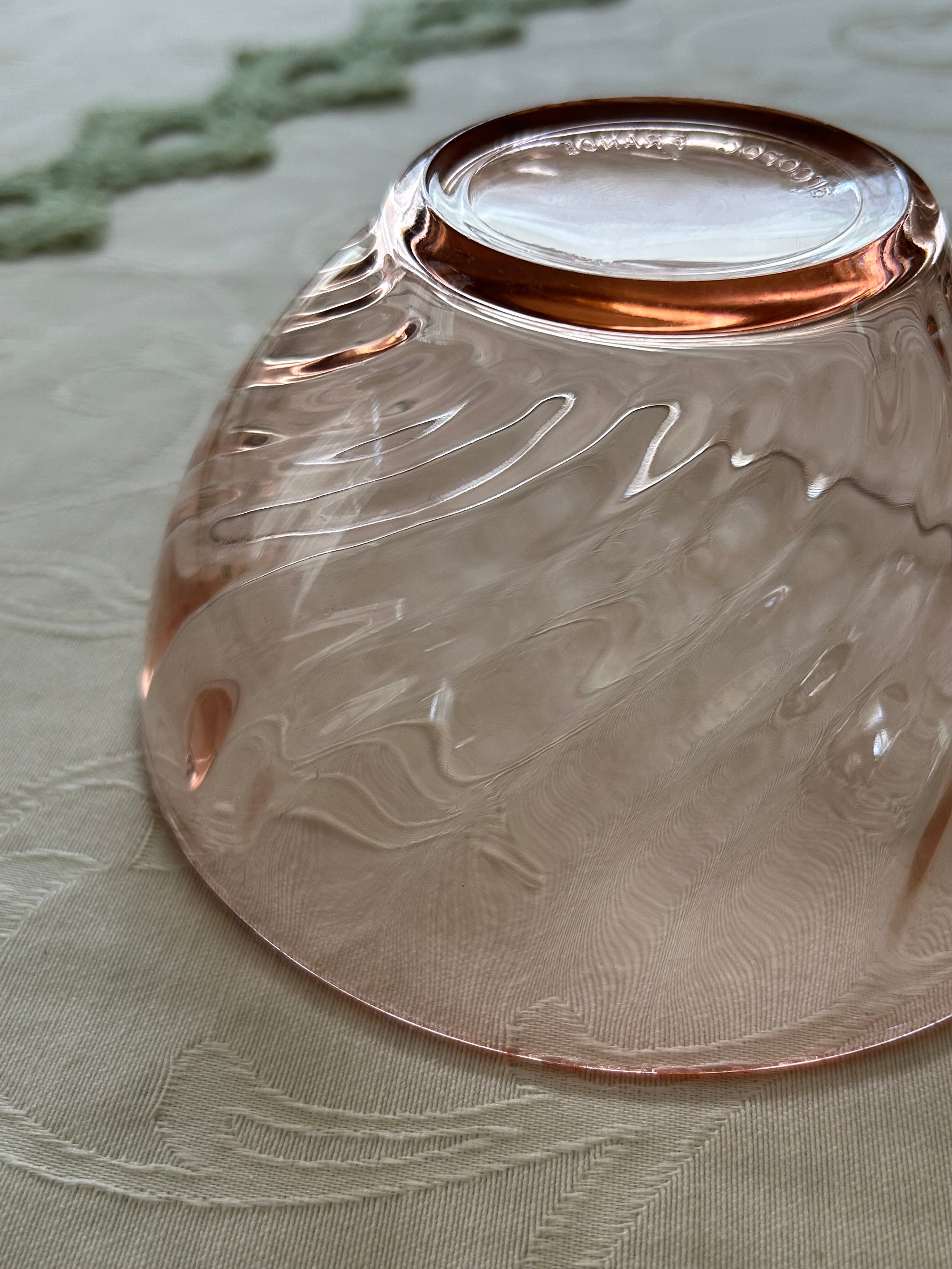 フランスVintage アルク社 アルコロック arcoroc ロザリンガラス カフェオレボウル/ボウルプレート ピンクガラス 1970年代 インテリア小物 撮影小物 BE