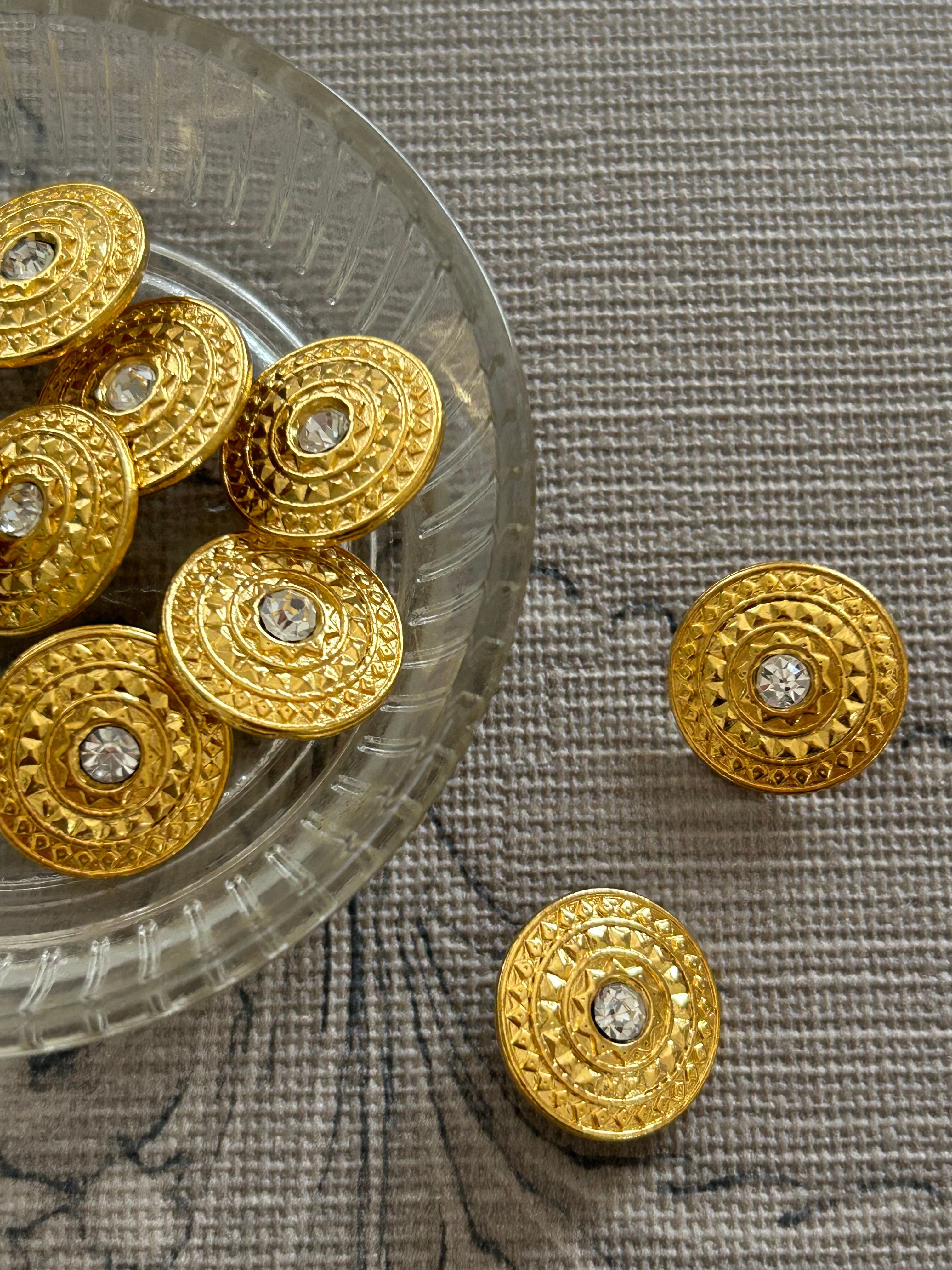 Japanese Vintageボタン レトロボタン ゴールド ストーン 17mm メタル アクセサリーパーツ デコレーション材
