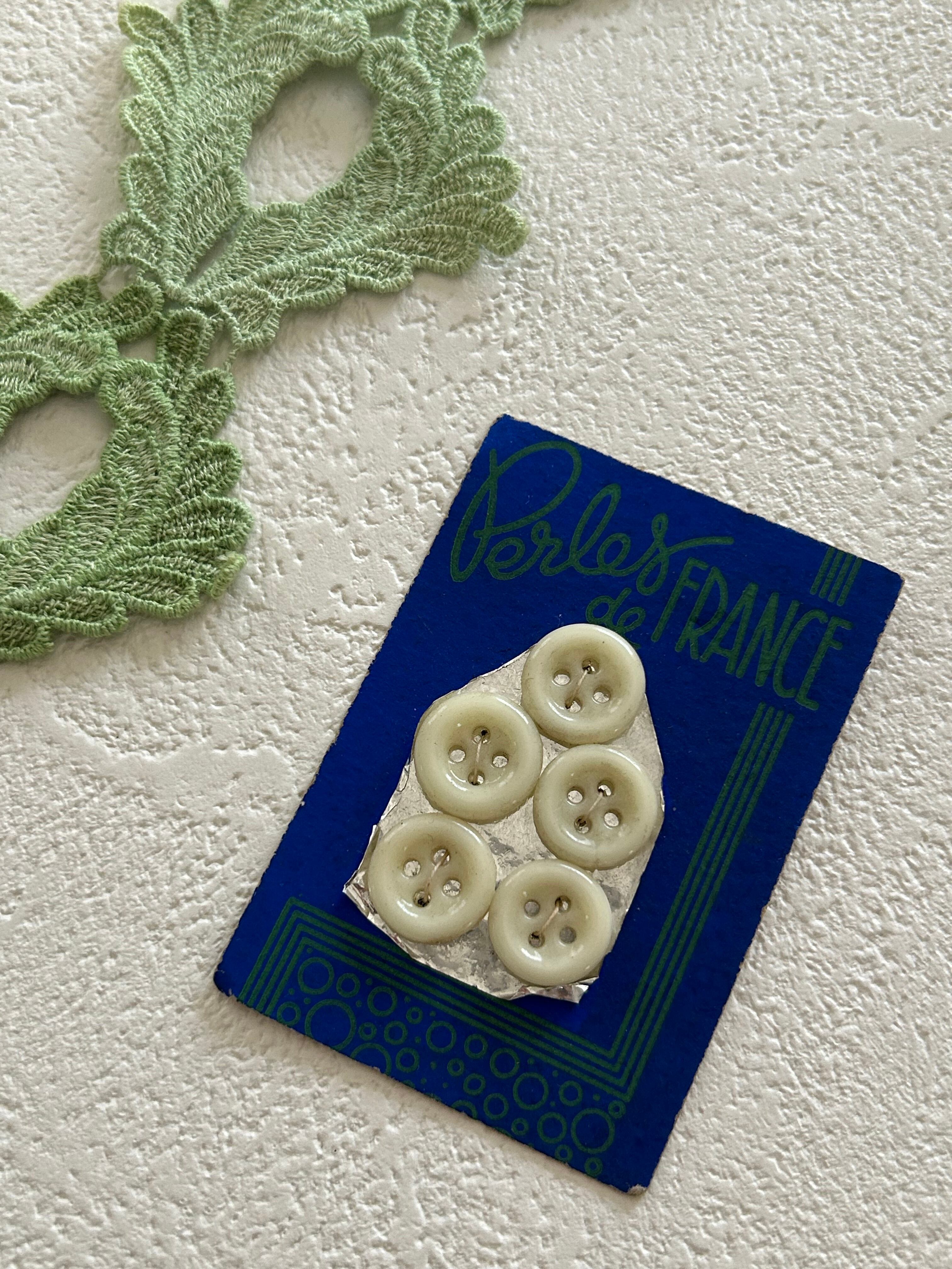 フランス Vintage ヴィンテージボタン シート付き ミルクガラスボタン 15mm ハンドメイド 撮影小物