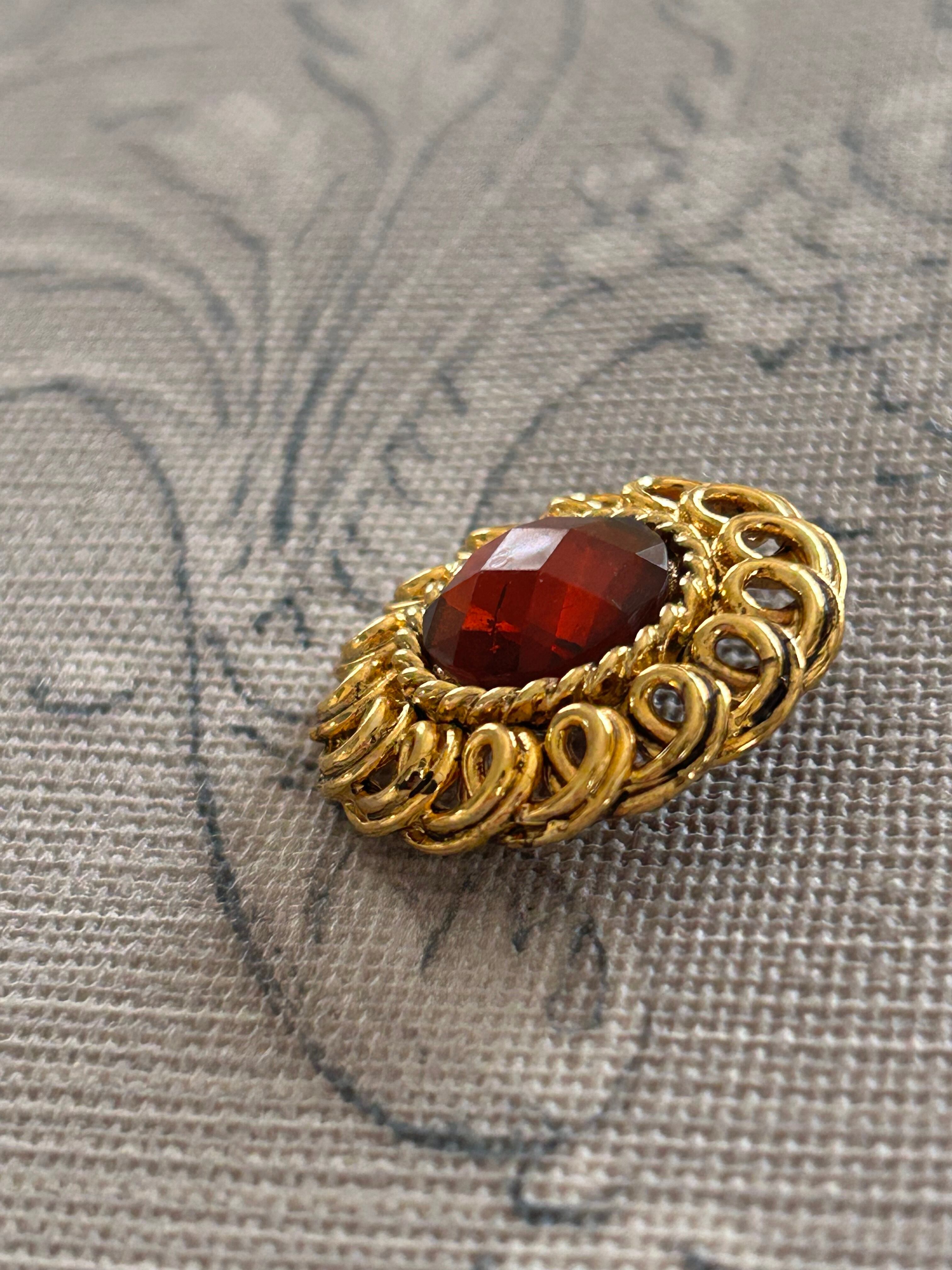 中央に華やかなレッドカラーのカボション。