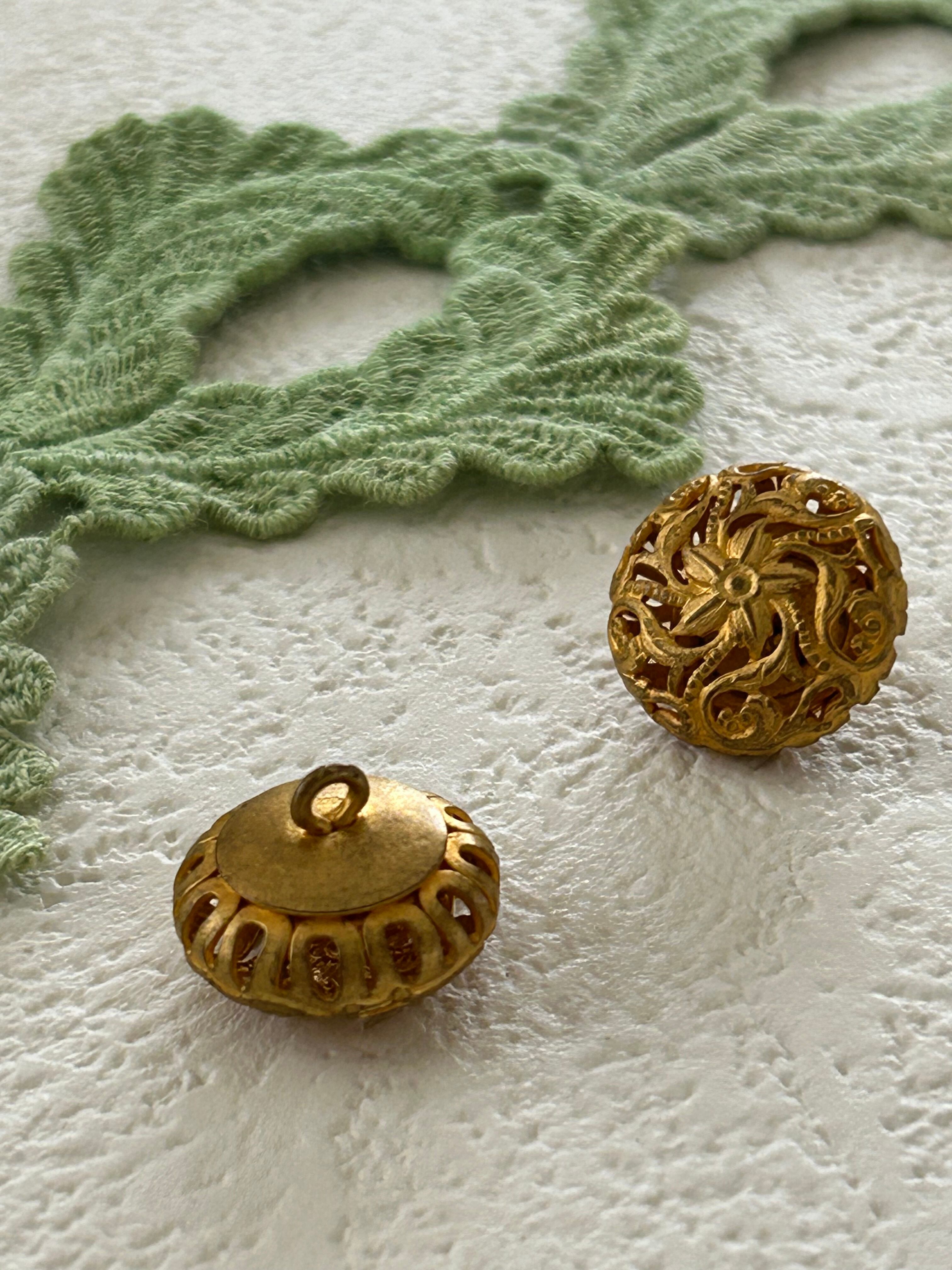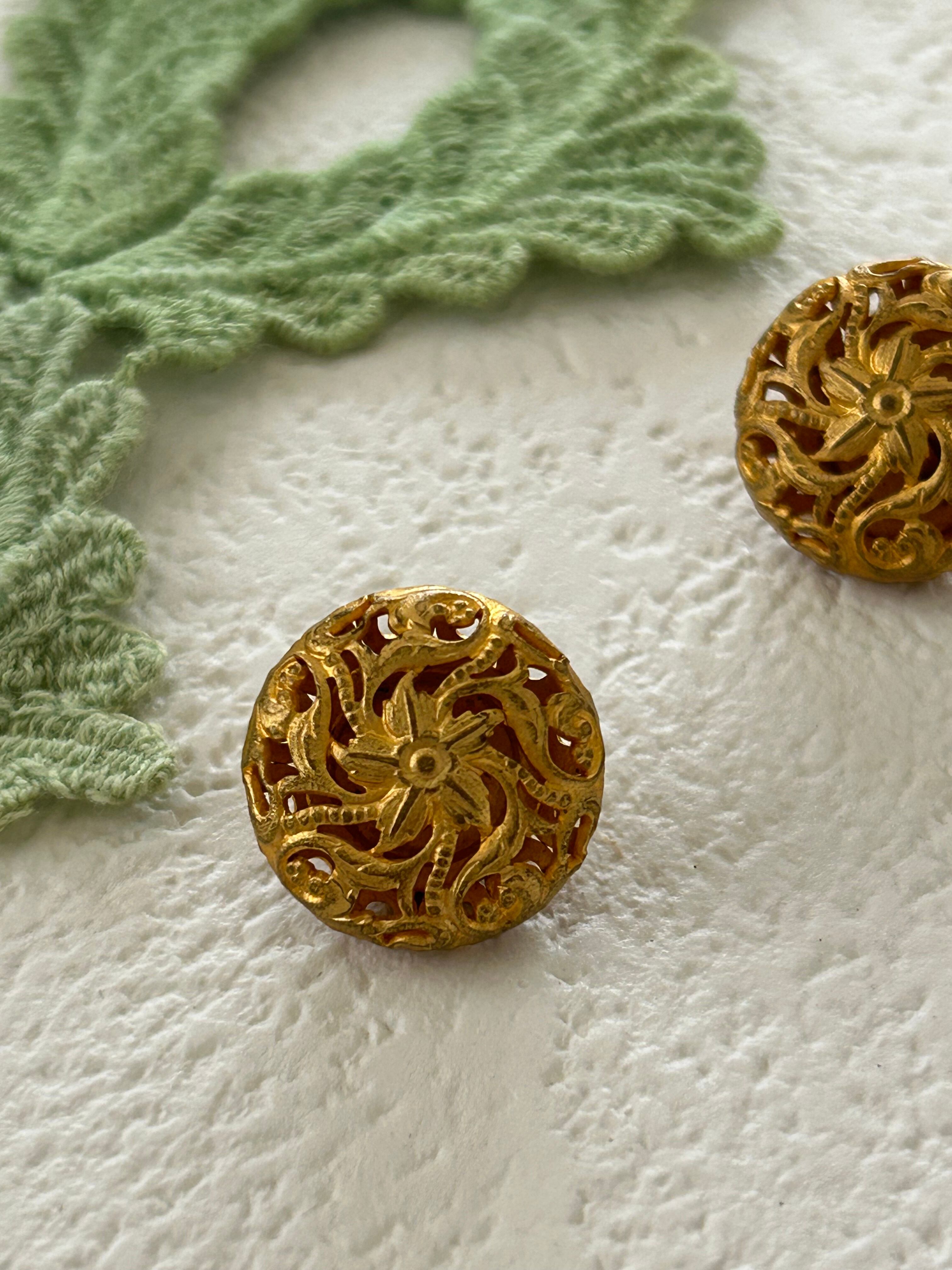 中央にお花のモチーフ、クラシカルな透かし模様とマットゴールドのお色がエレガントなデザインのボタンです。