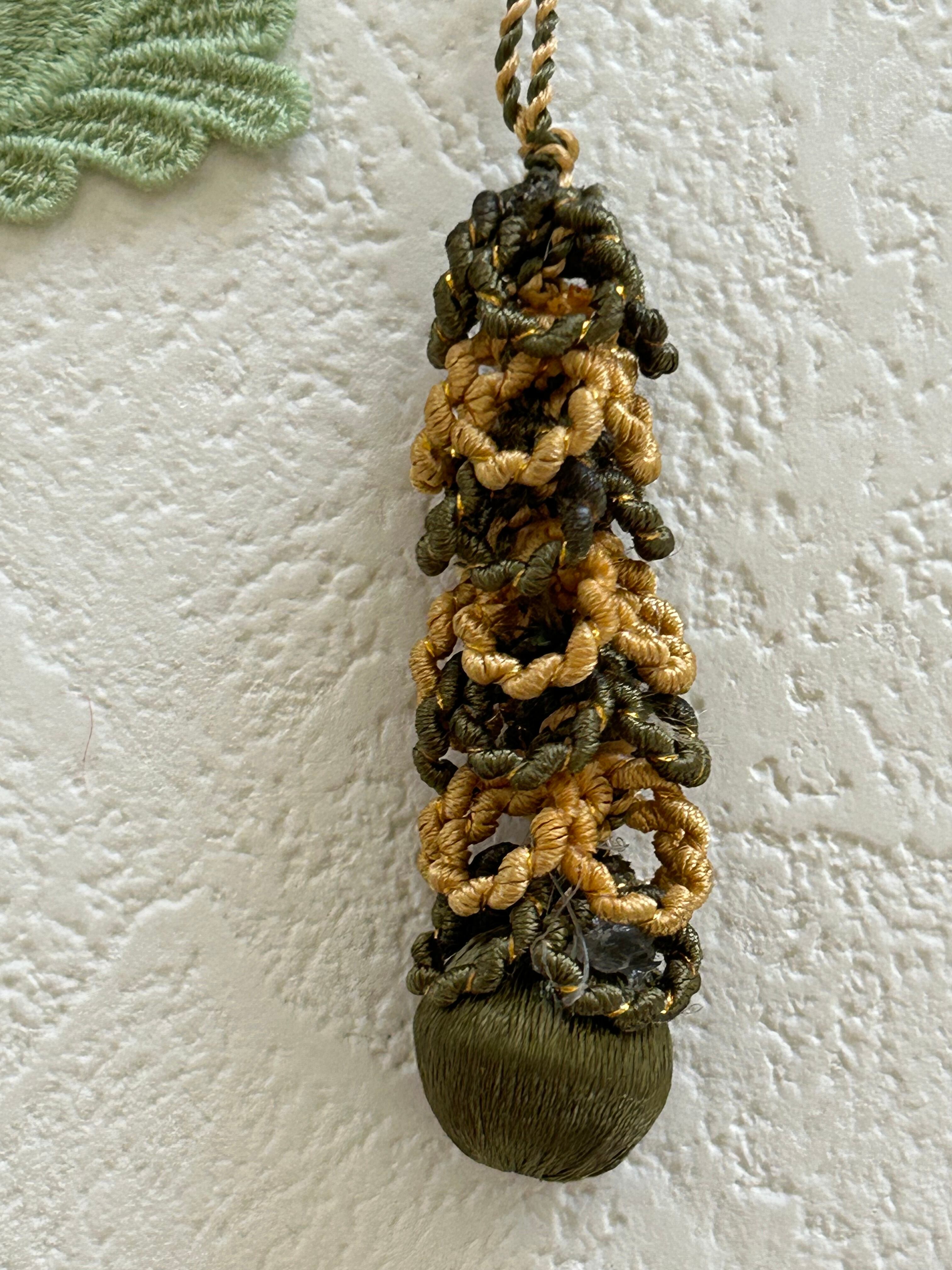 輸入デザインタッセル 巻玉 カーキ×イエローゴールド 65mm カルトナージュ デコレーション材 装飾材