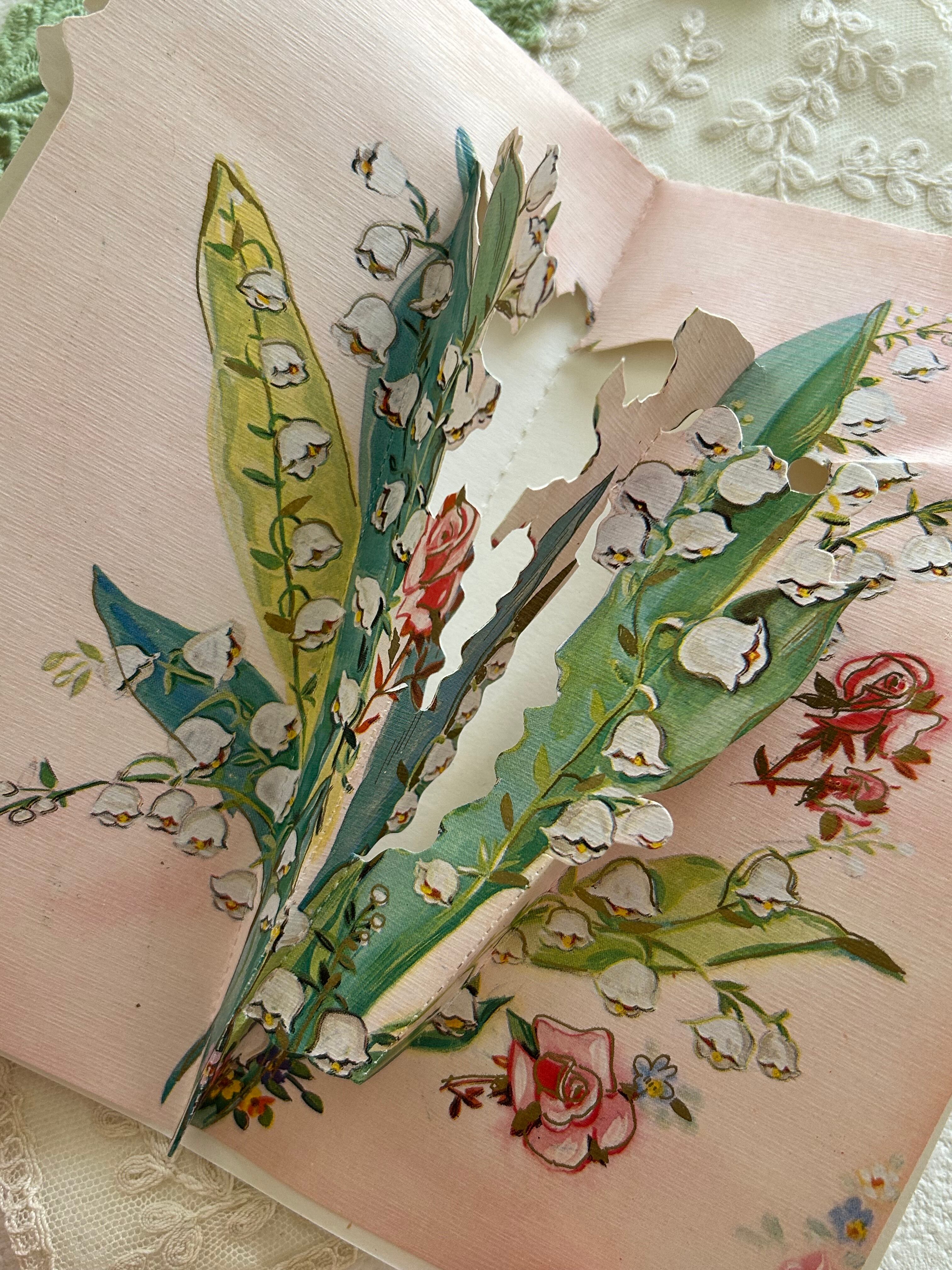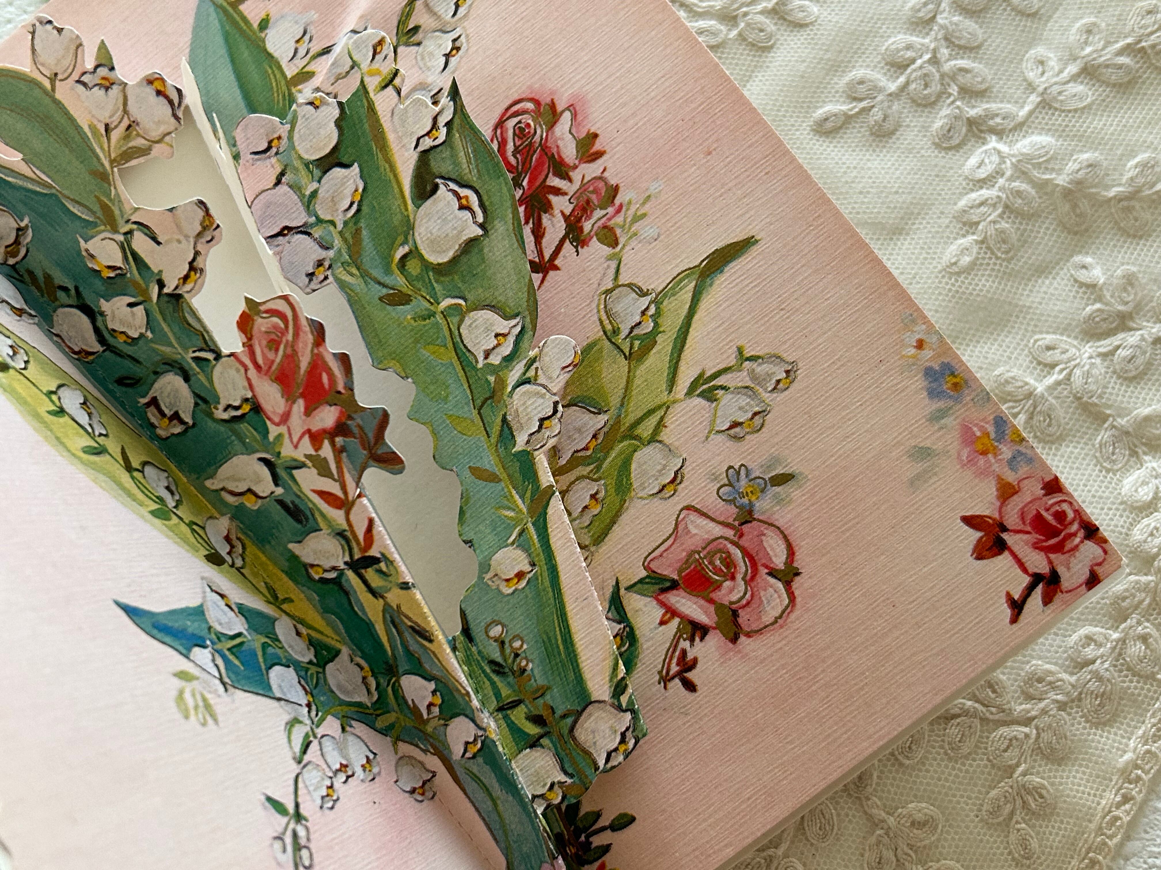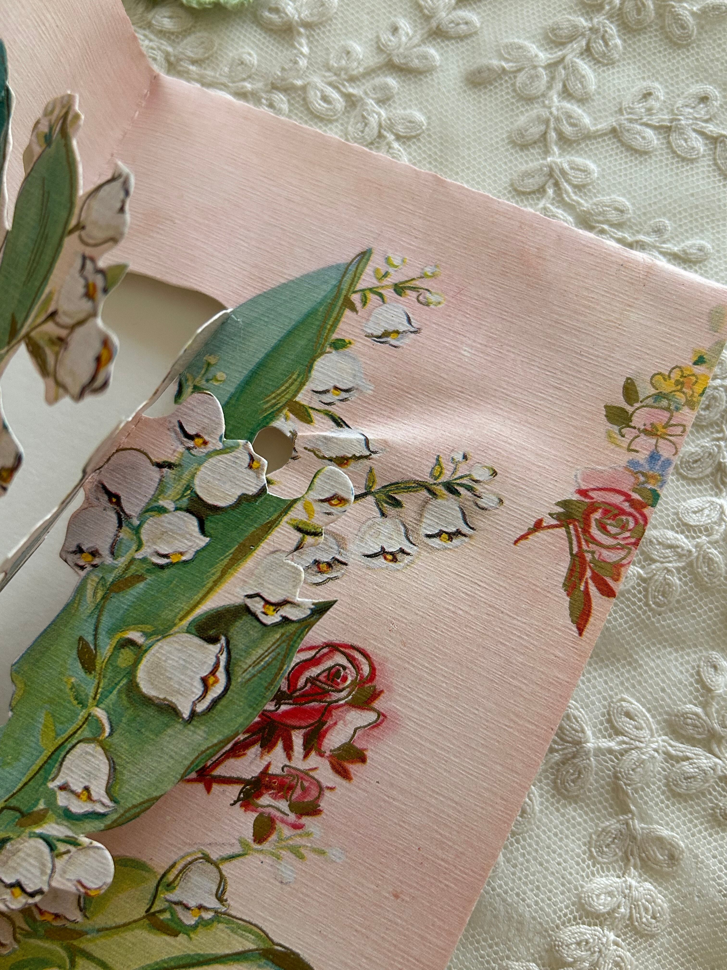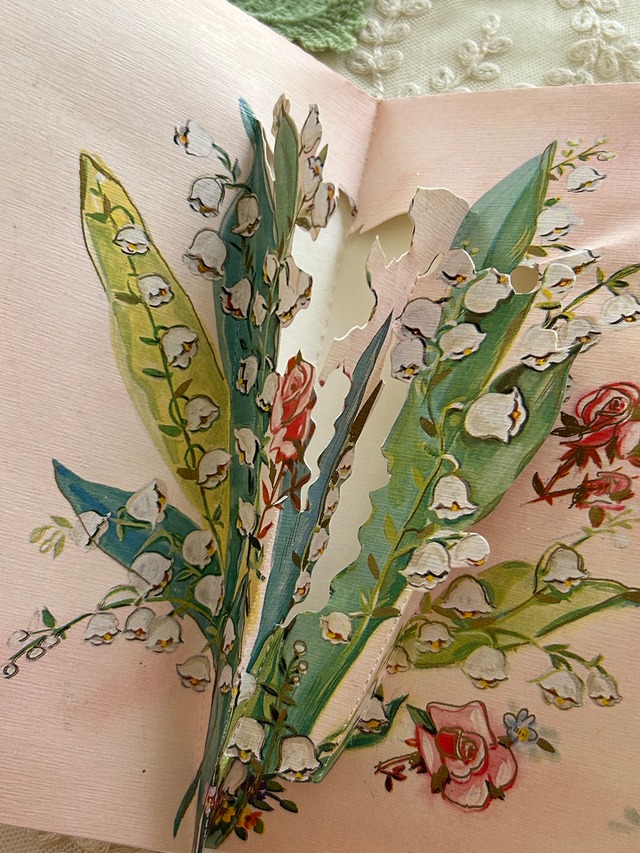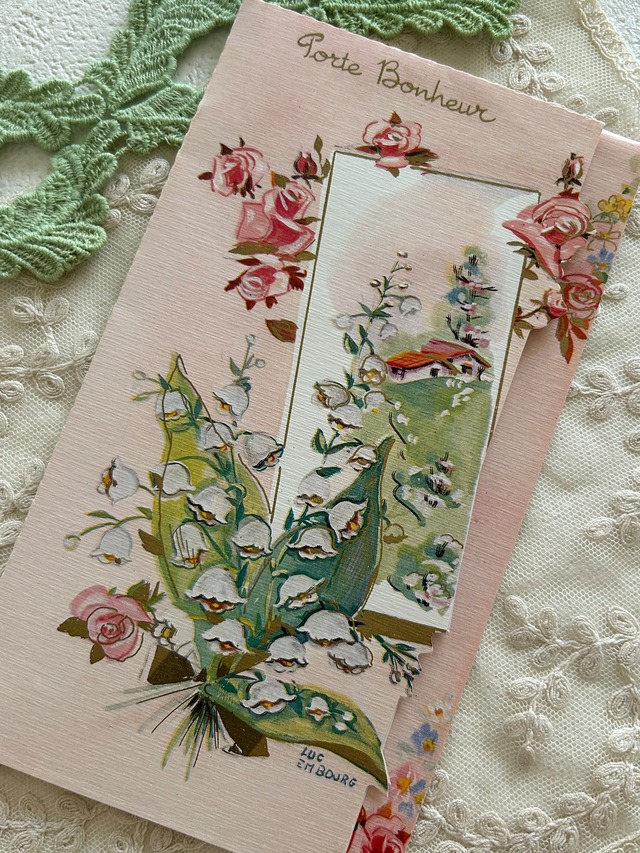 フランスアンティーク 仕掛けカード Muget すずらん Rose ピンク porte-bonheur インテリア 見開きタイプ