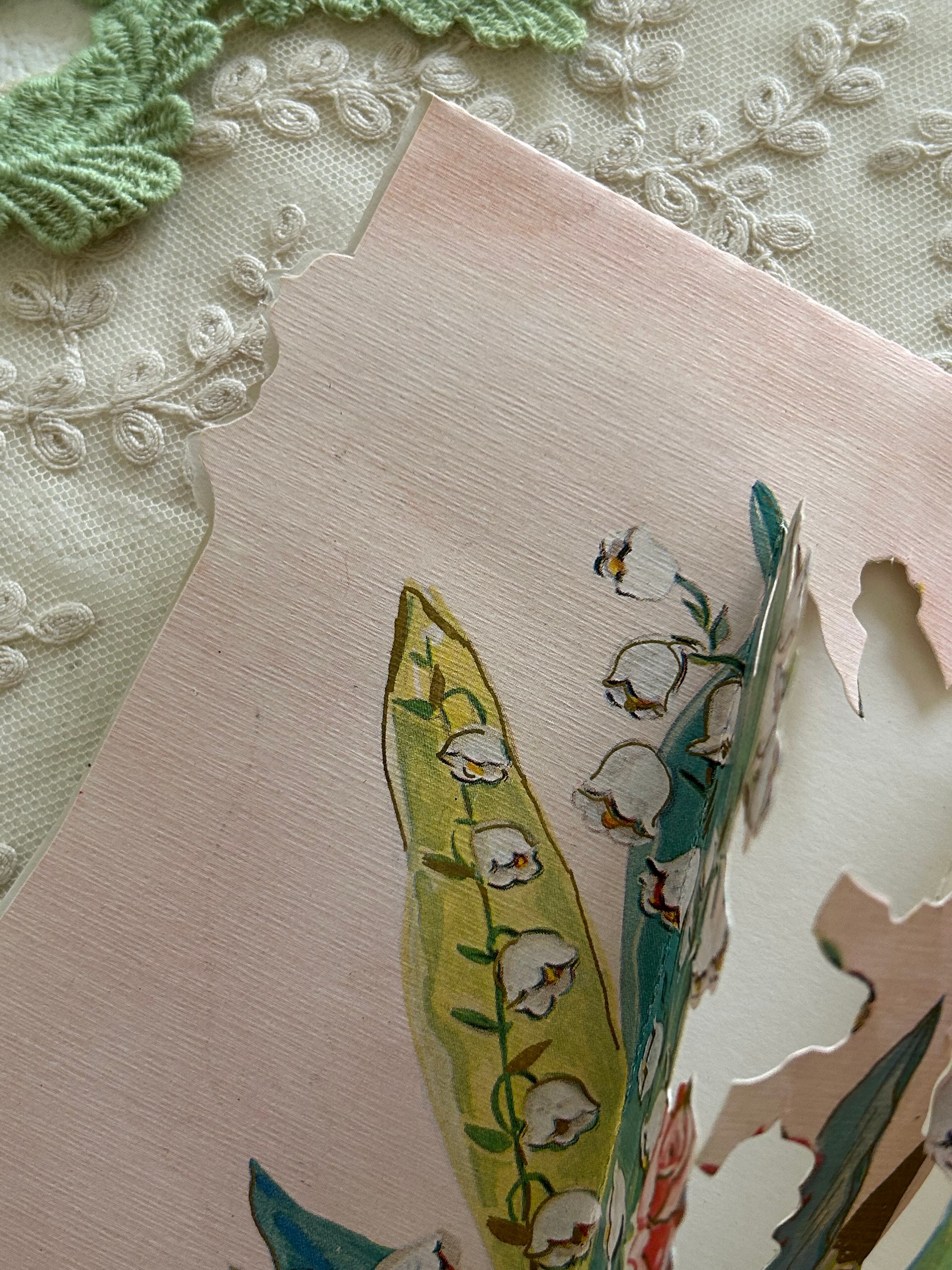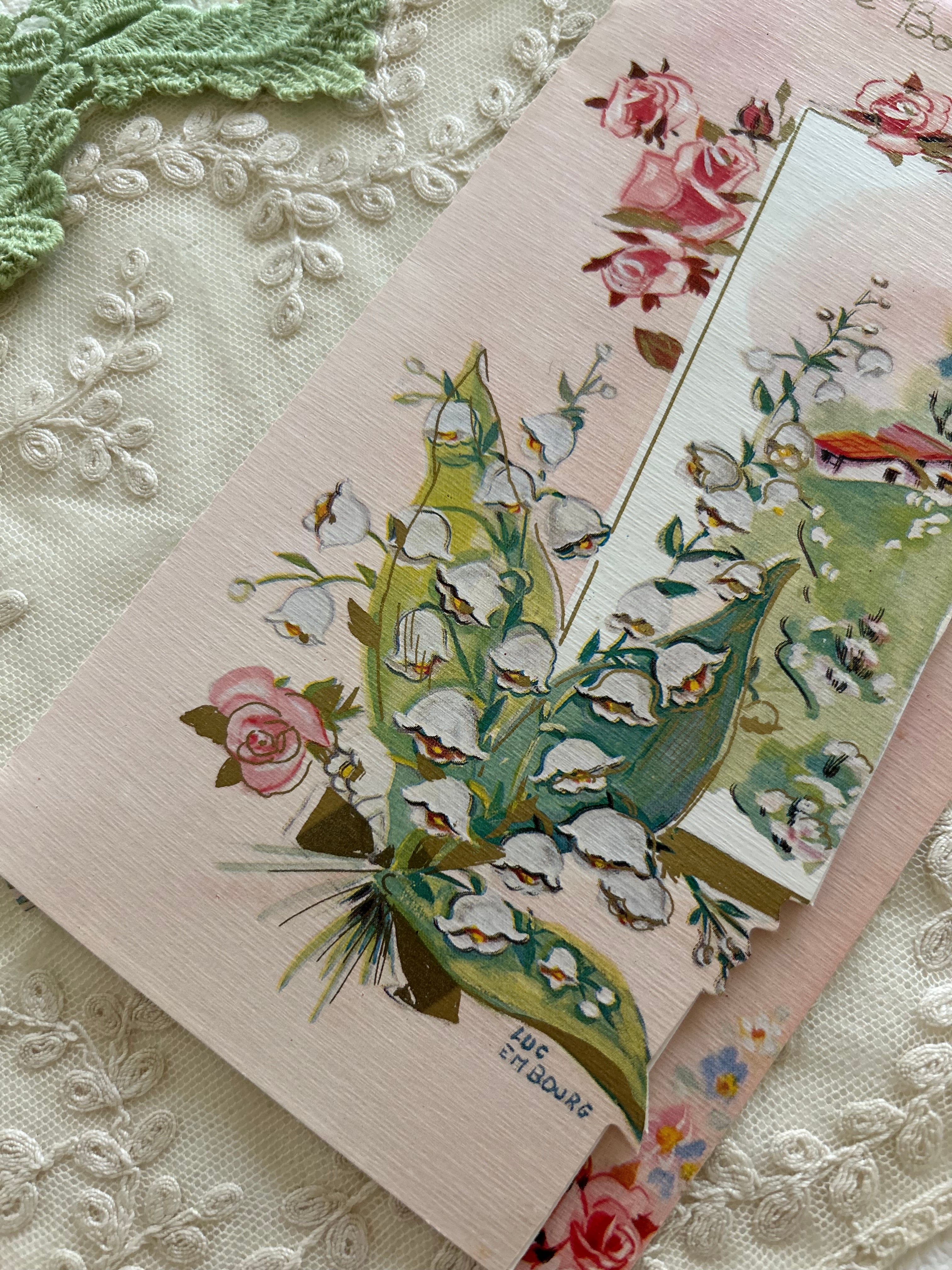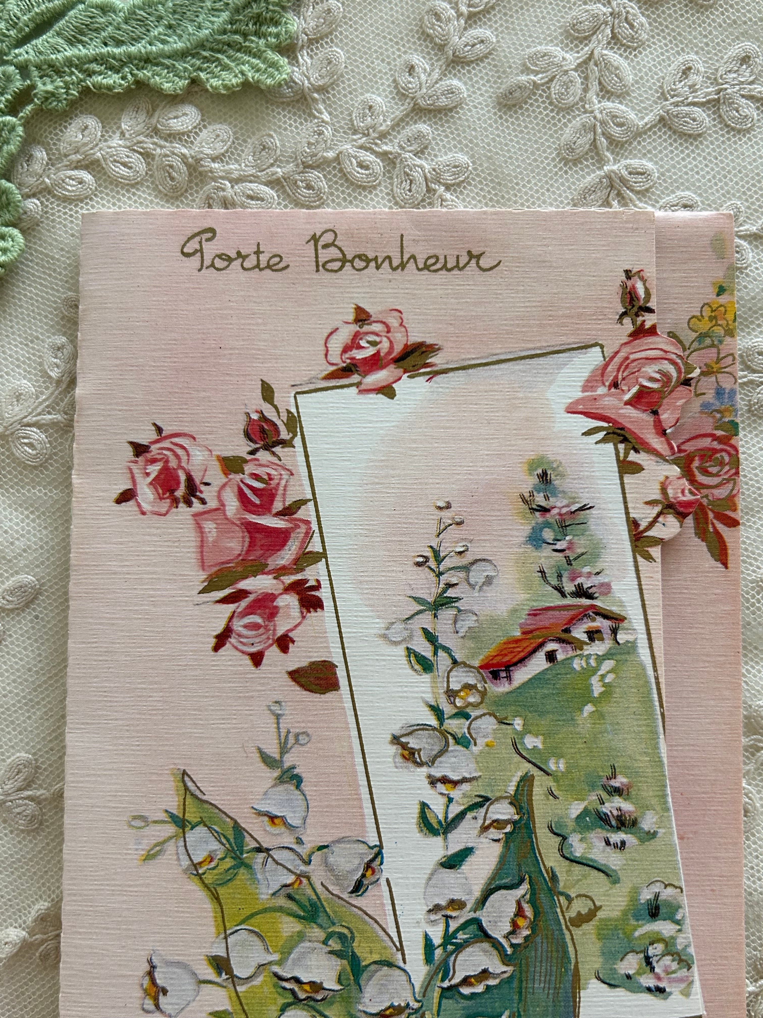 フランスアンティーク 仕掛けカード Muget すずらん Rose ピンク porte-bonheur インテリア 見開きタイプ