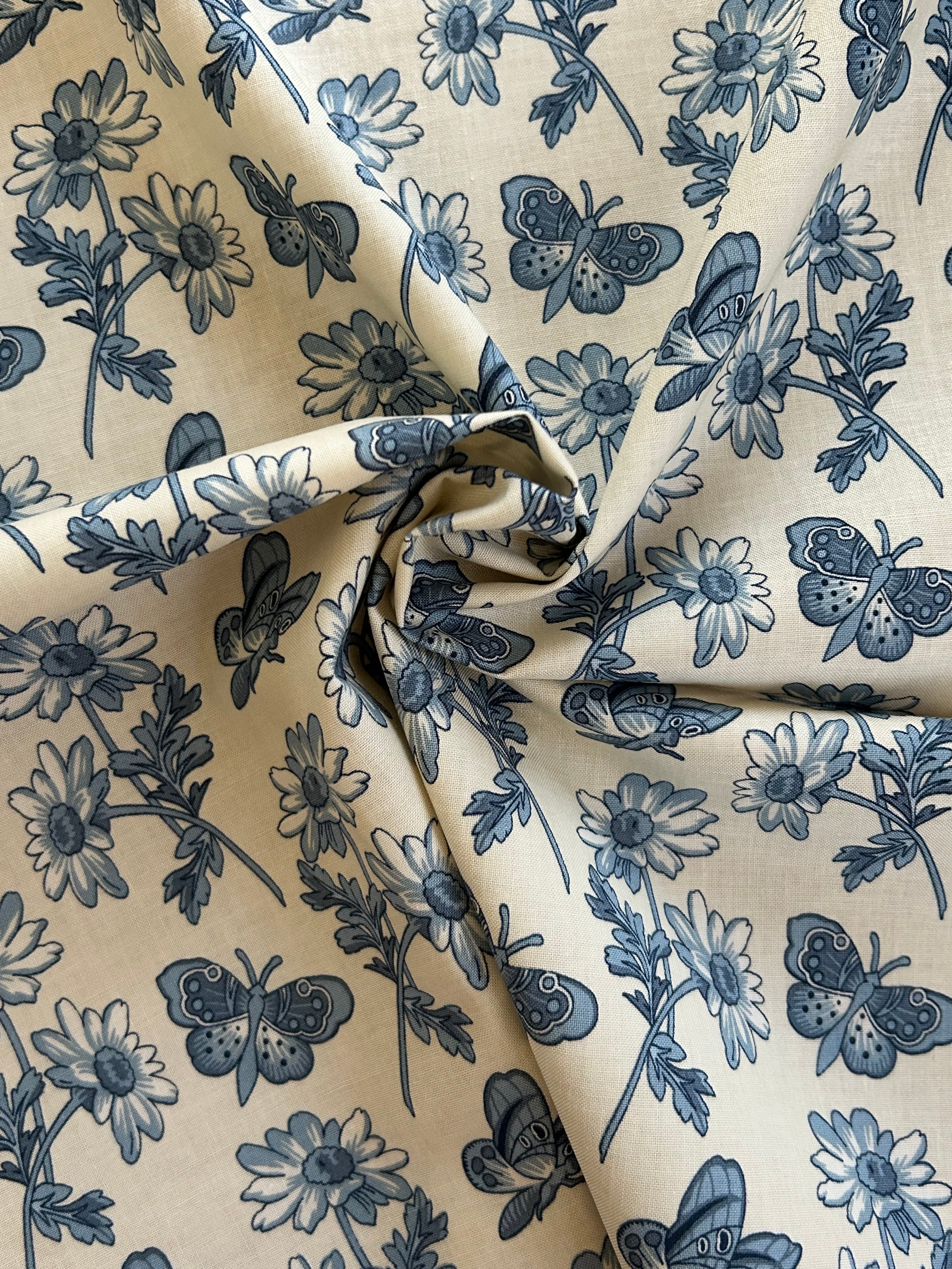 輸入コットンファブリック Meadow Erin Turner USA バタフライ柄 蝶々 パピヨン ブルー系 カルトナージュ
