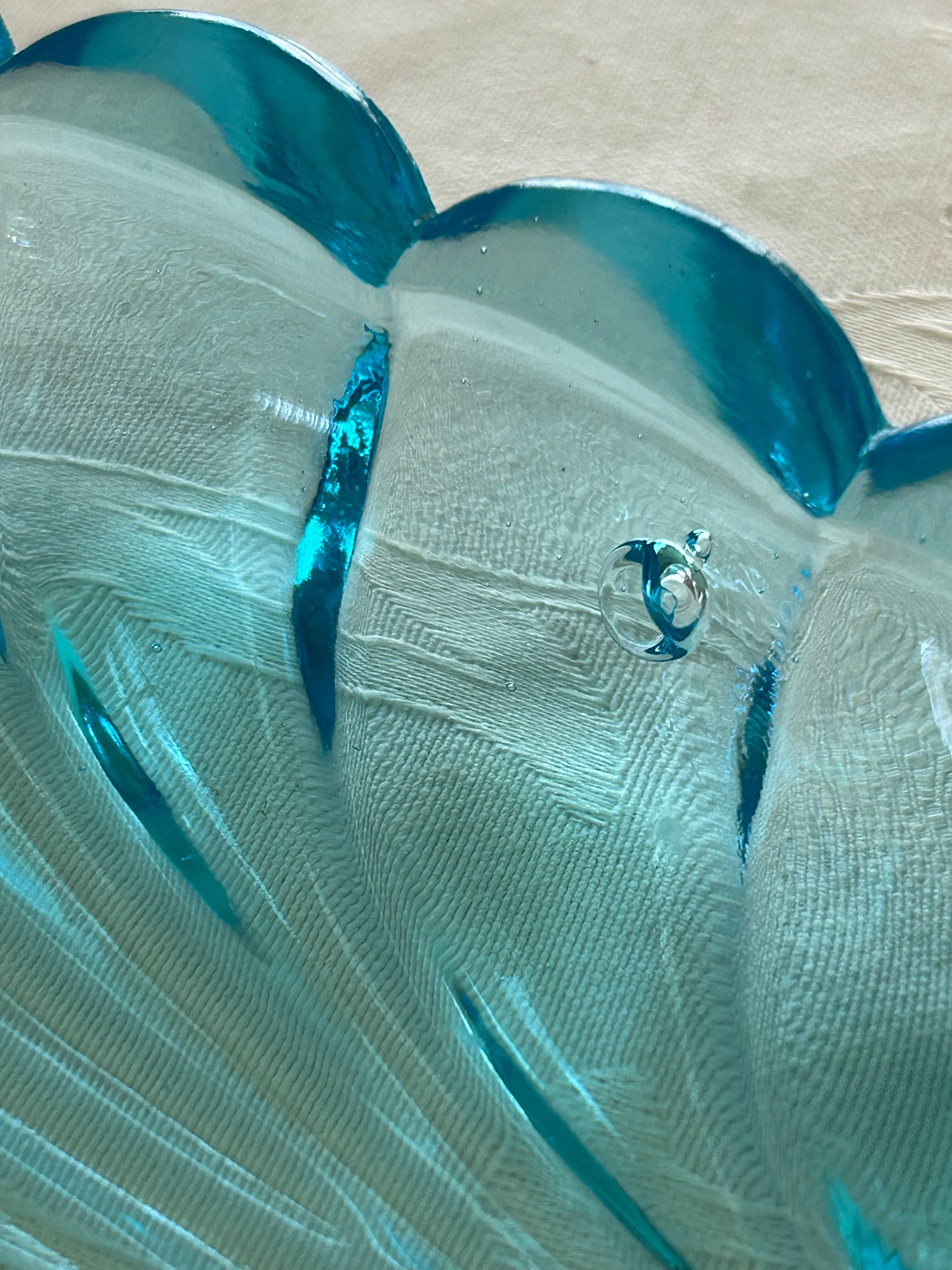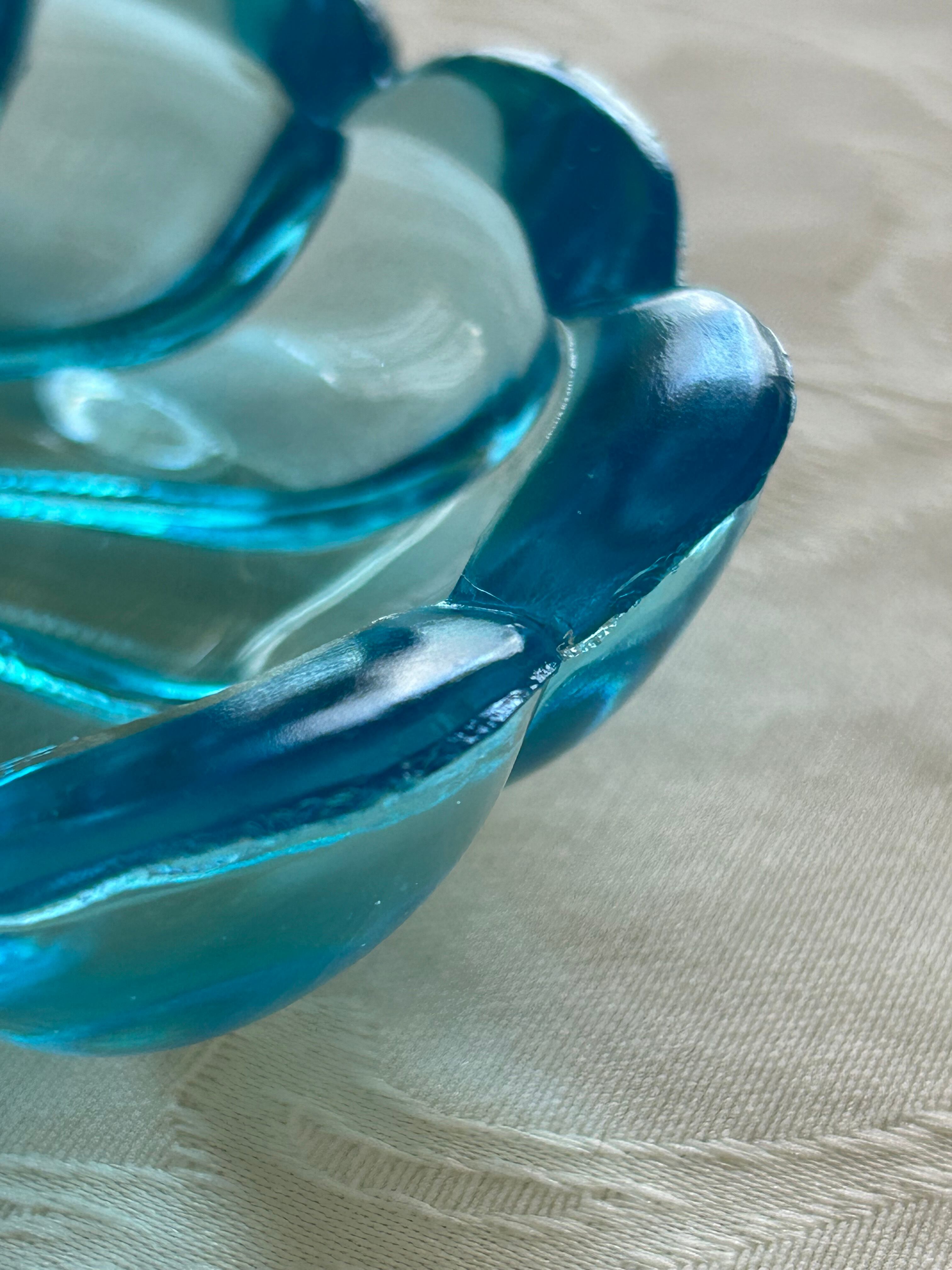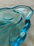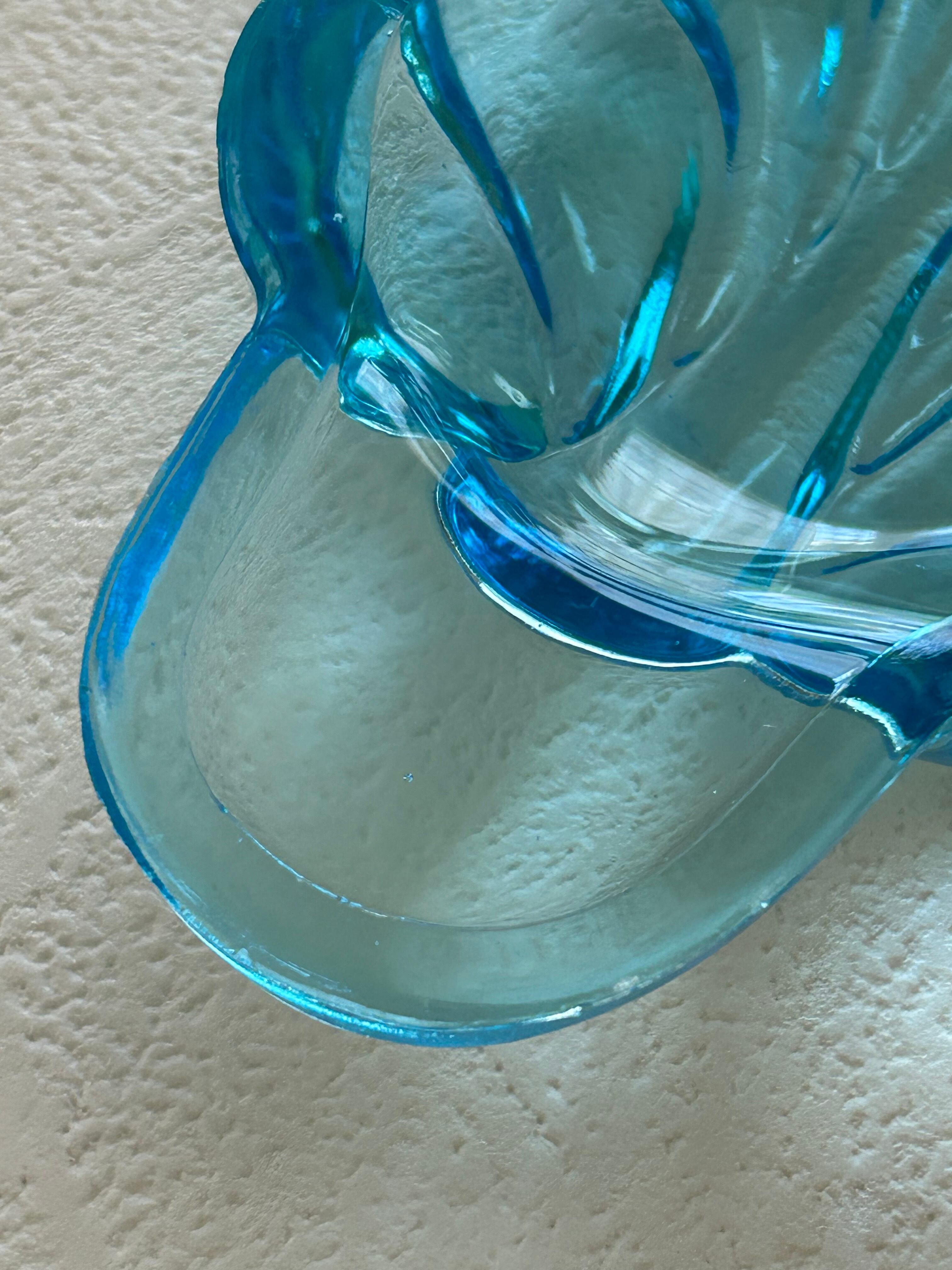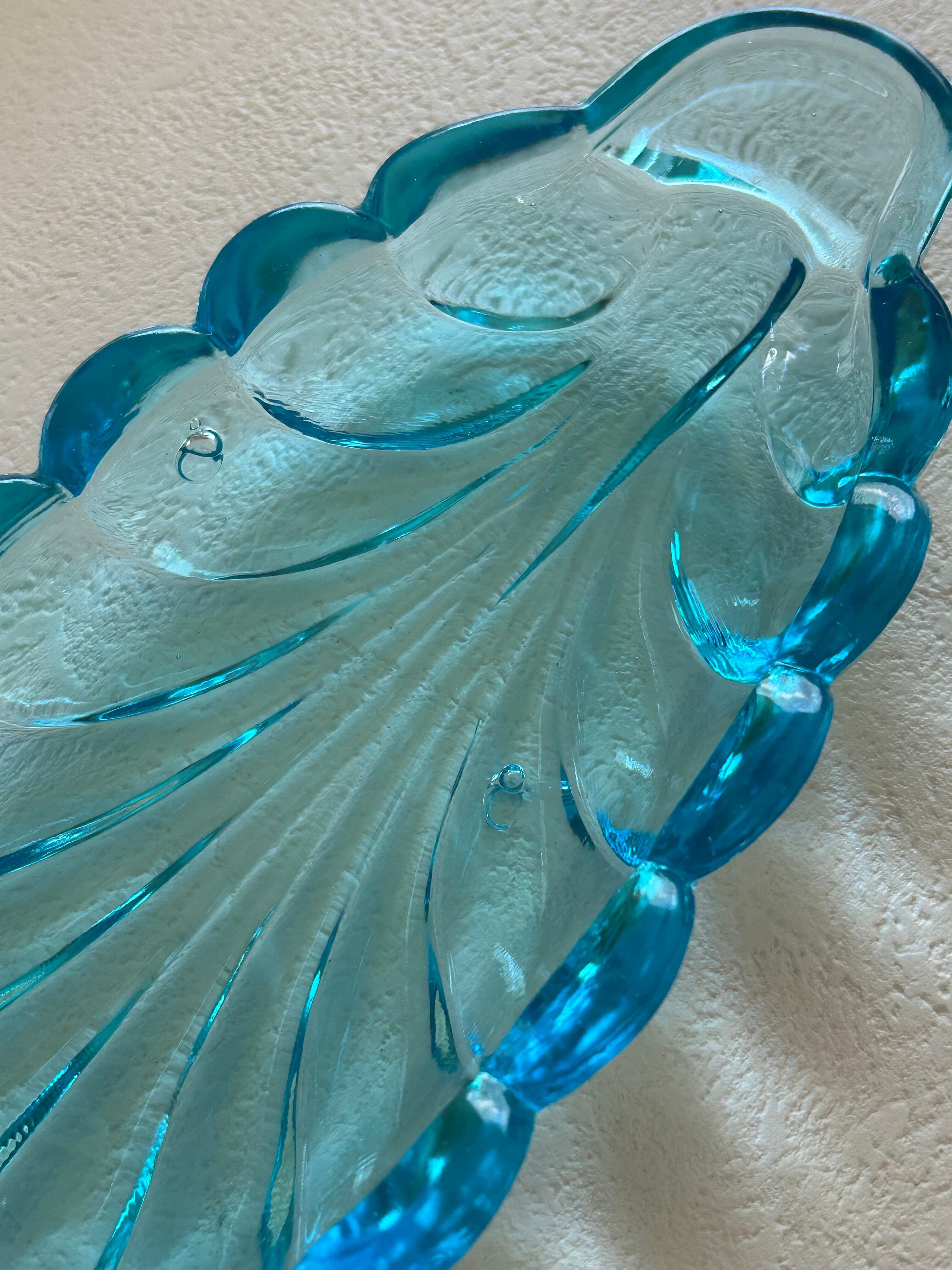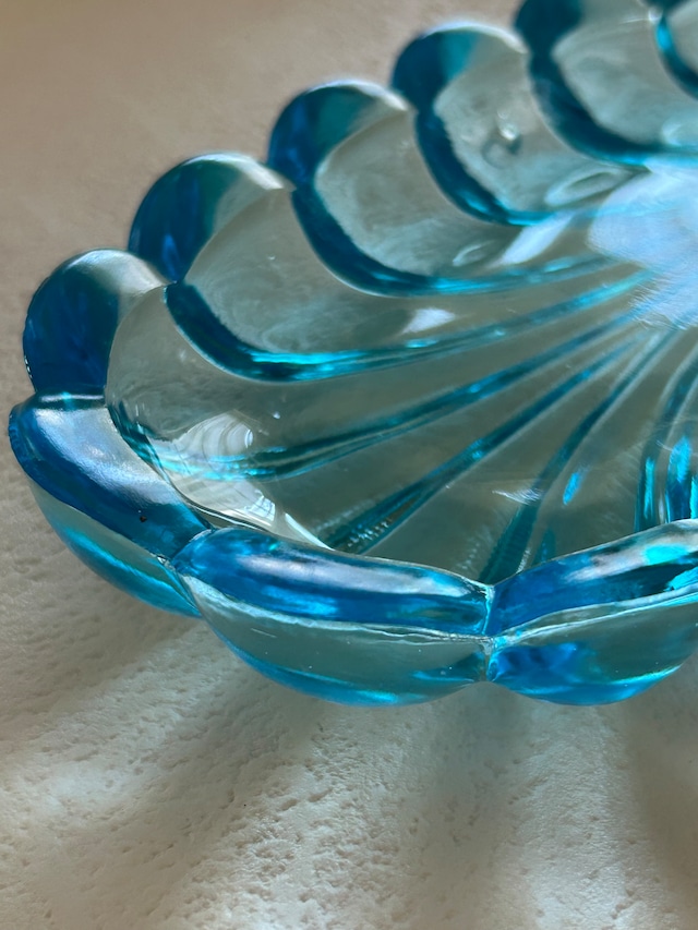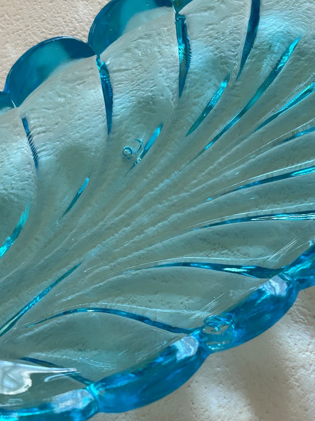 英国Vintage シェル型 ガラスプレート クリアブルー テーブルウェア 小物置き トレイ 撮影小物 インテリア小物