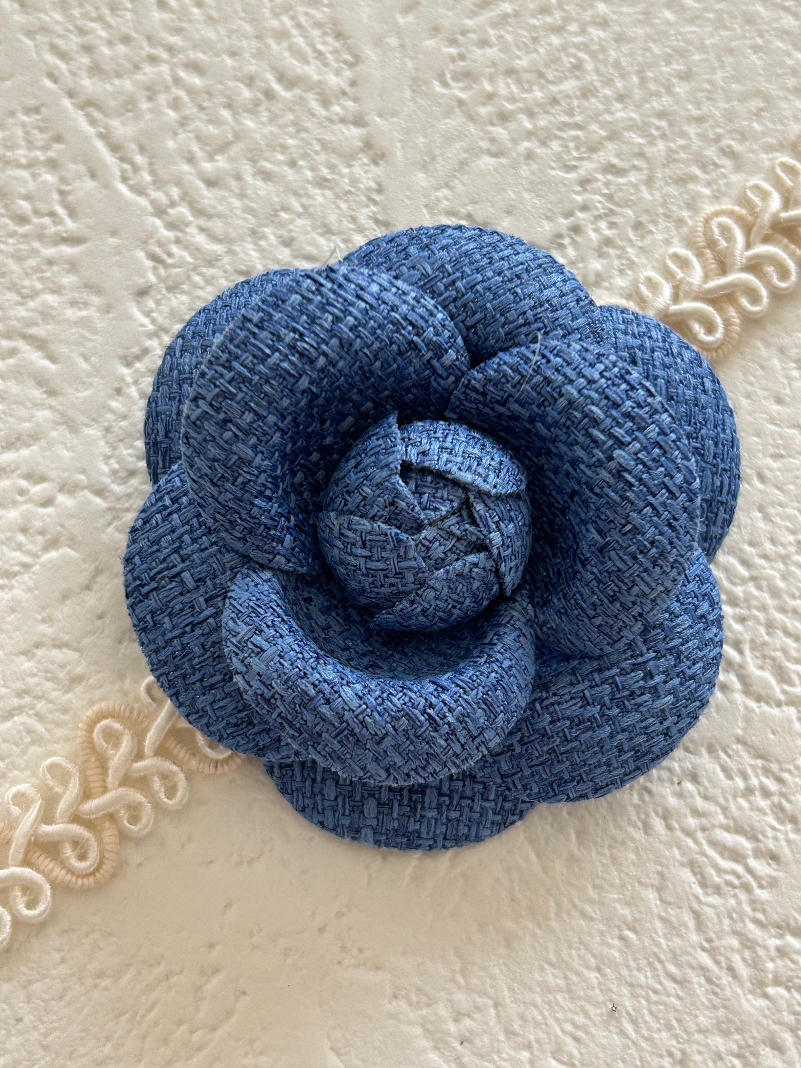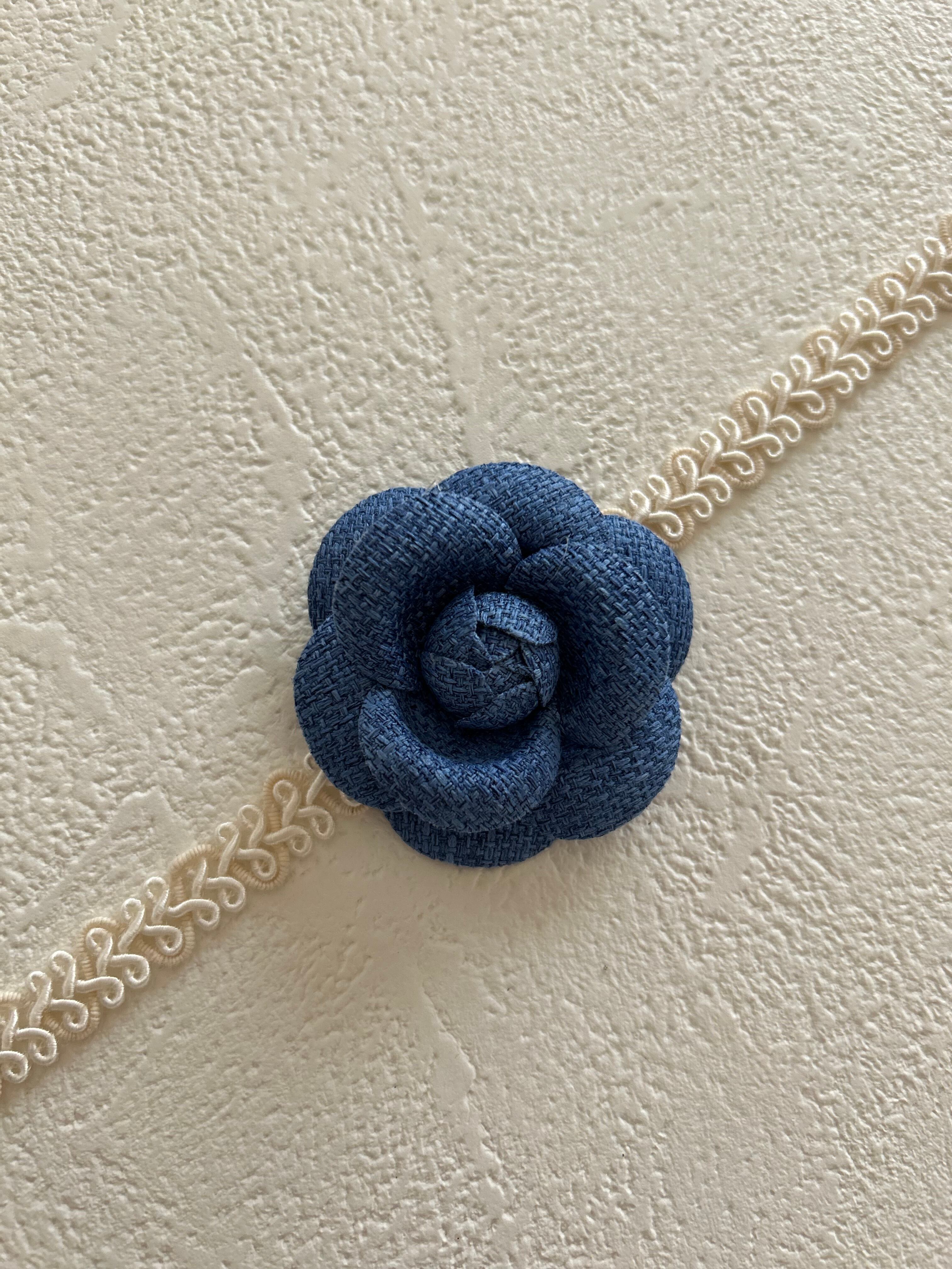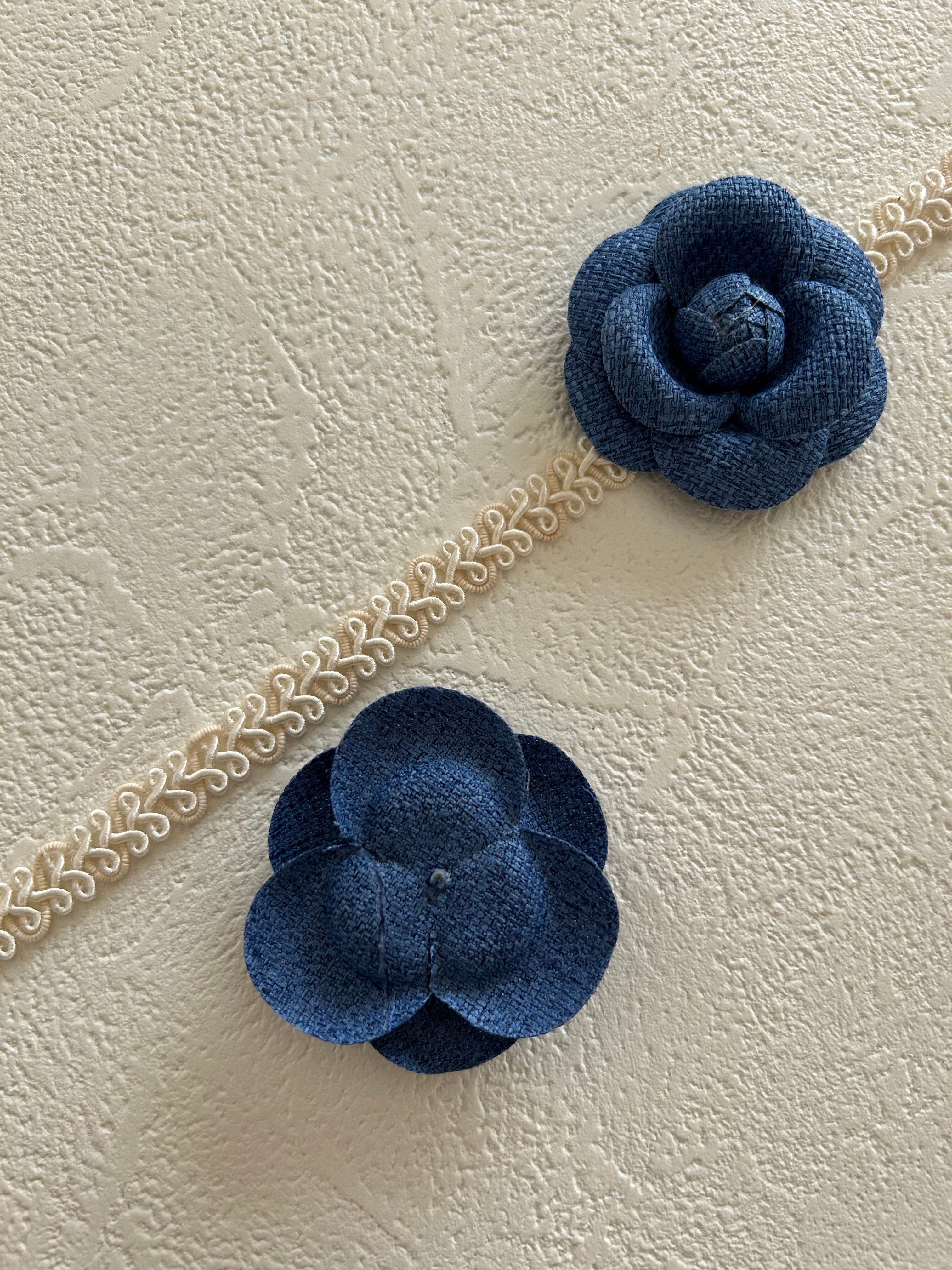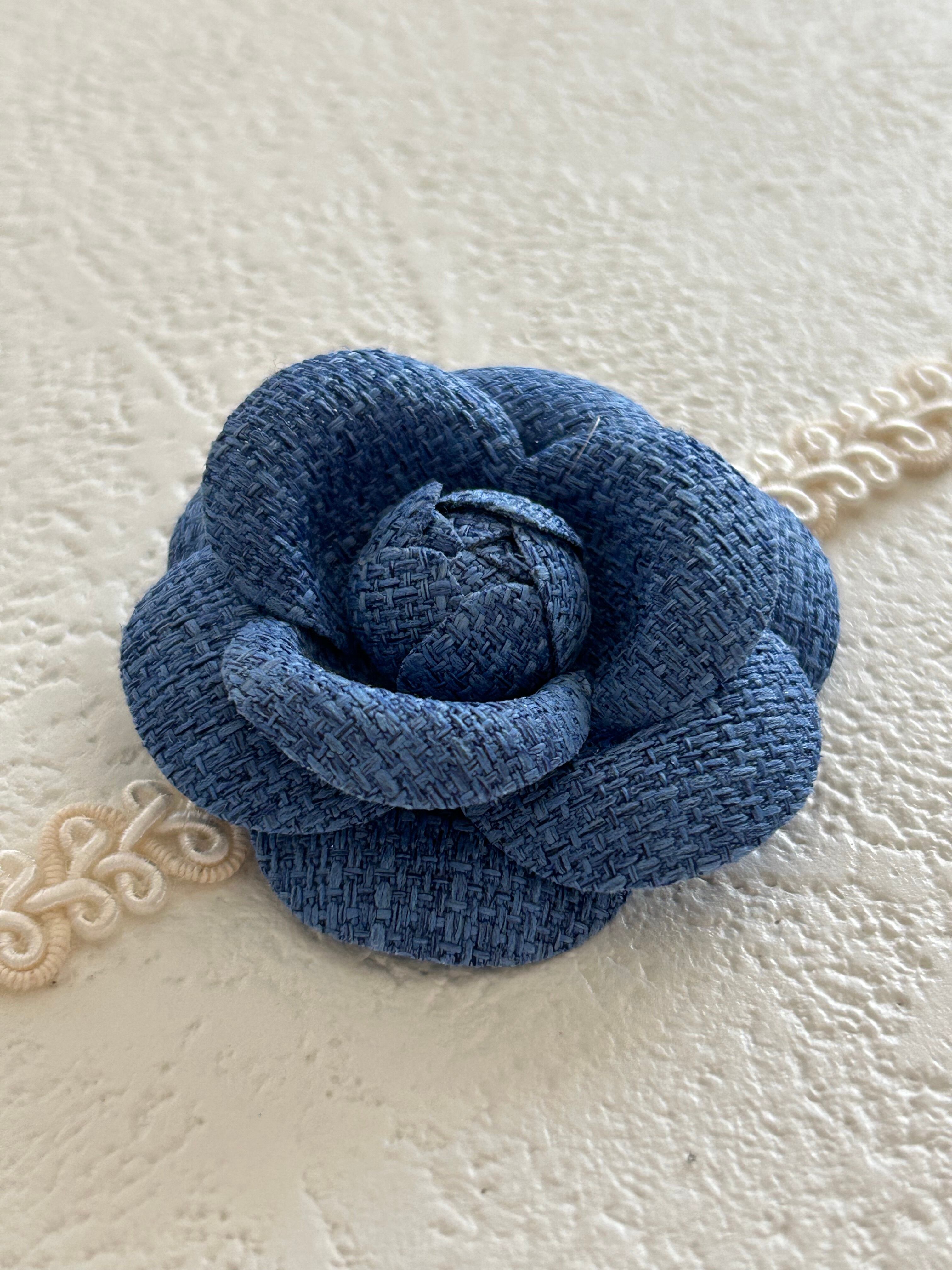 輸入デザインパーツ カメリア ツイード調 ブルー カルトナージュ コサージュ ヘアアクセサリー シューズクリップ
