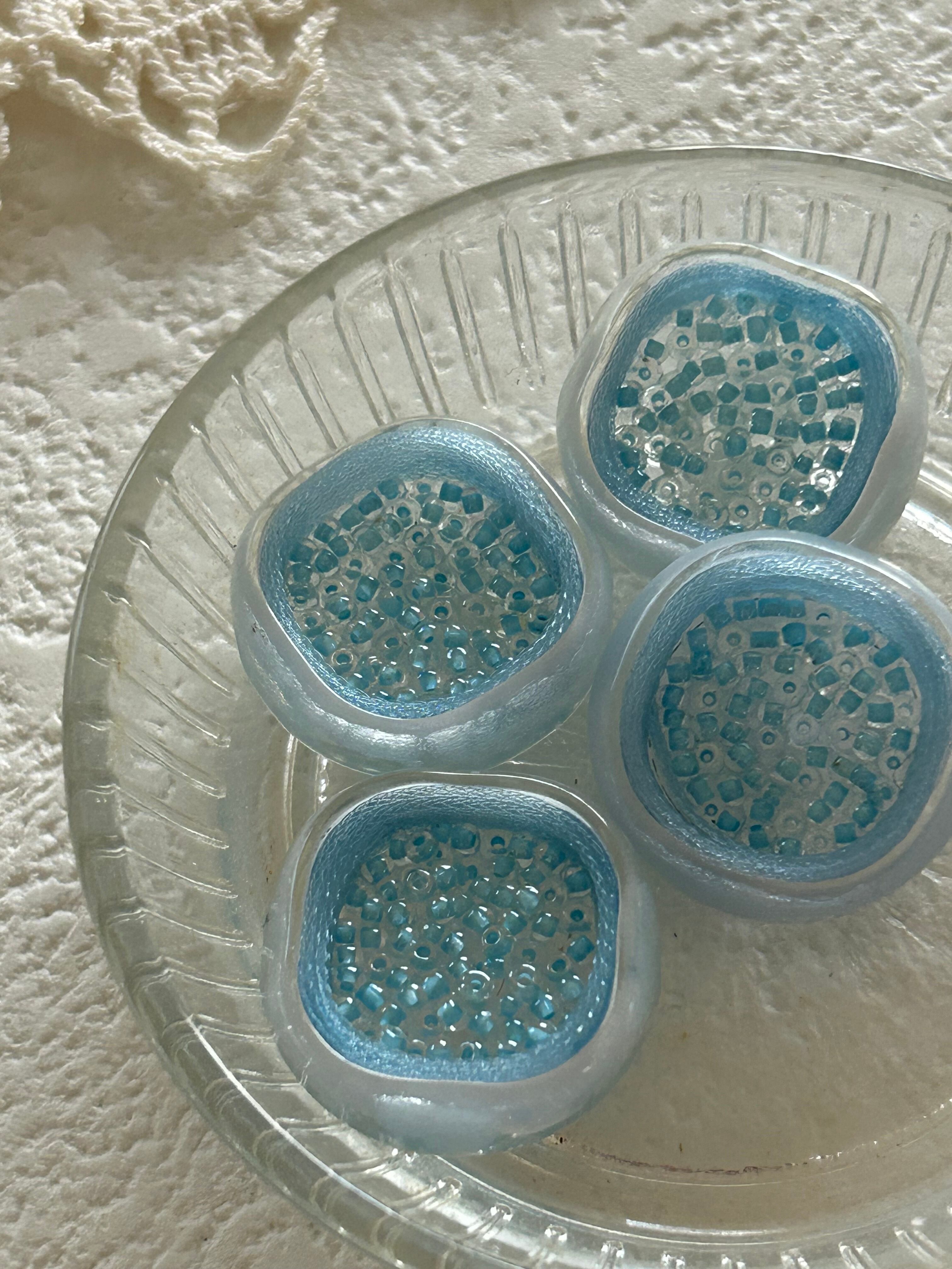 Japanese Vintage ボタン 23mm button コードボタン ビーズ ライトブルー アクセサリーパーツ 装飾材 カルトナージュ