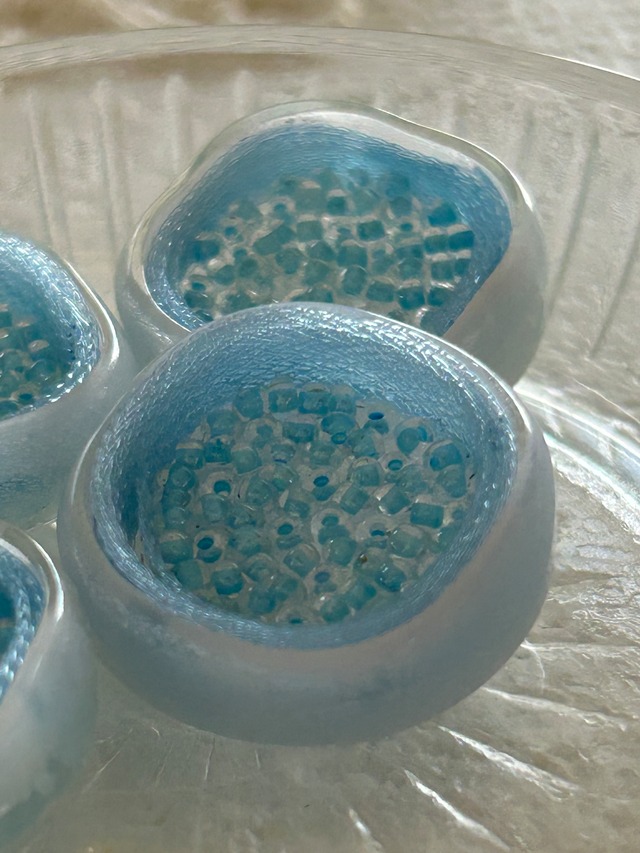 中央にビーズ、優しいライトブルーのお色が可愛いコードボタンです。