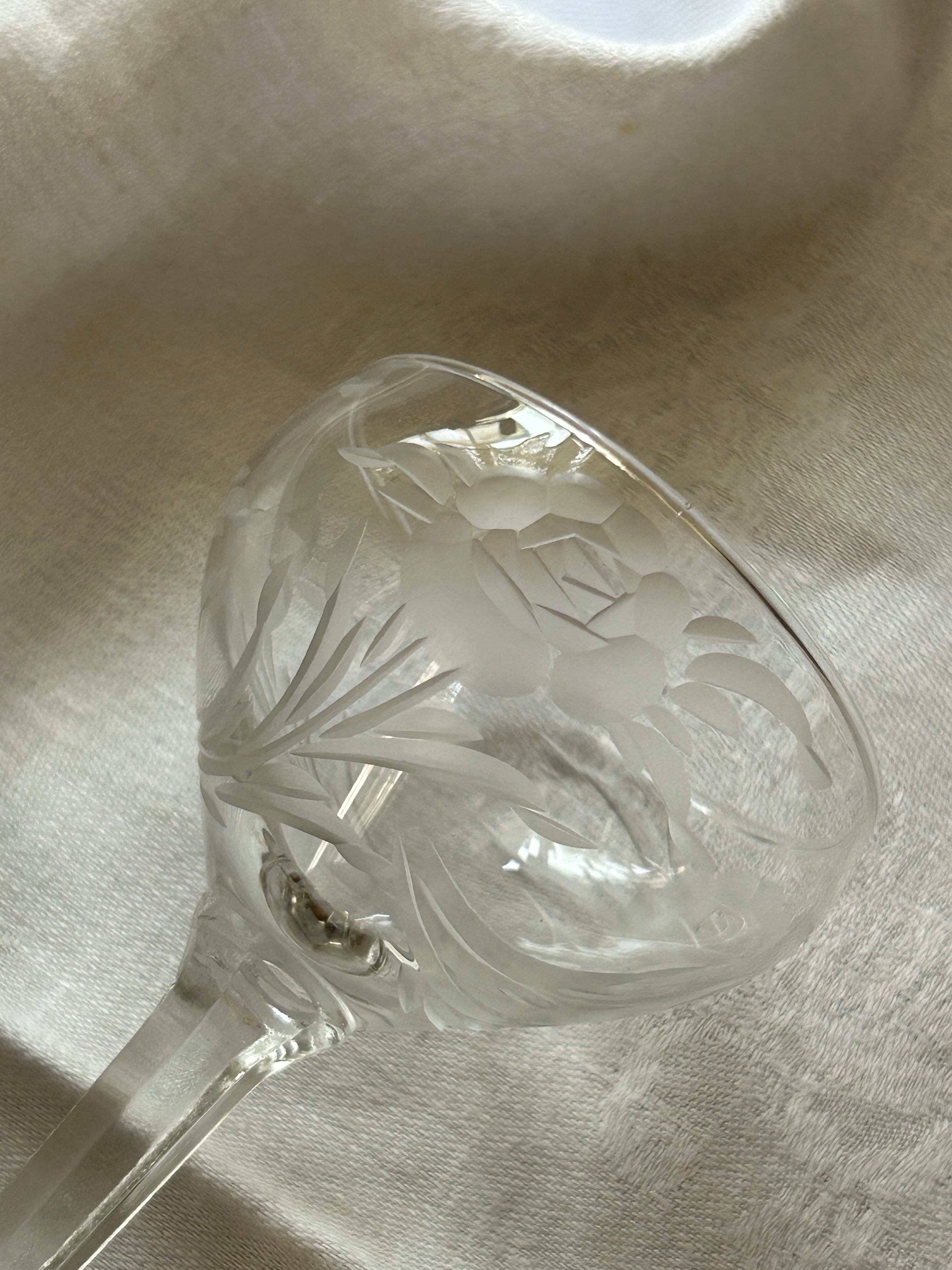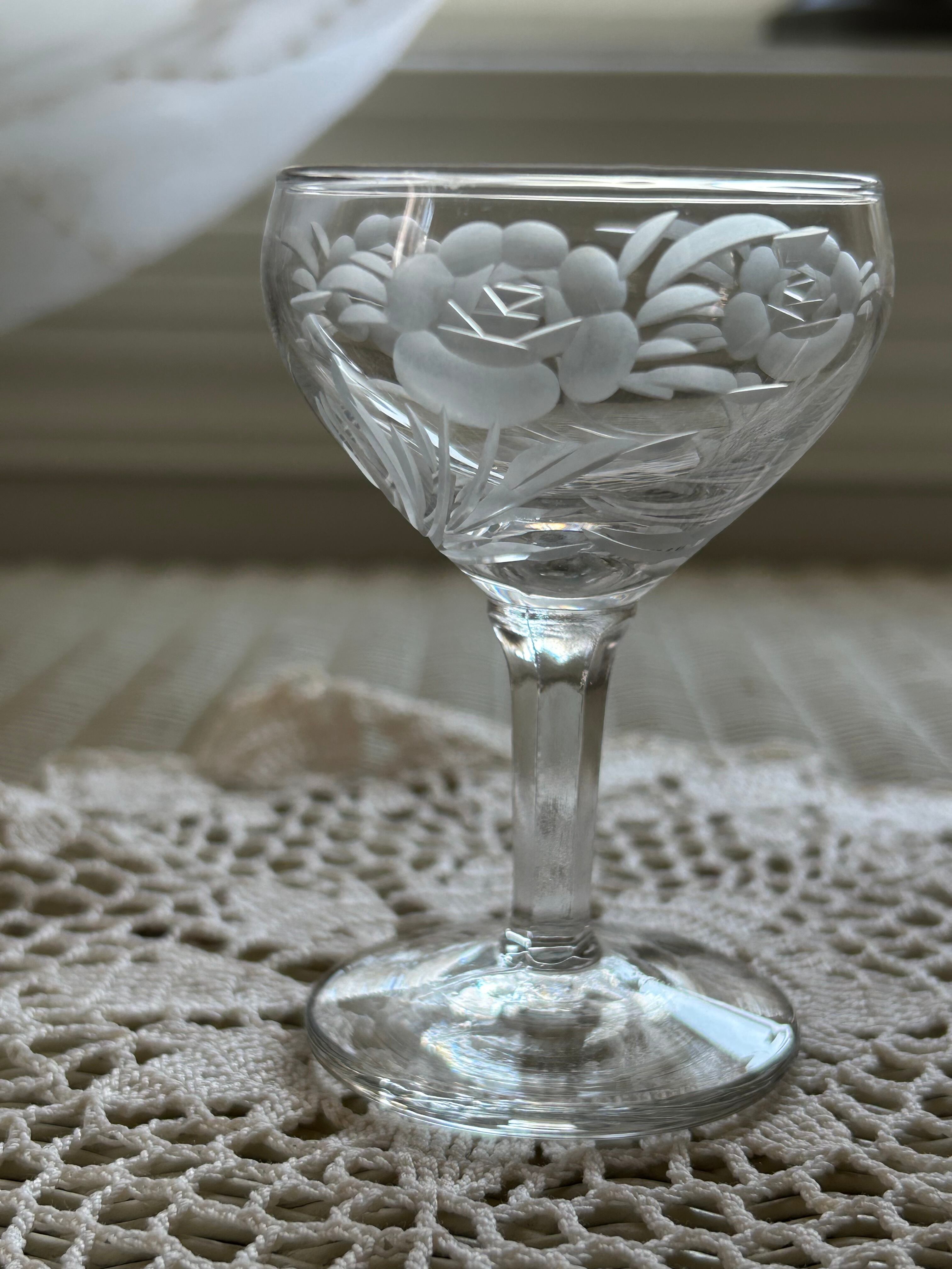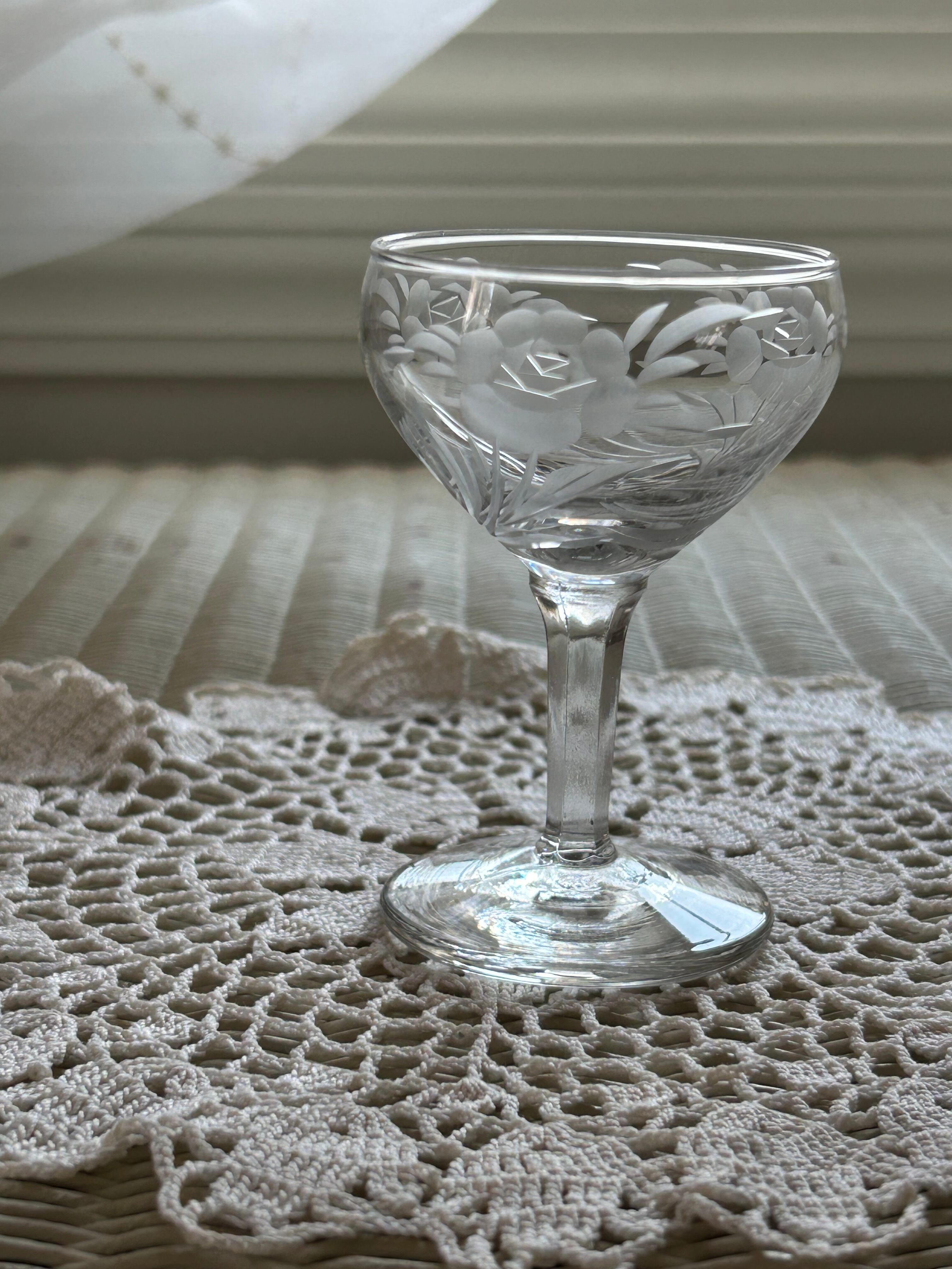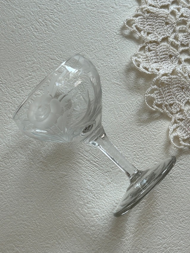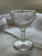 英国アンティーク エングレーヴィング彫り リキュールグラス 食前酒 花柄 フラワーベース テーブルウェア