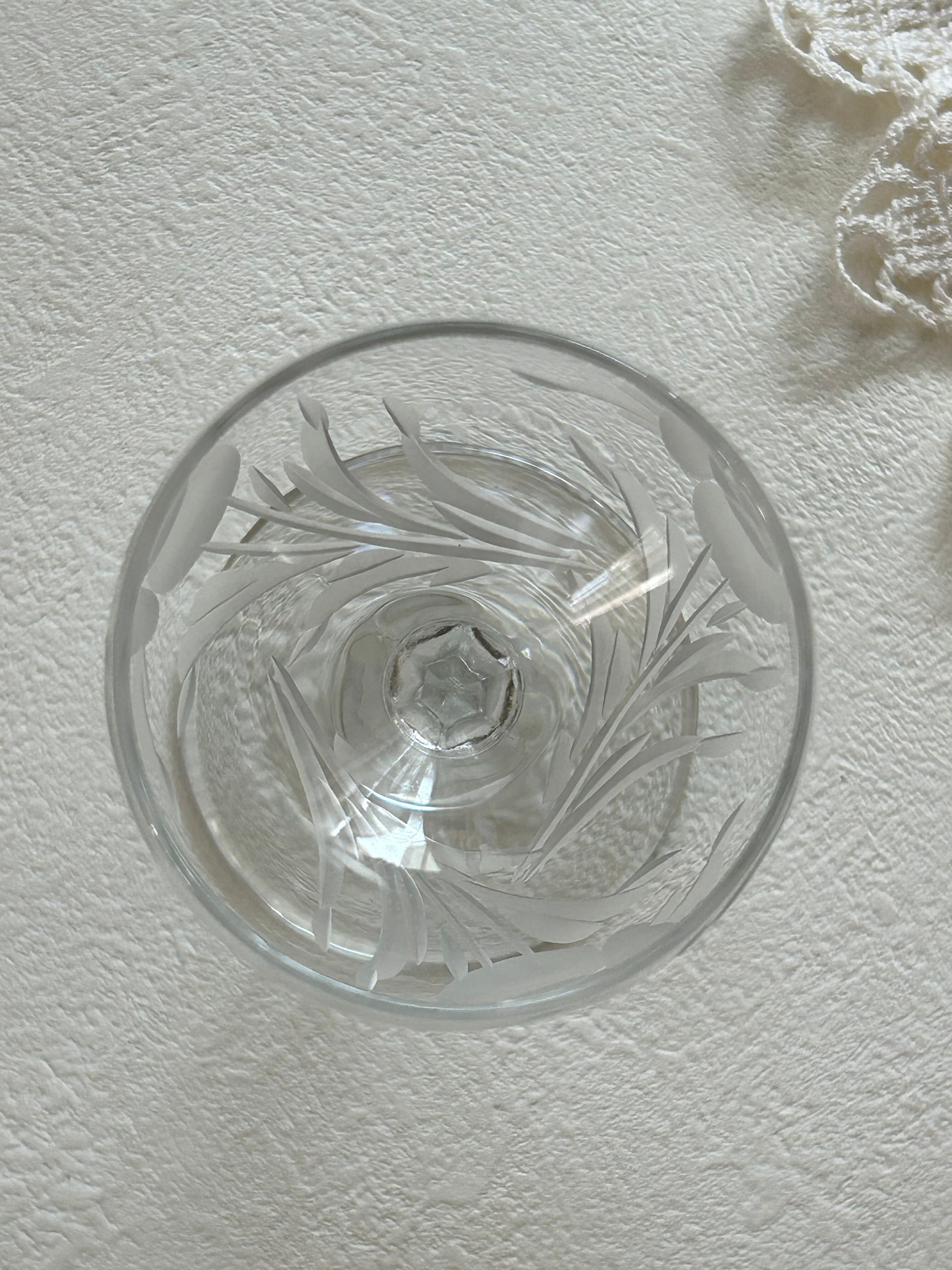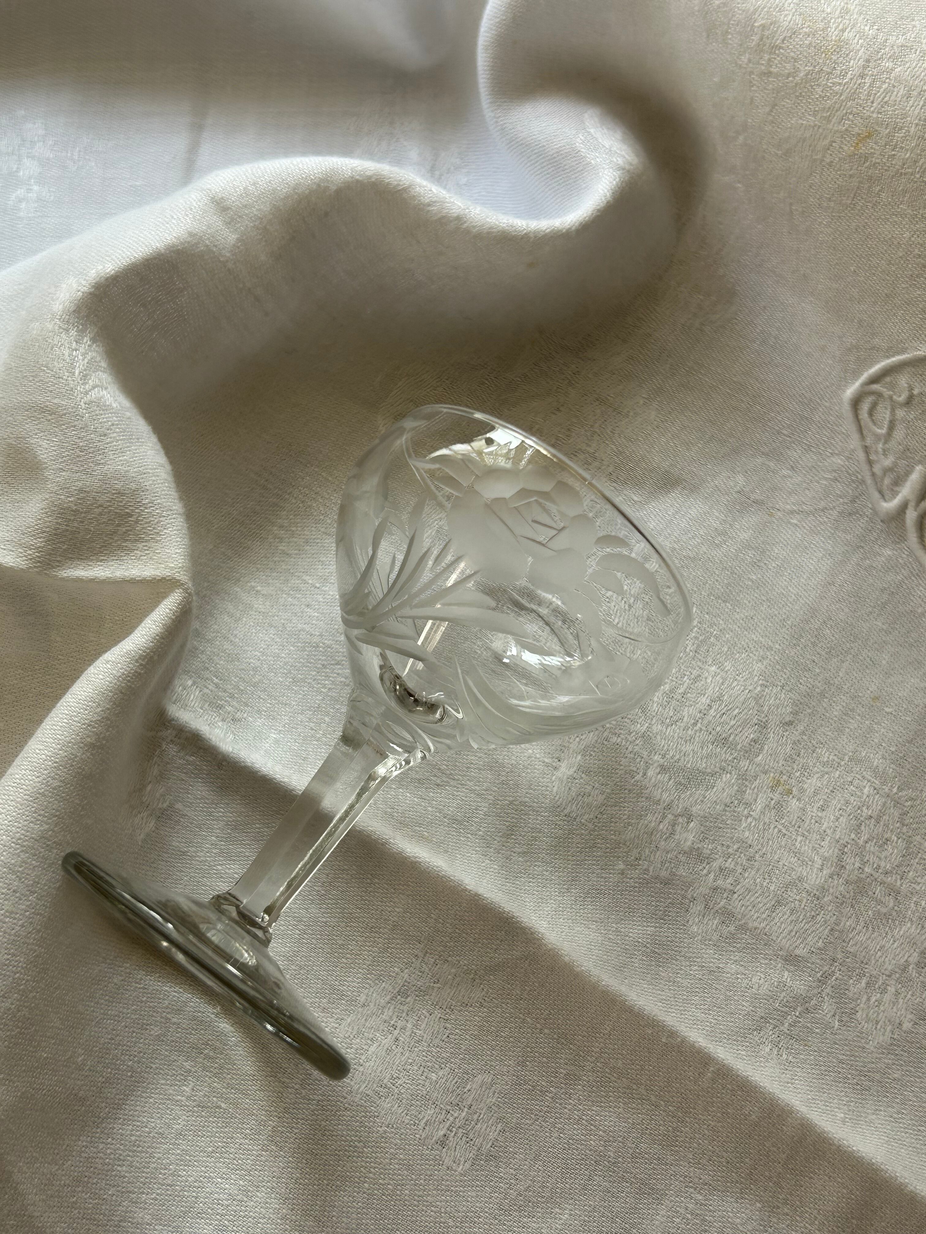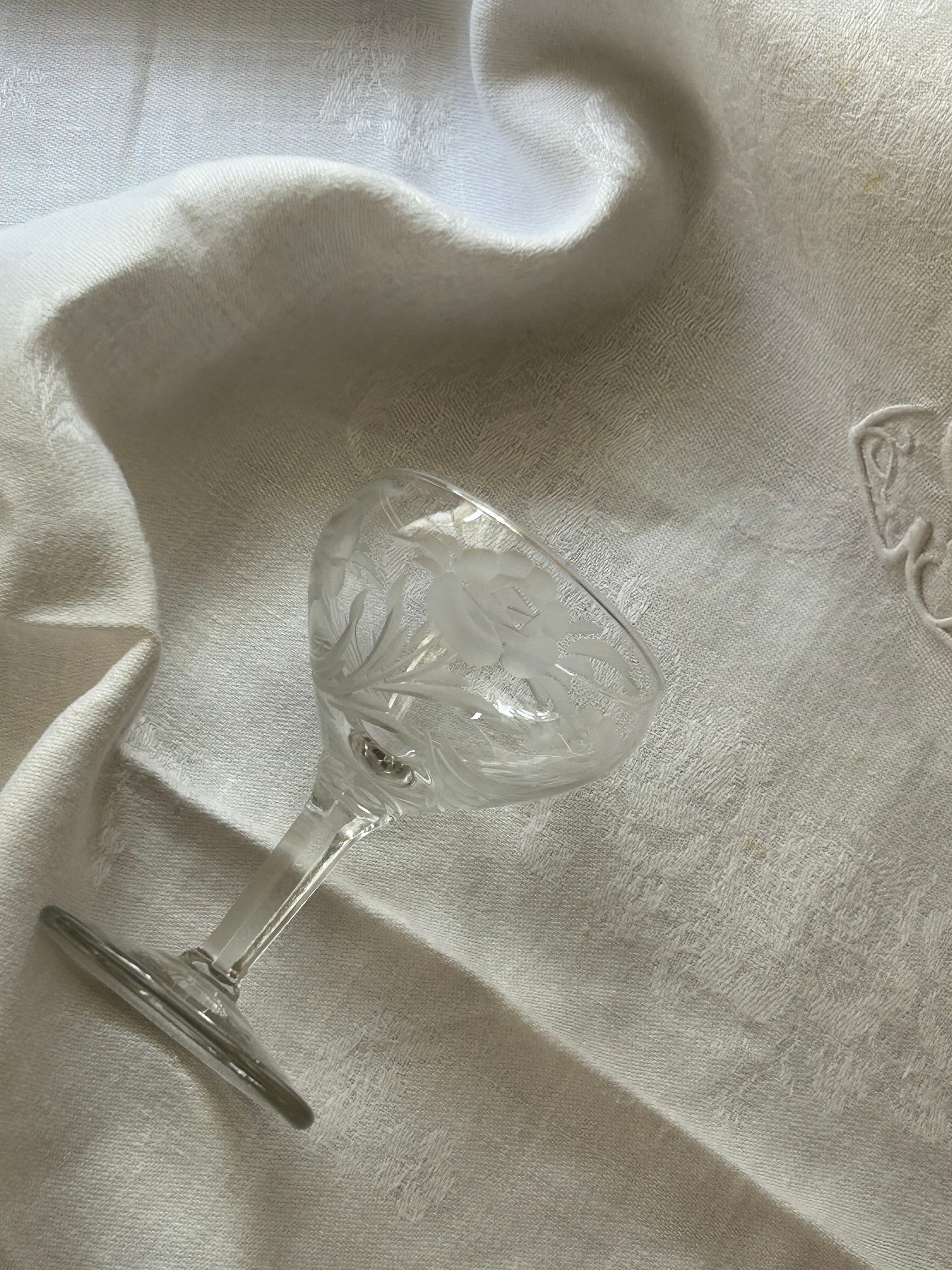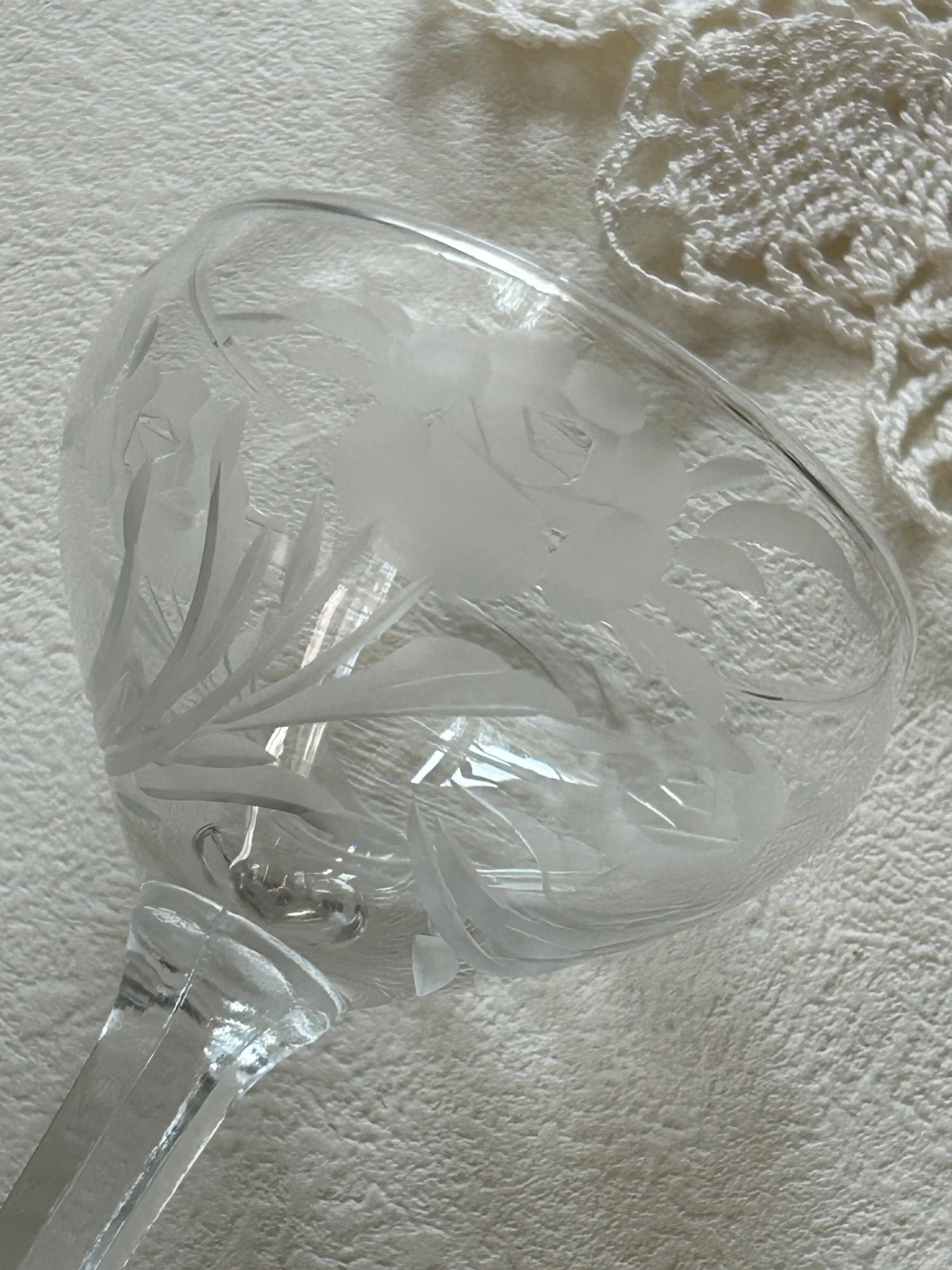 英国アンティーク エングレーヴィング彫り リキュールグラス 食前酒 花柄 フラワーベース テーブルウェア