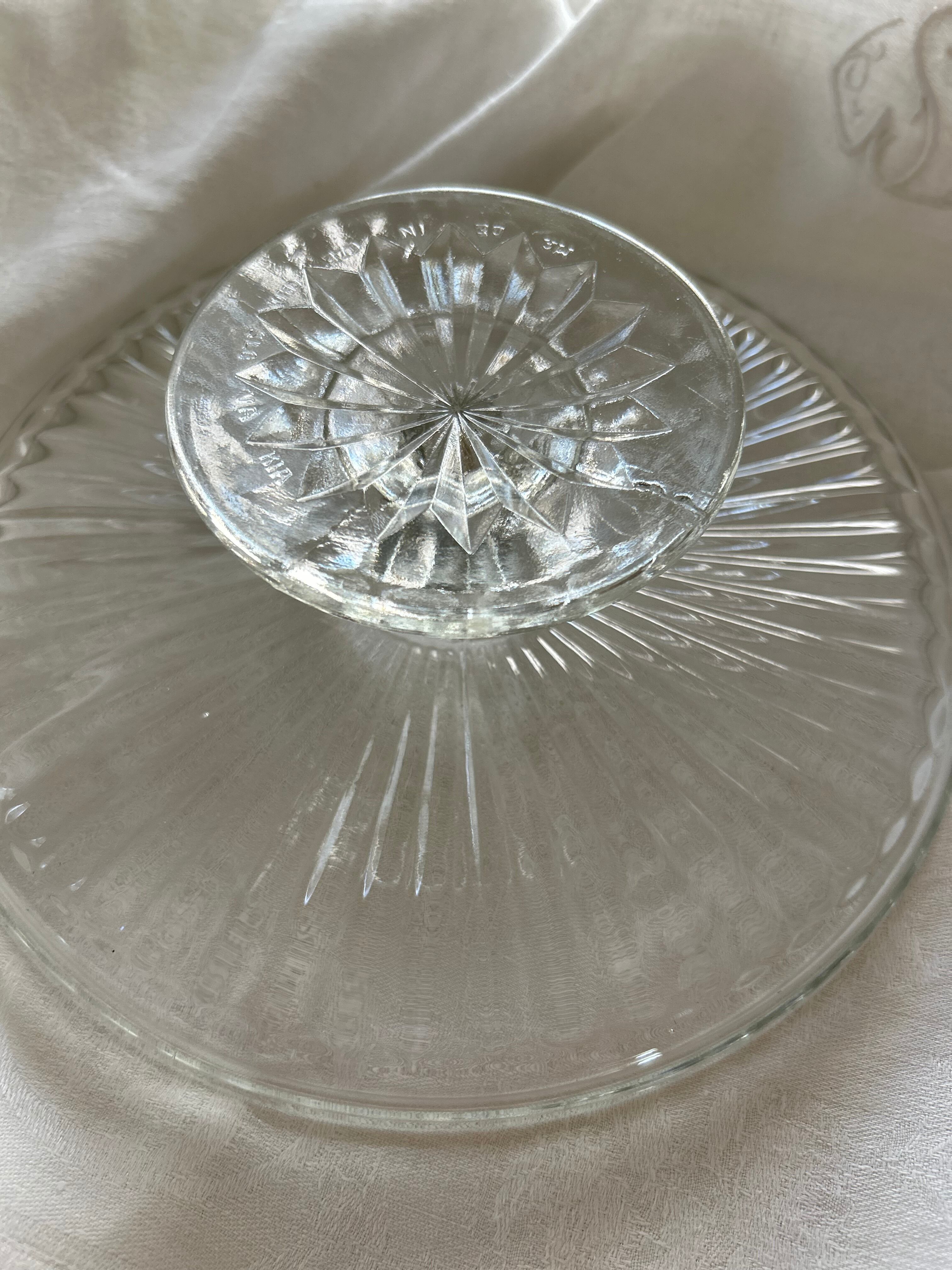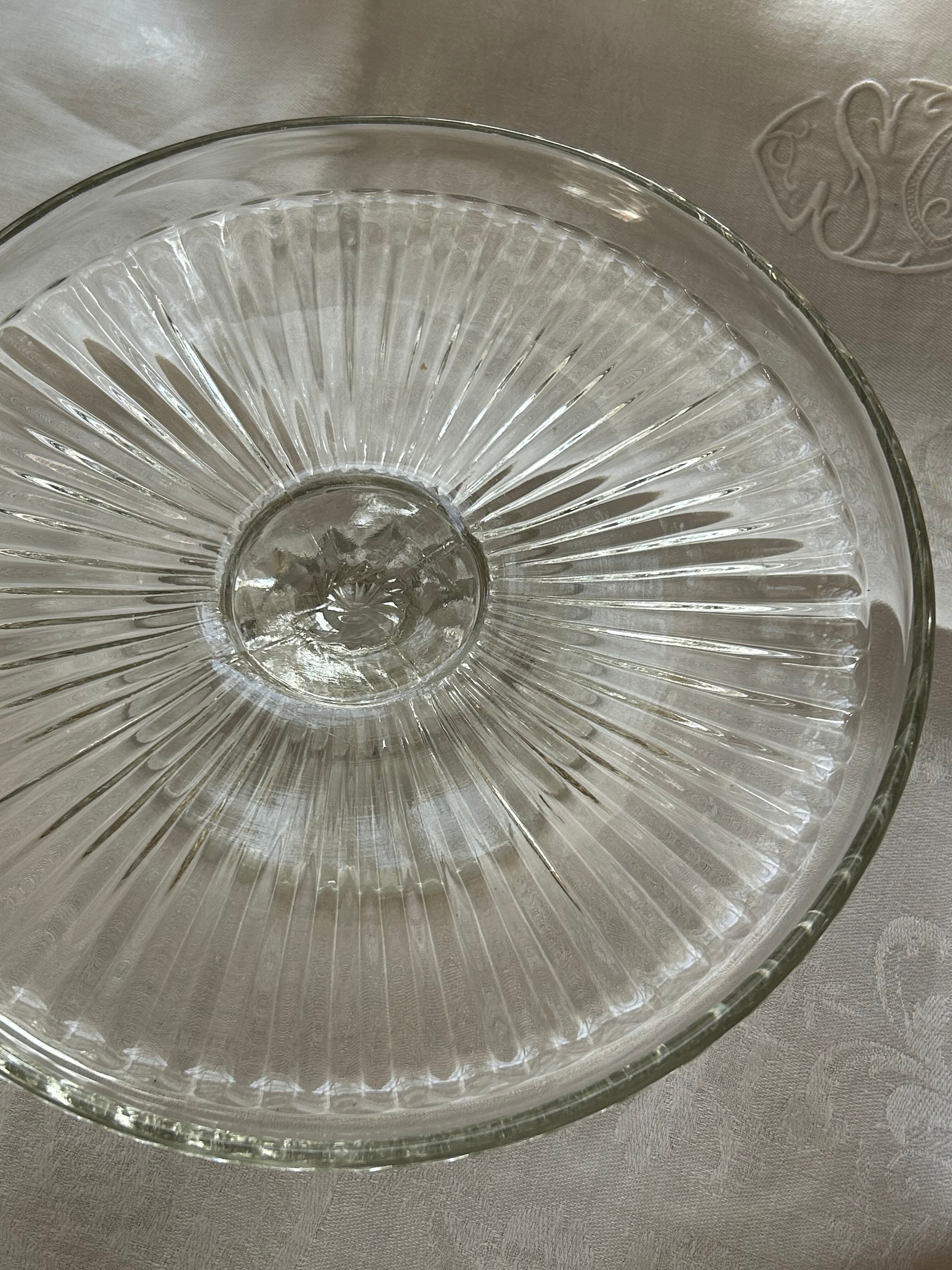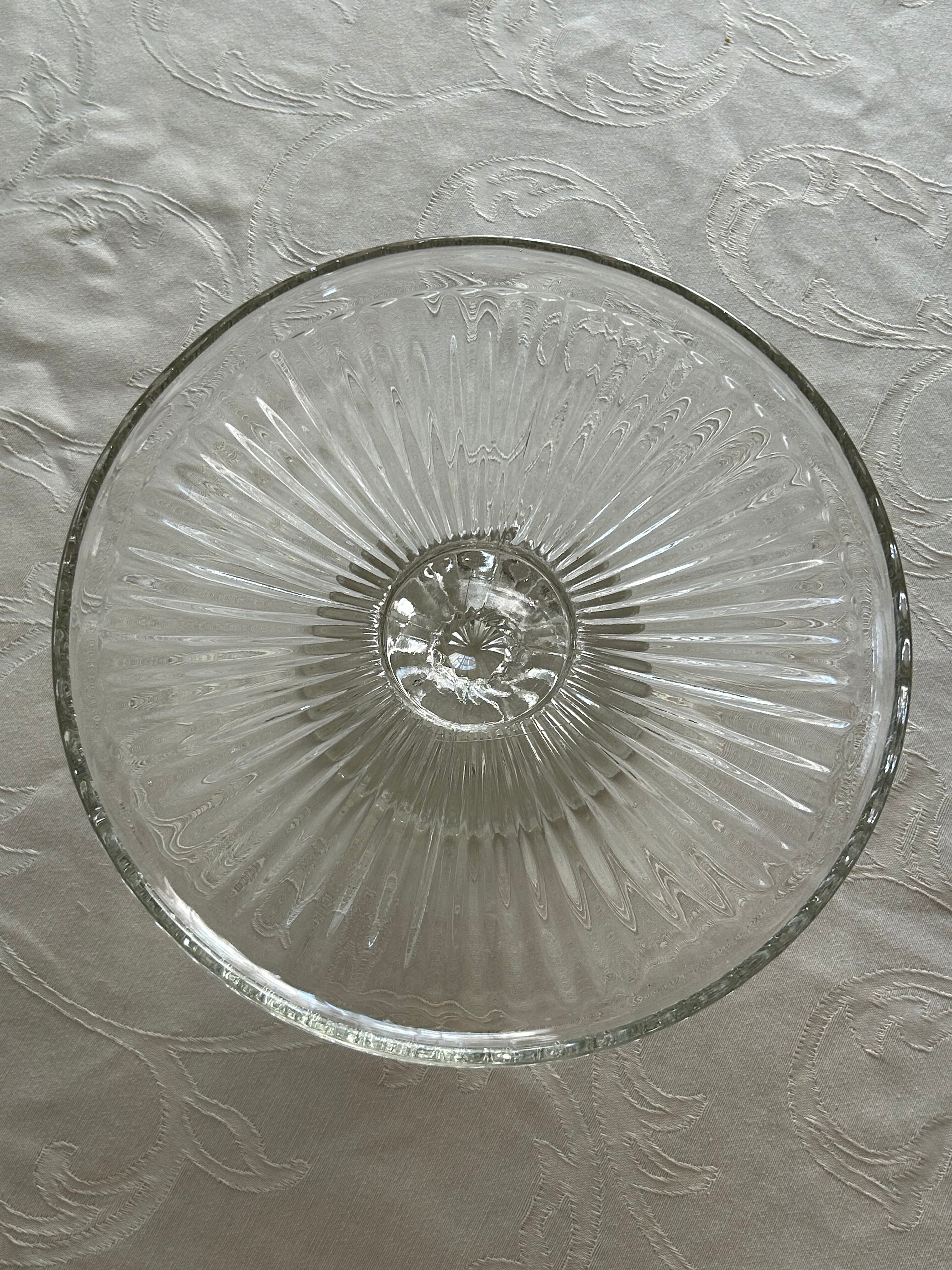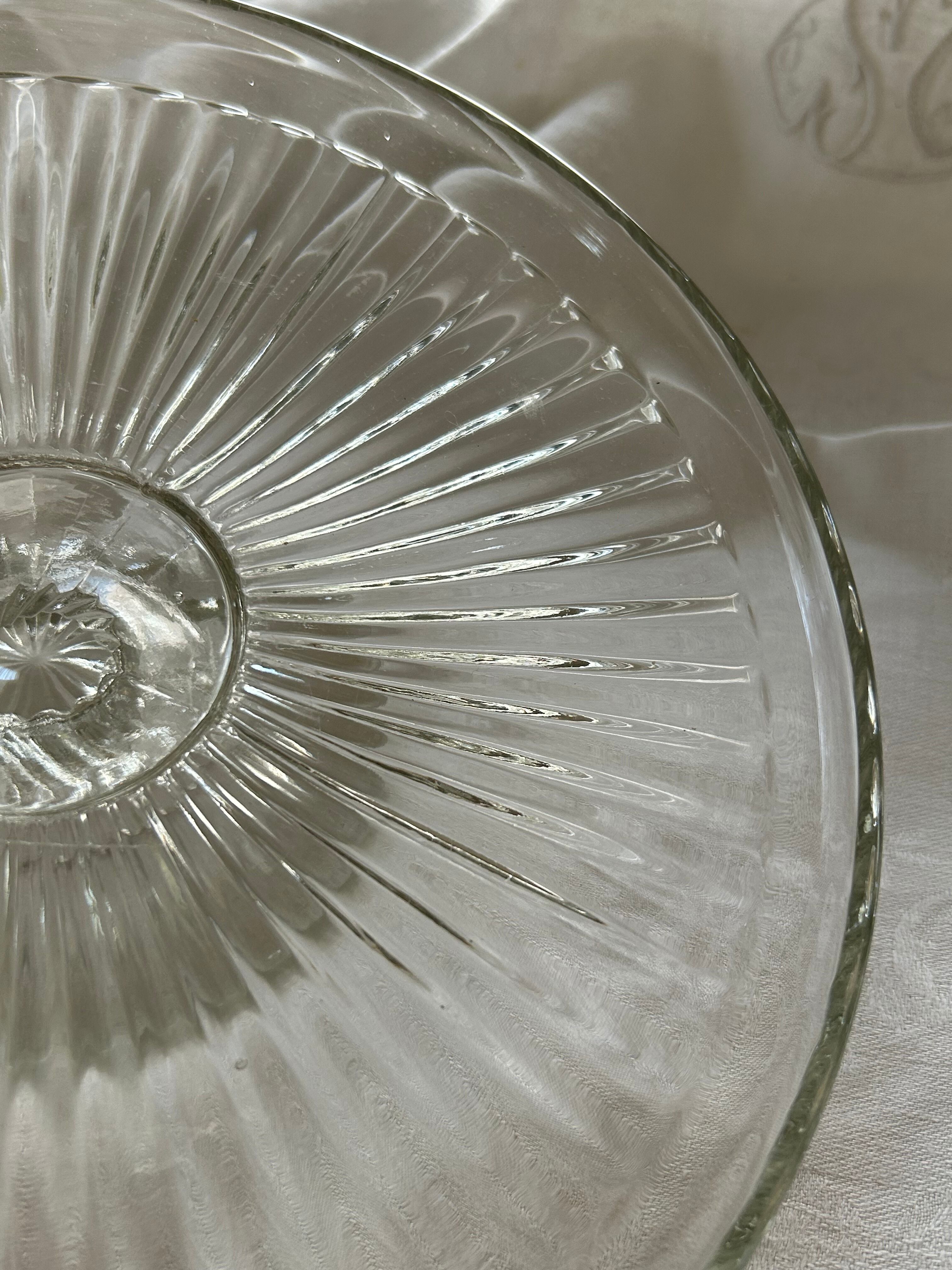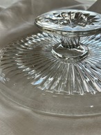 溶かしたガラスを型に流し込んで形成するプレスガラスで作られたケーキスタンド。