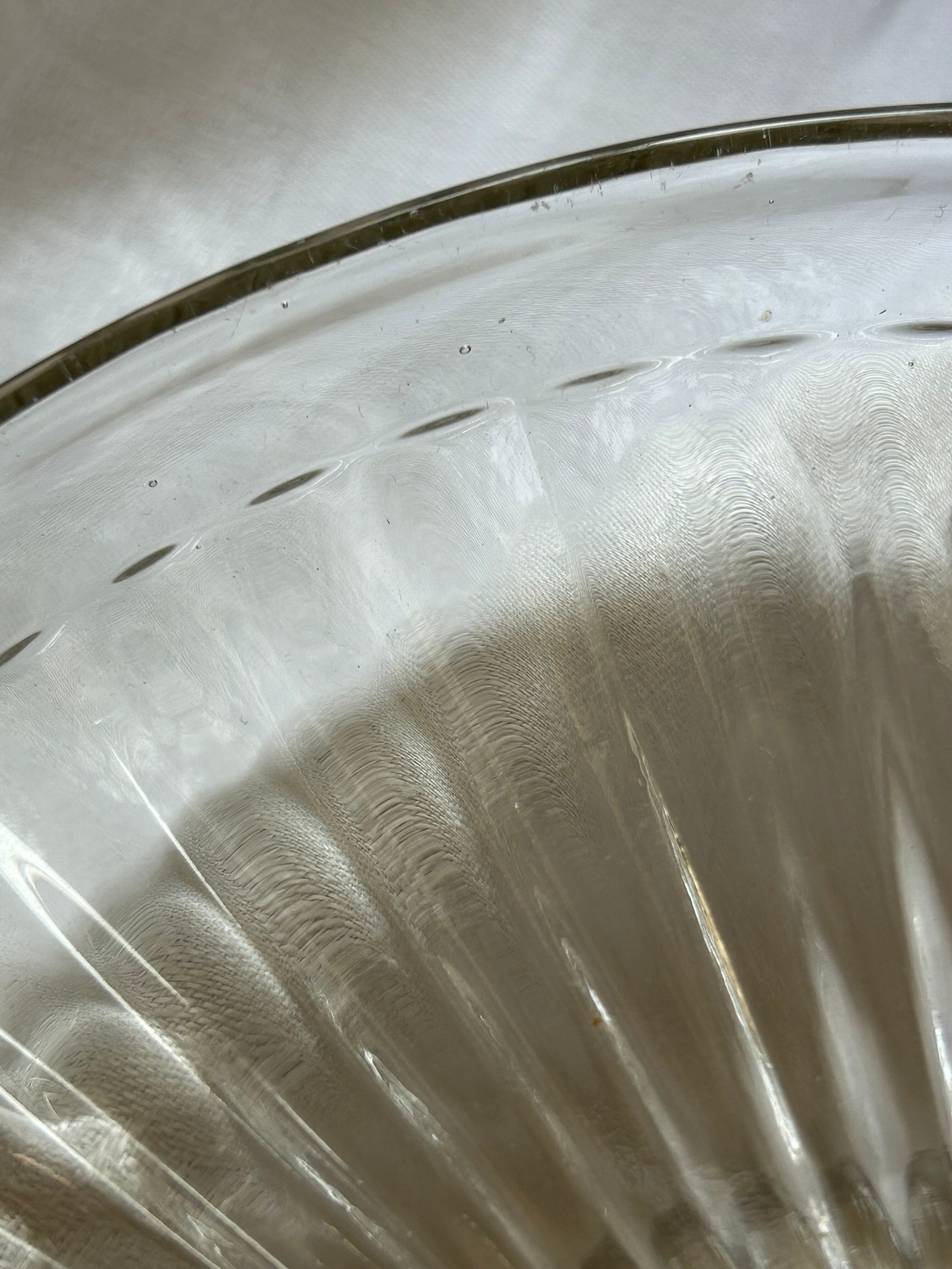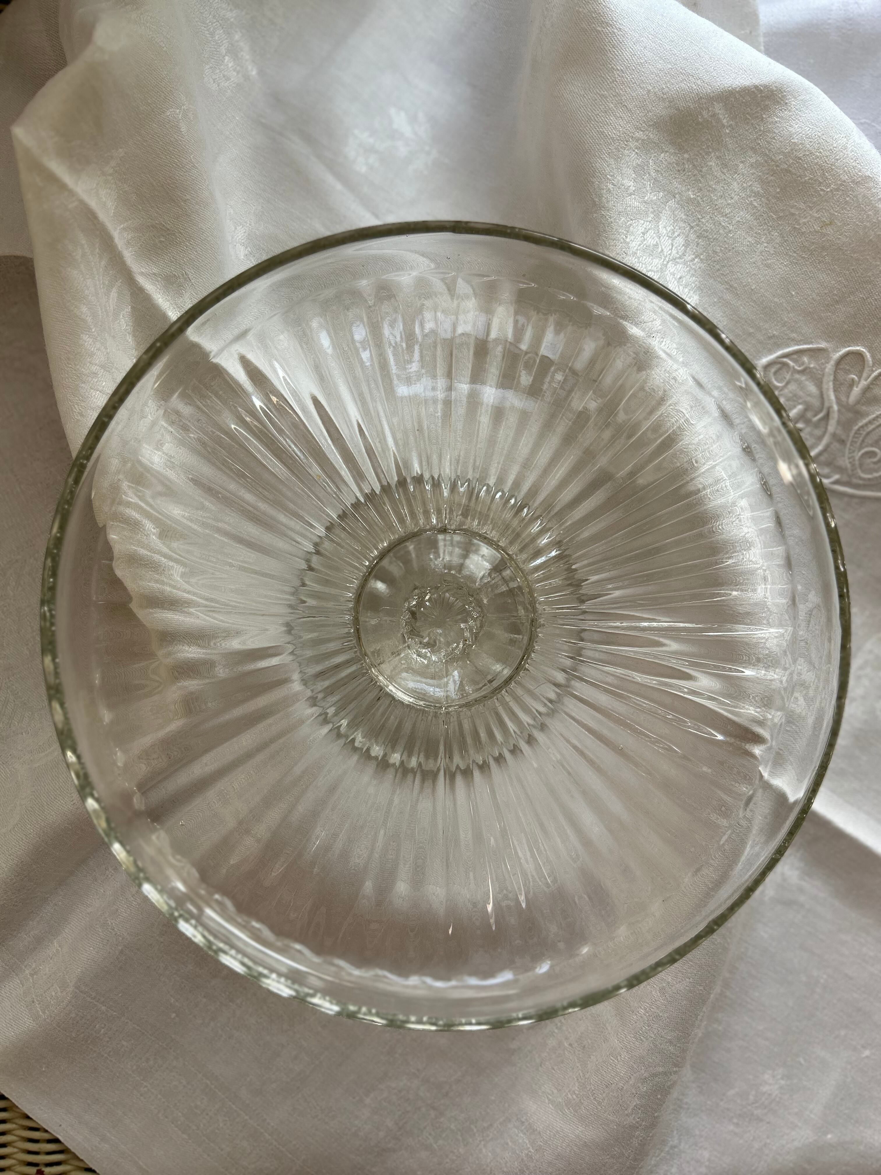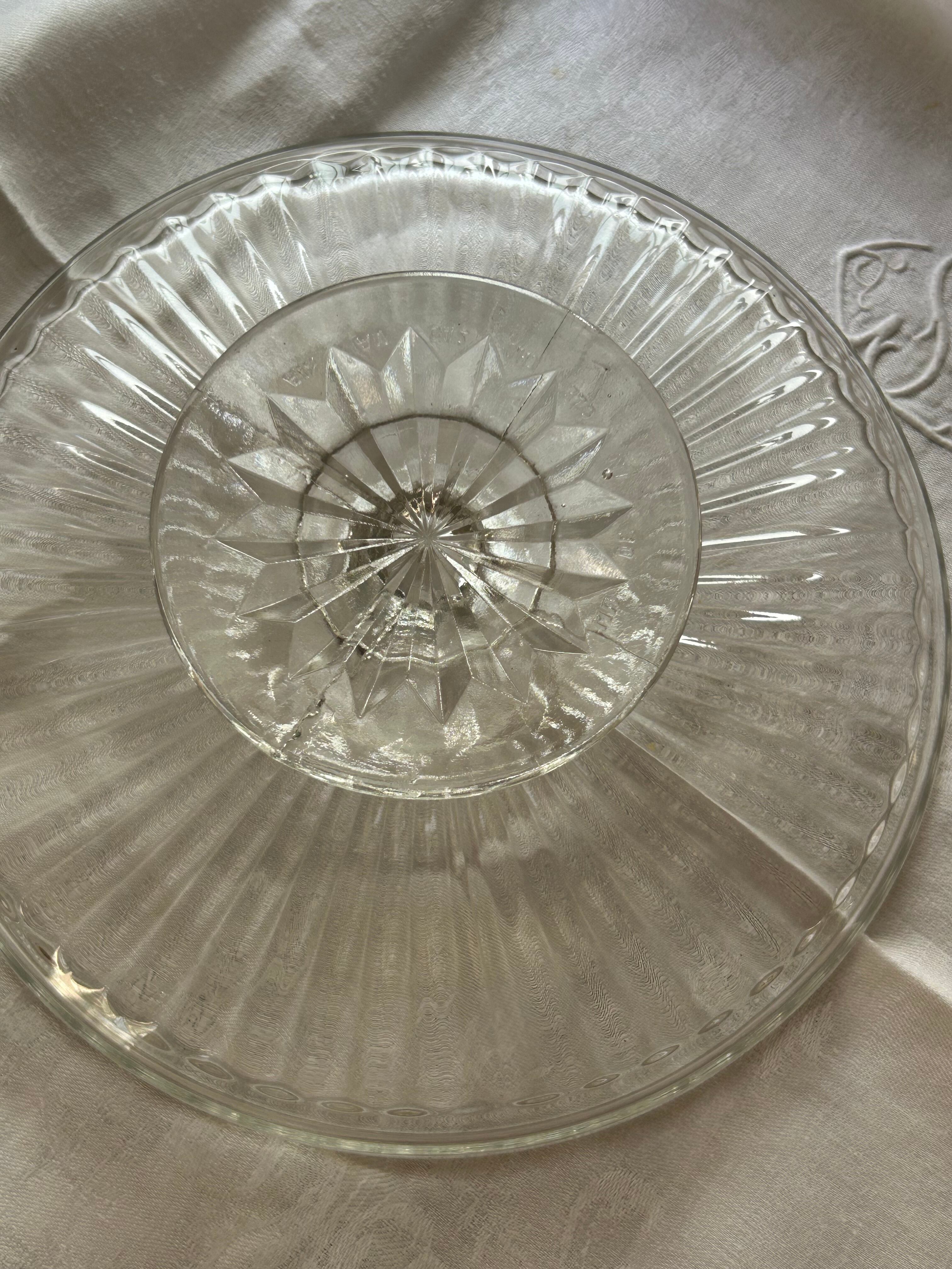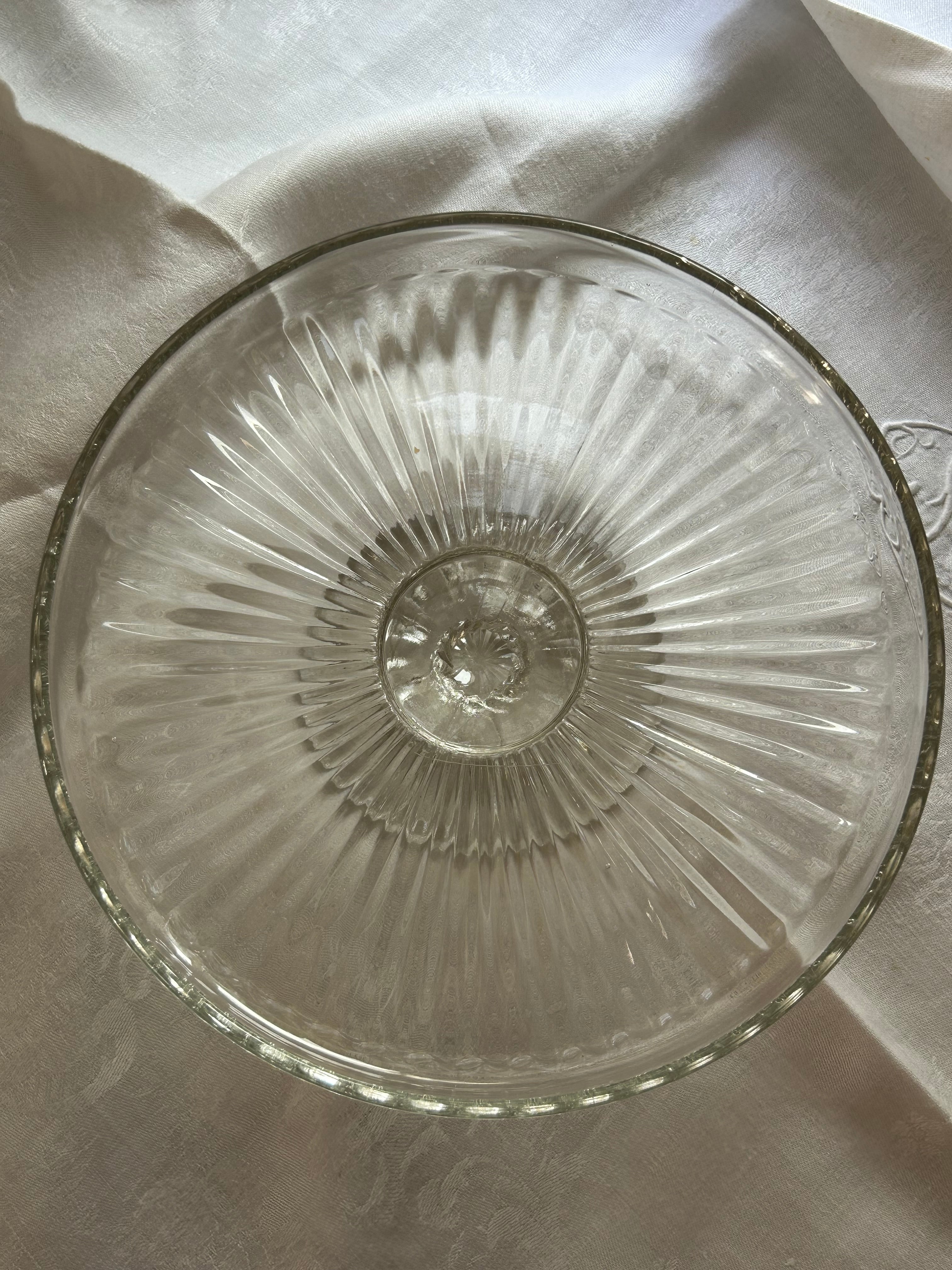 溶かしたガラスを型に流し込んで形成するプレスガラスで作られたケーキスタンド。