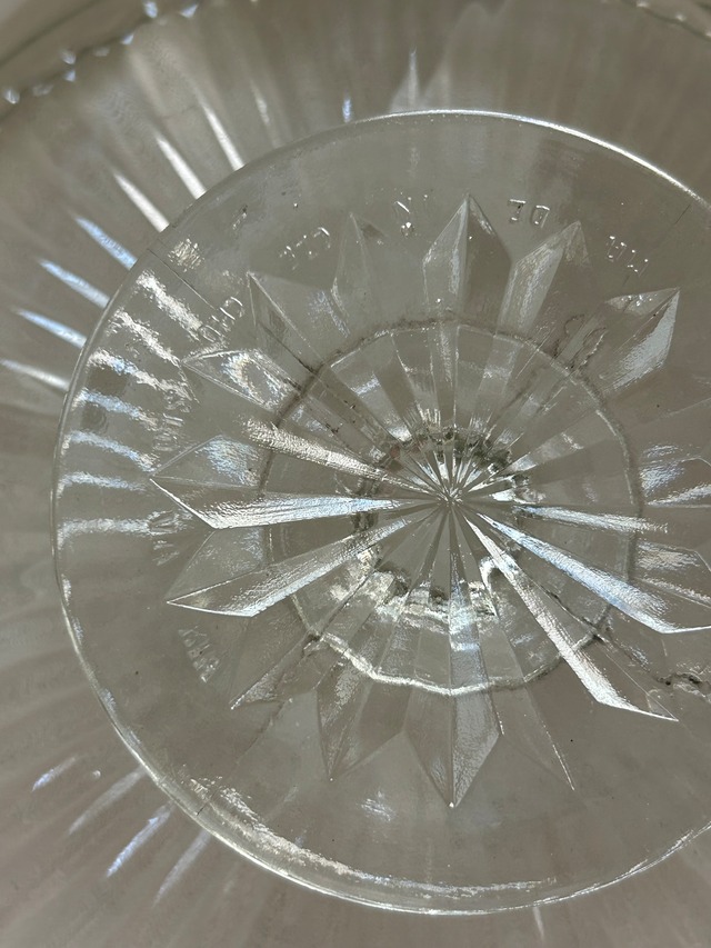 プレスガラスで作られた食器の特徴が、この凹凸で表現された模様。