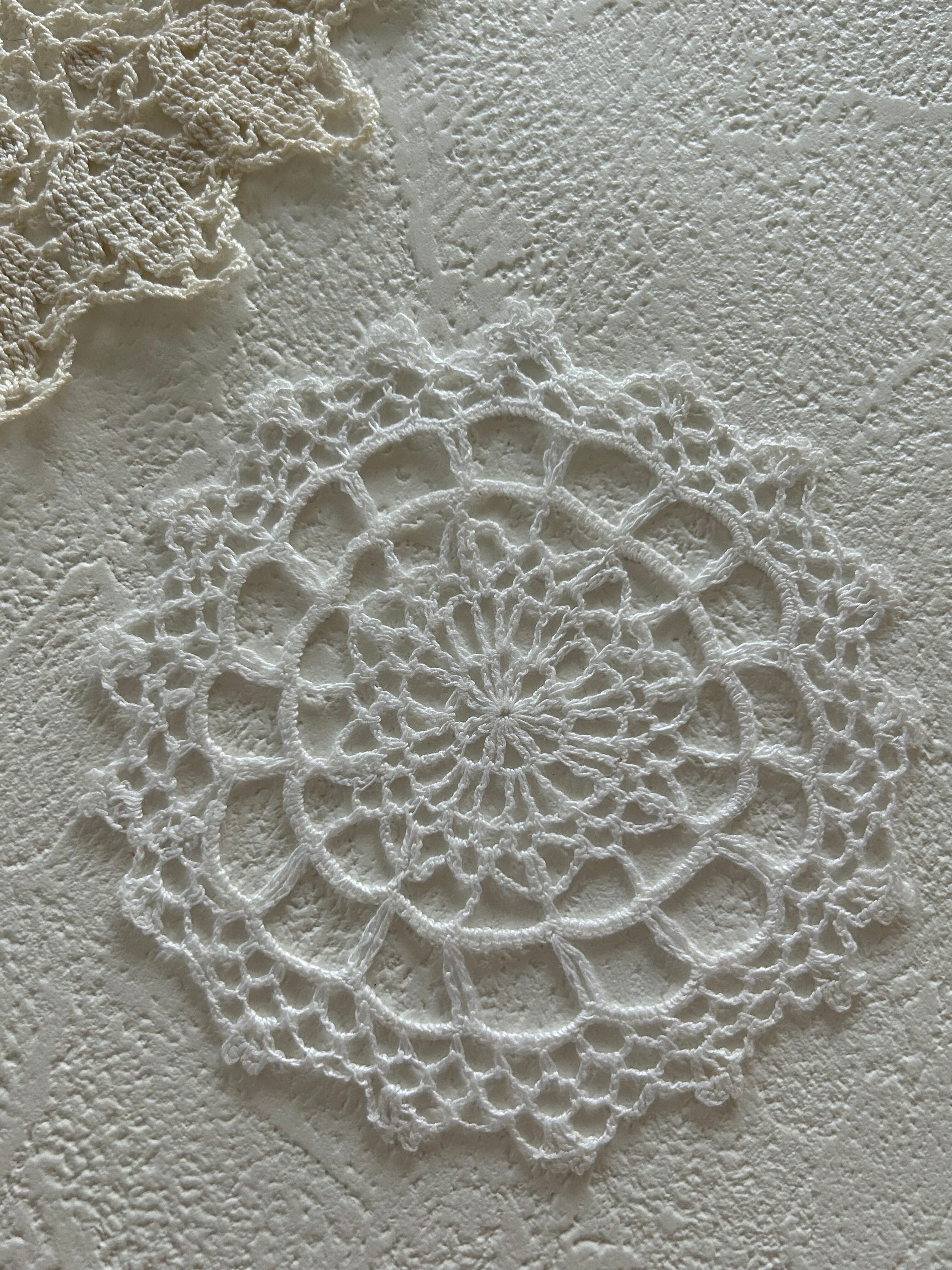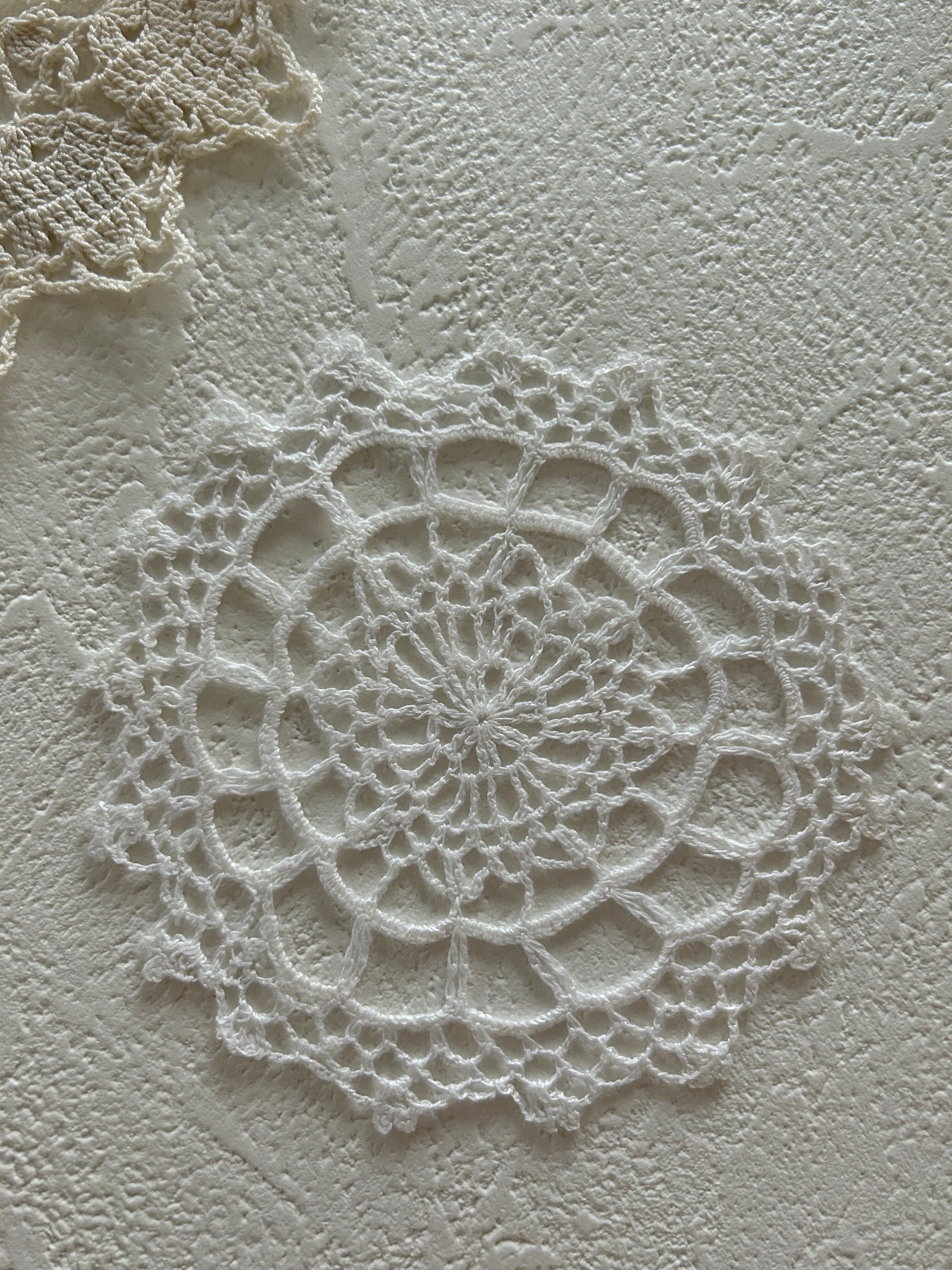 小さめサイズですが美しいお花が咲いたようなドイリー。