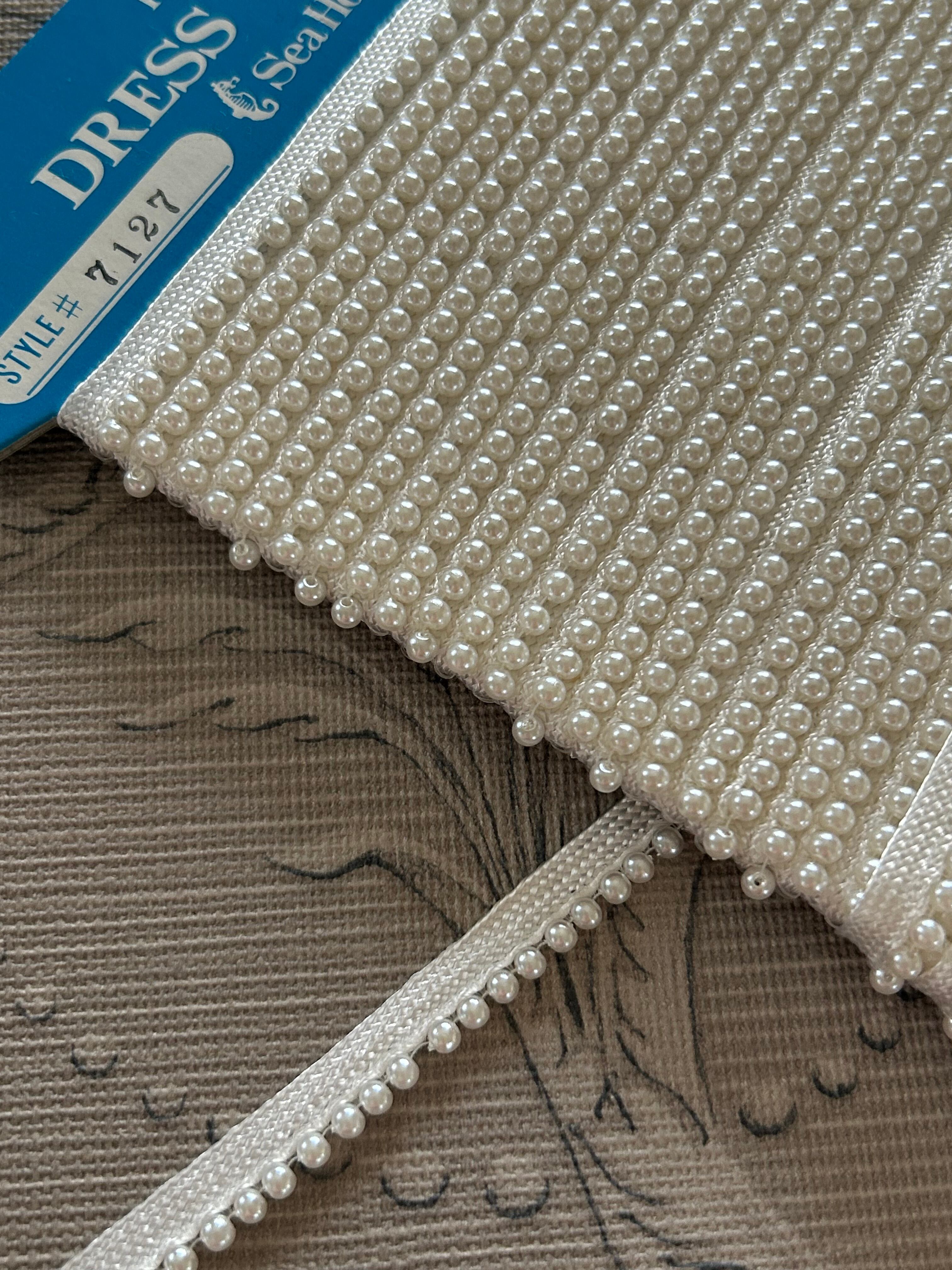 国産Vintage ビーズブレード パールホワイト カルトナージュ デコレーション材 100cm