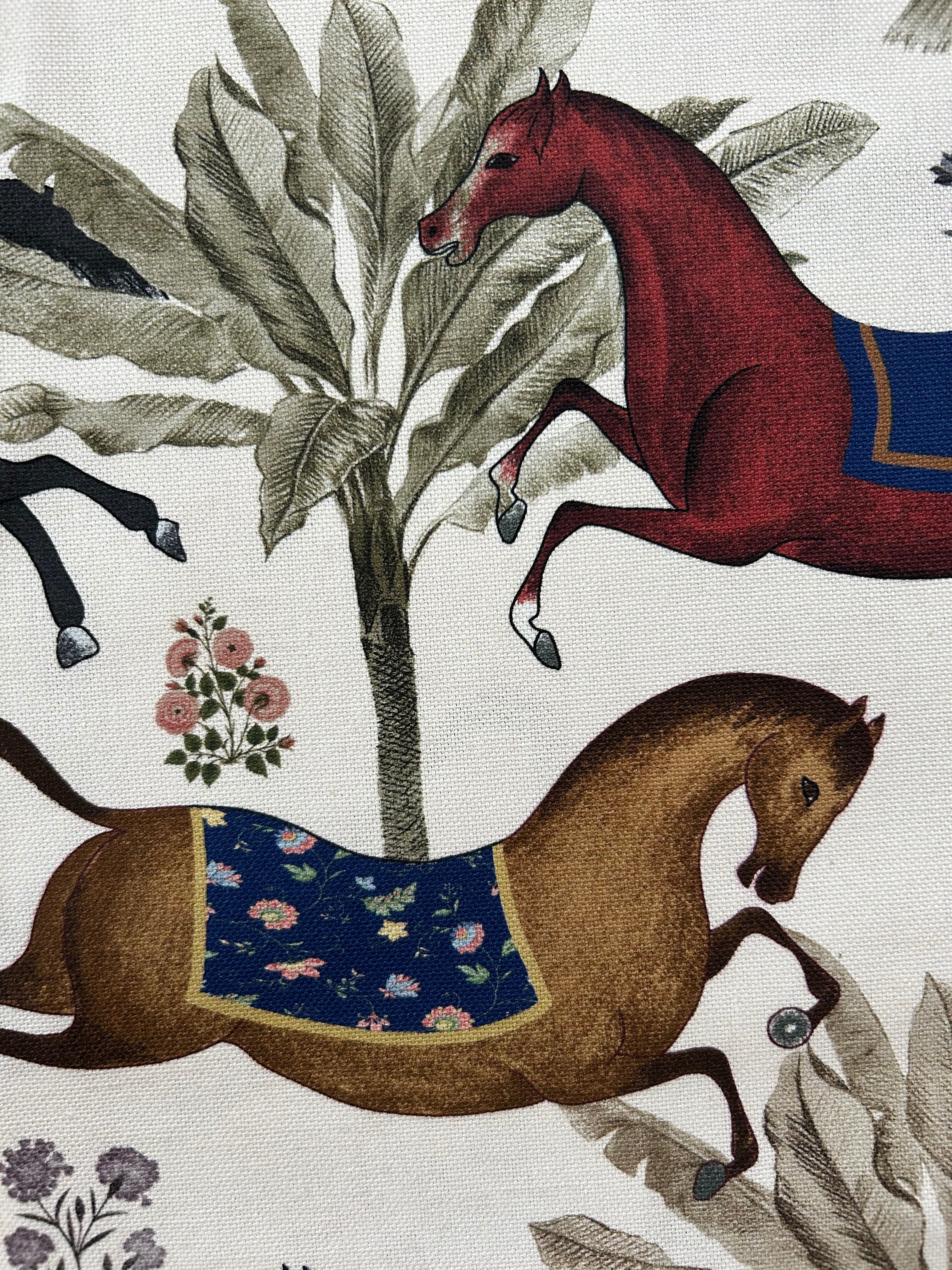 スペイン製 ファブリック ARABIAN コットン 馬柄 ホース柄 ホワイト 白 カルトナージュ 茶箱