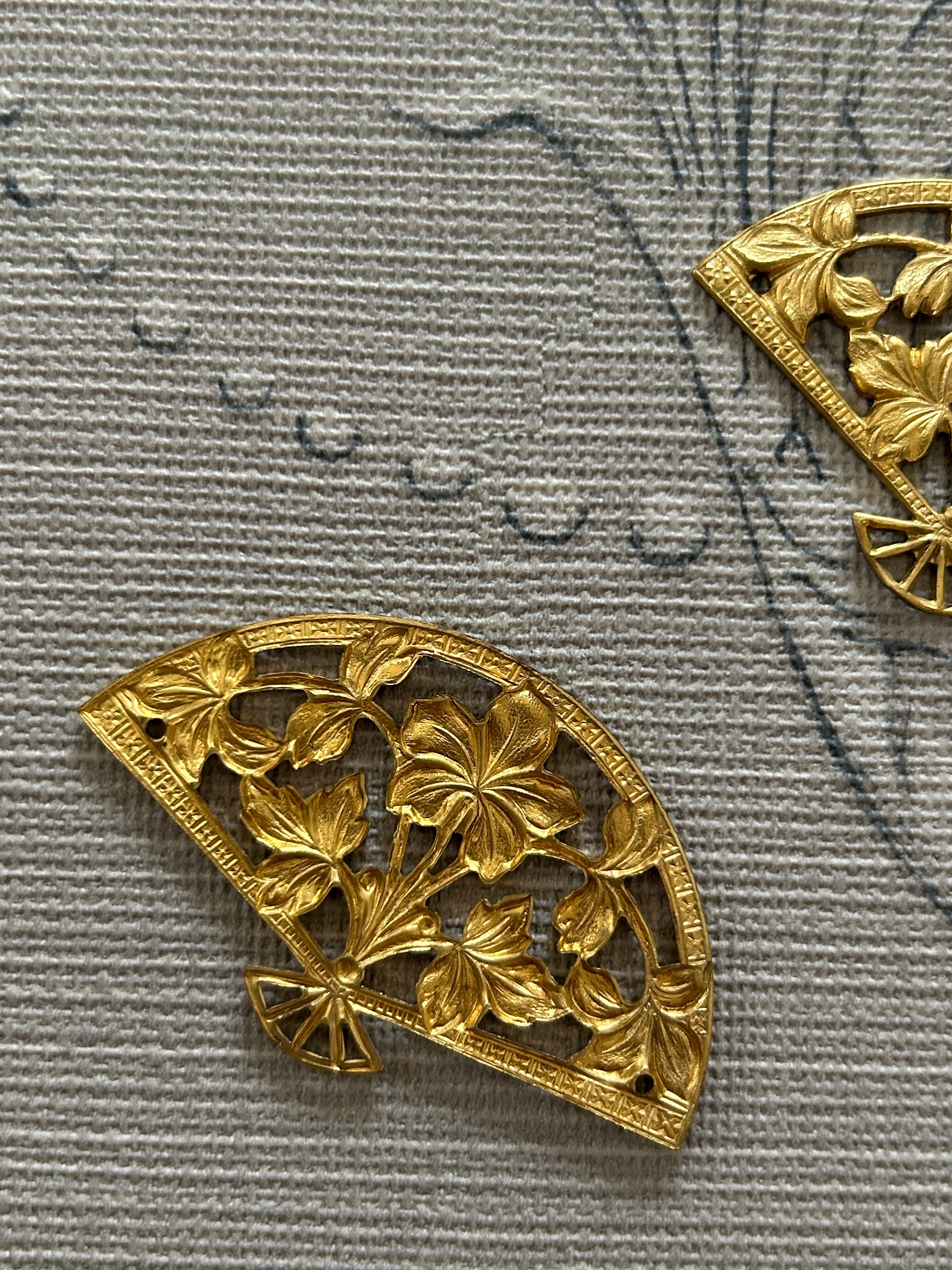 輸入デザインパーツ USA 扇子 扇 ファン 真鍮製 スタンピングパーツ フィリグリー 透かし フラワー アクセサリーパーツ でコレーション材 カルトナージュ ゴールド