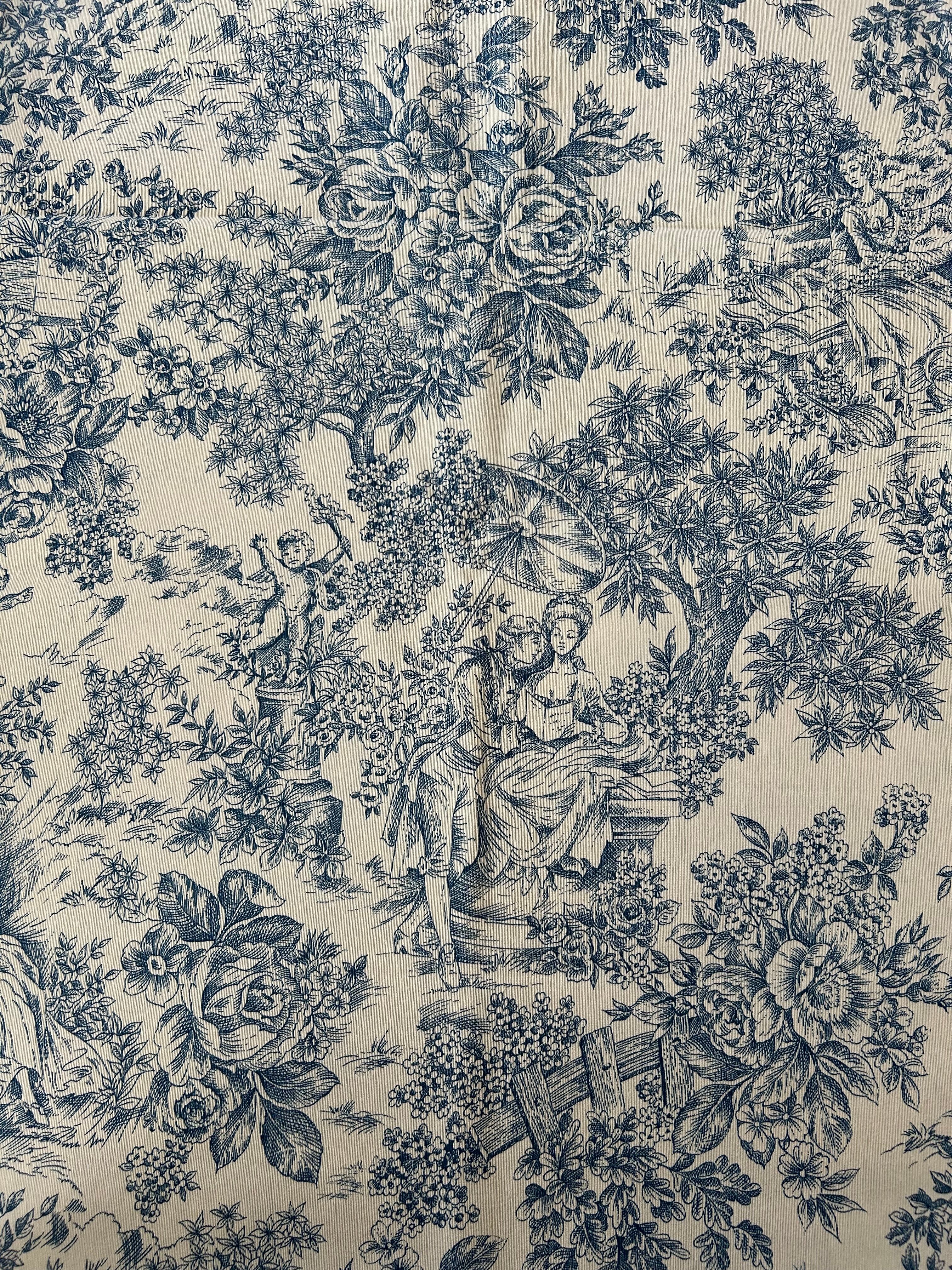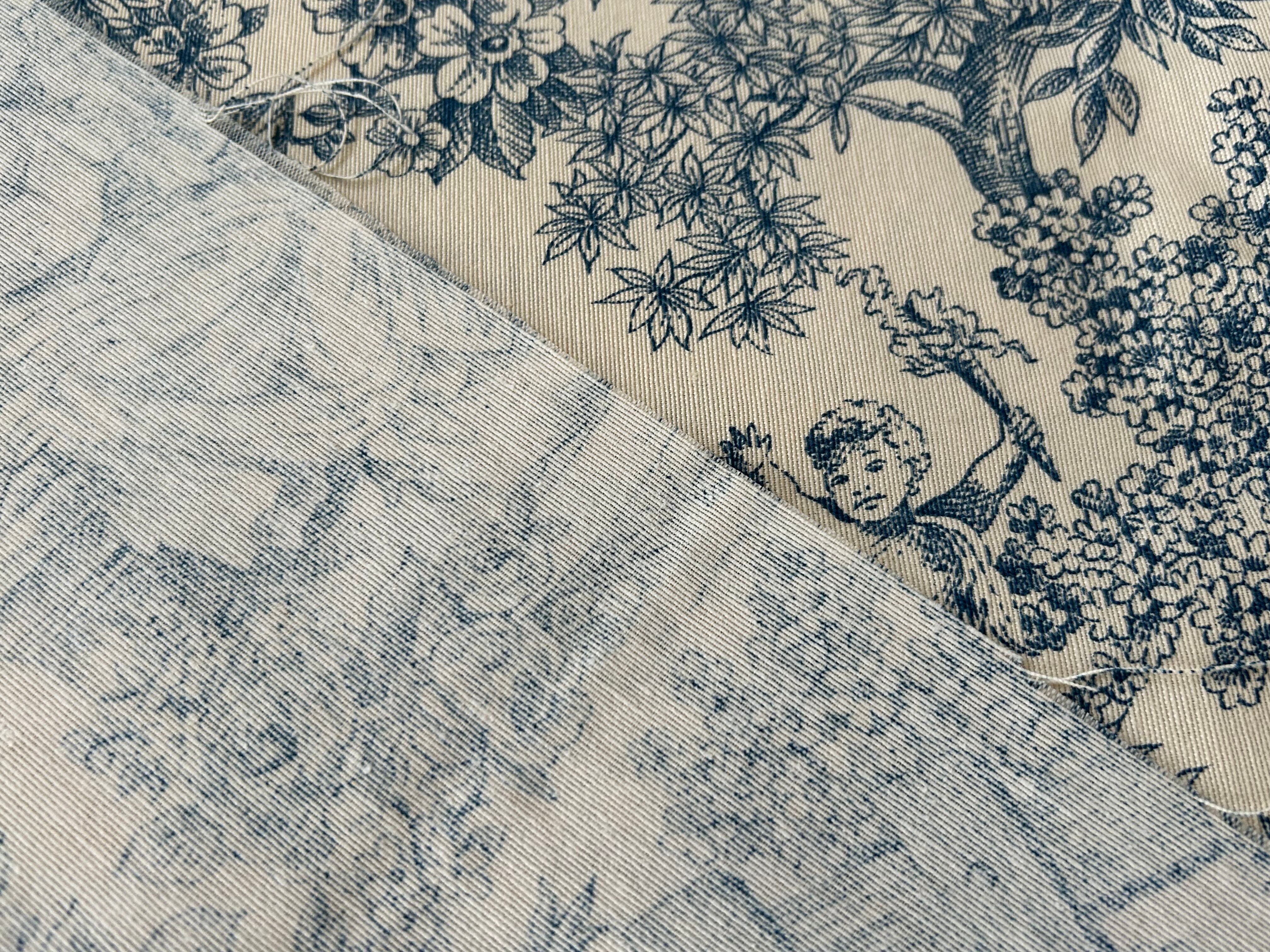 フランス 輸入コットンファブリック トワルドジュイ Toile de Jouy ブルー カルトナージュ スツール 茶箱 バッグ