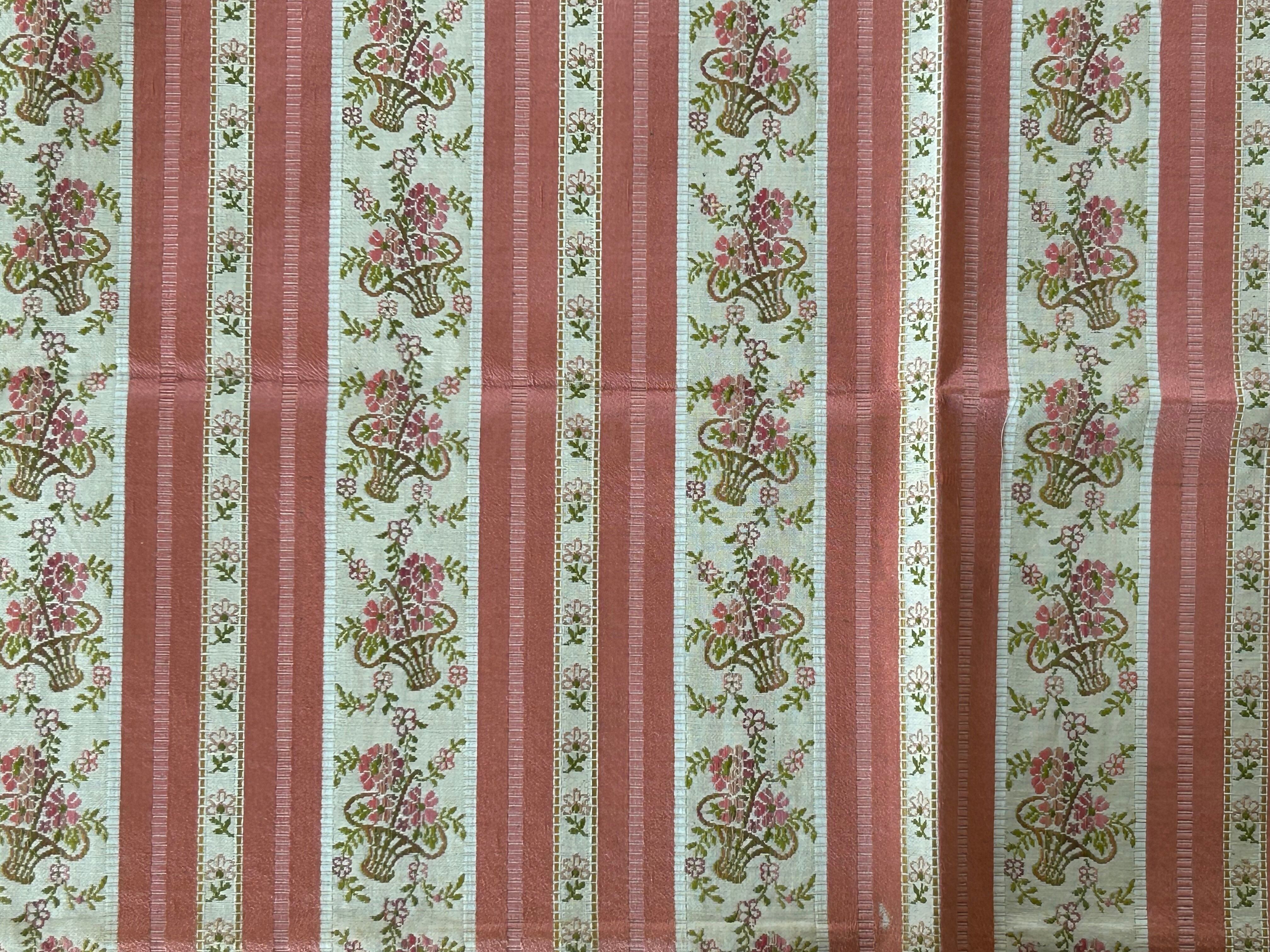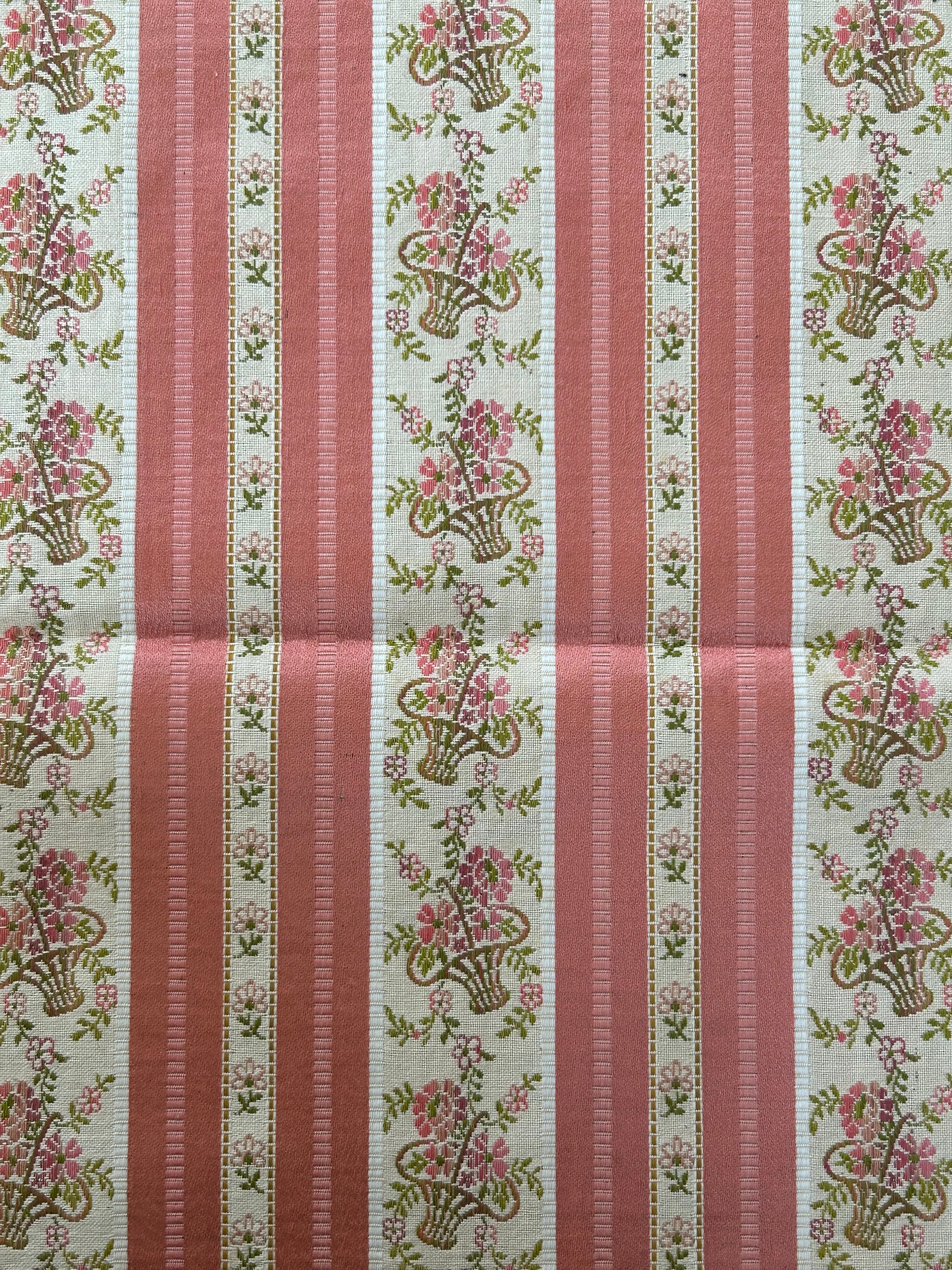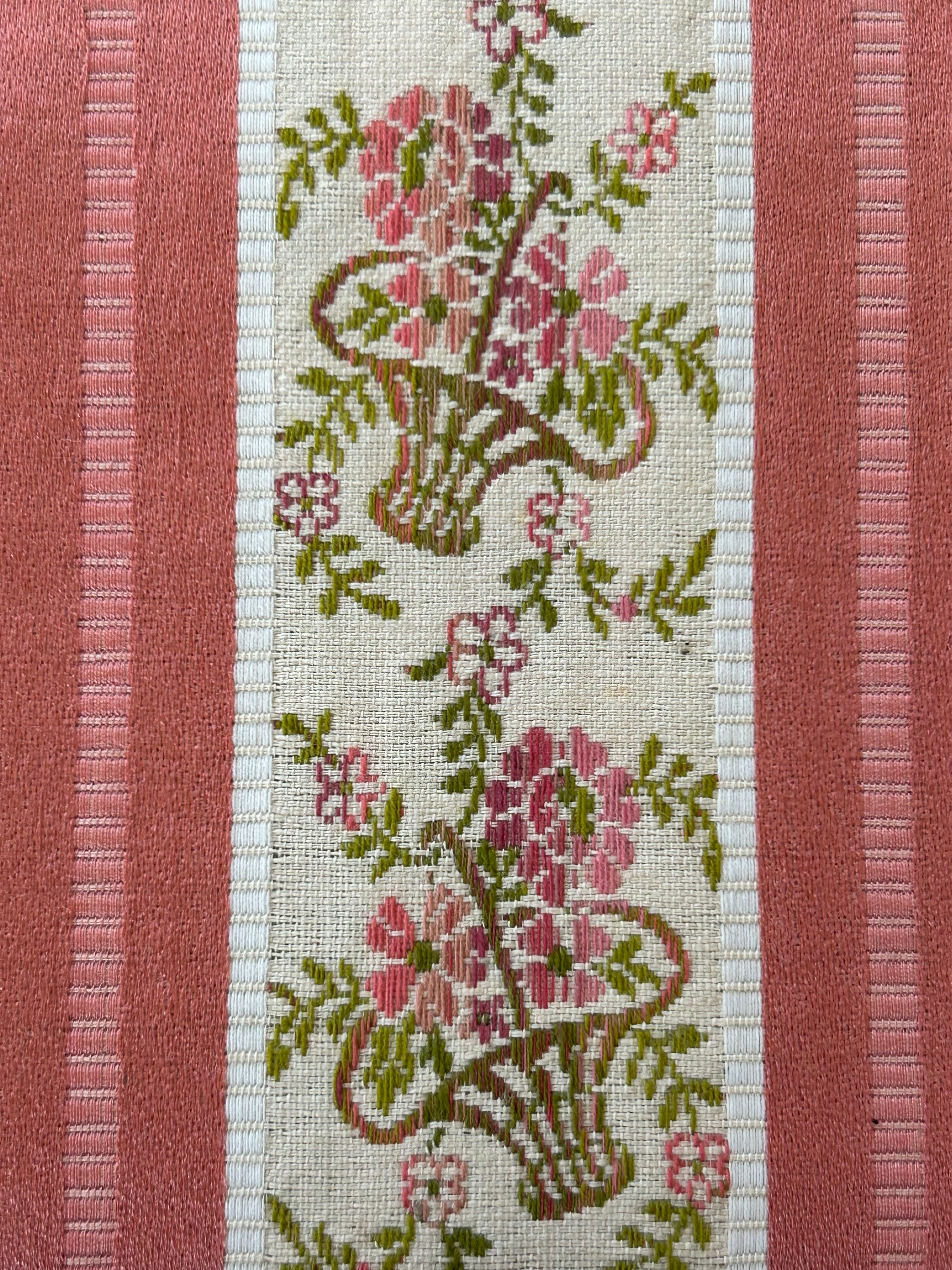 フランスアンティークファブリック パニエ 花籠 フラワーバスケット インテリアファブリック ピンク カルトナージュ