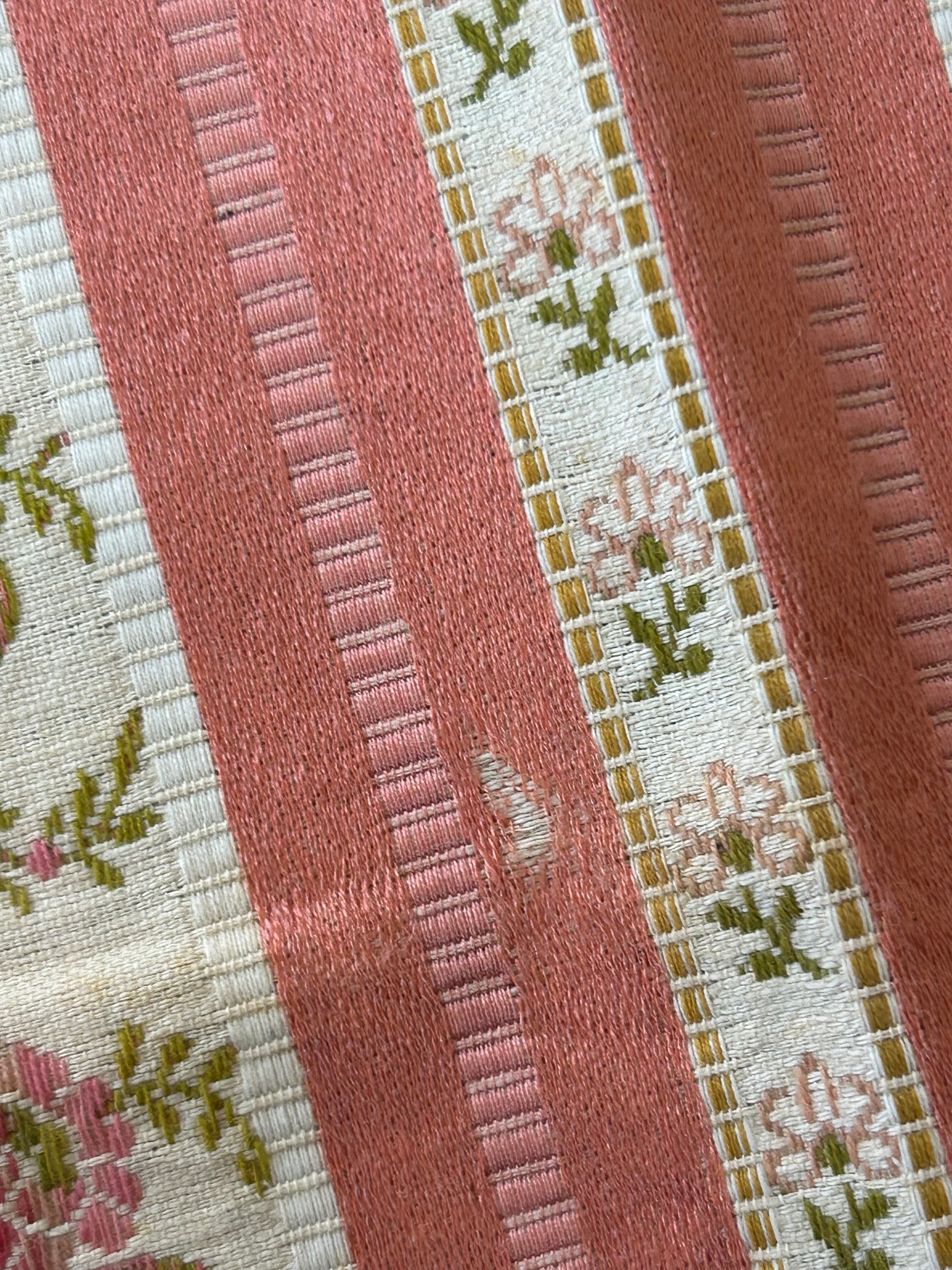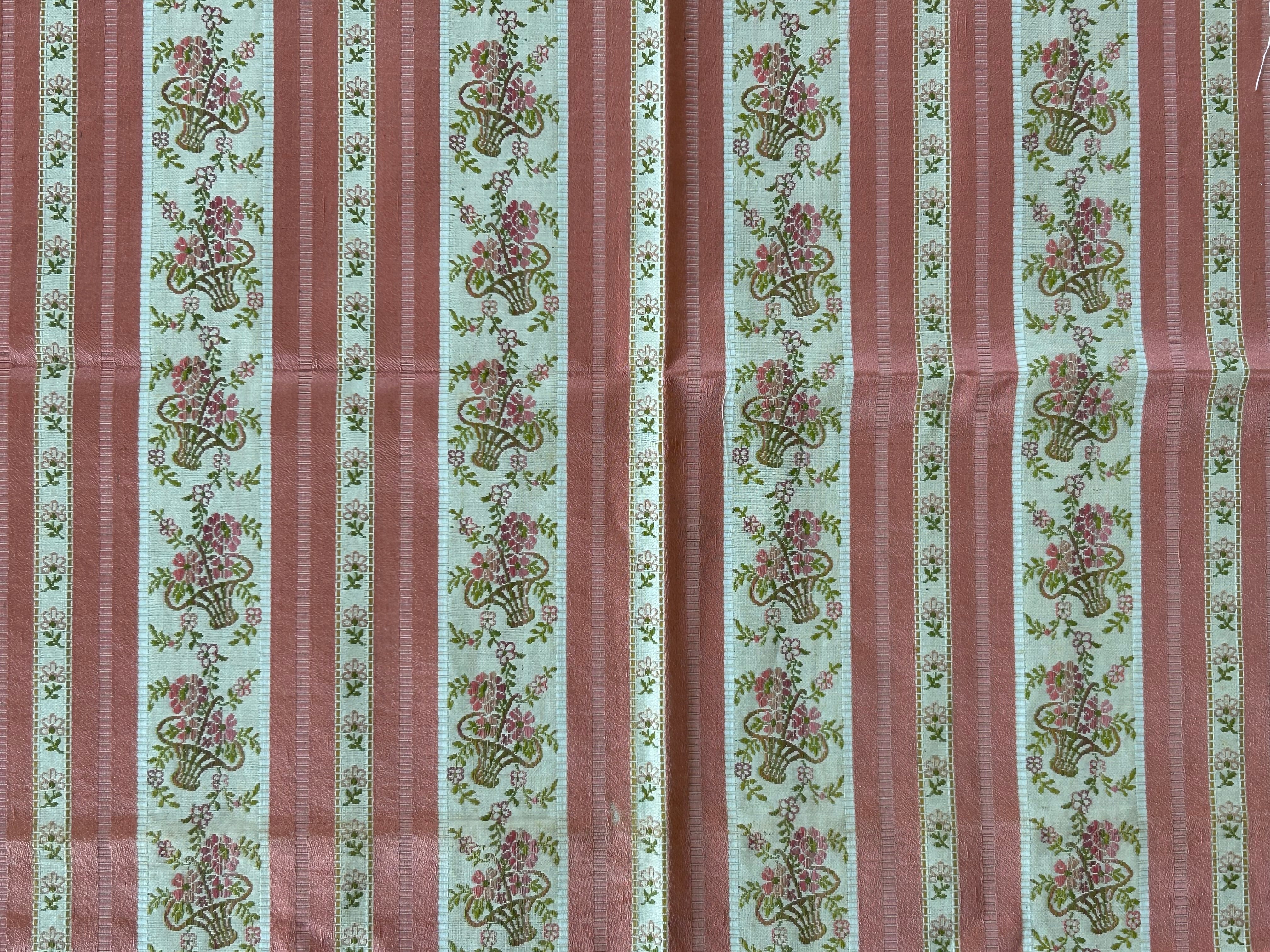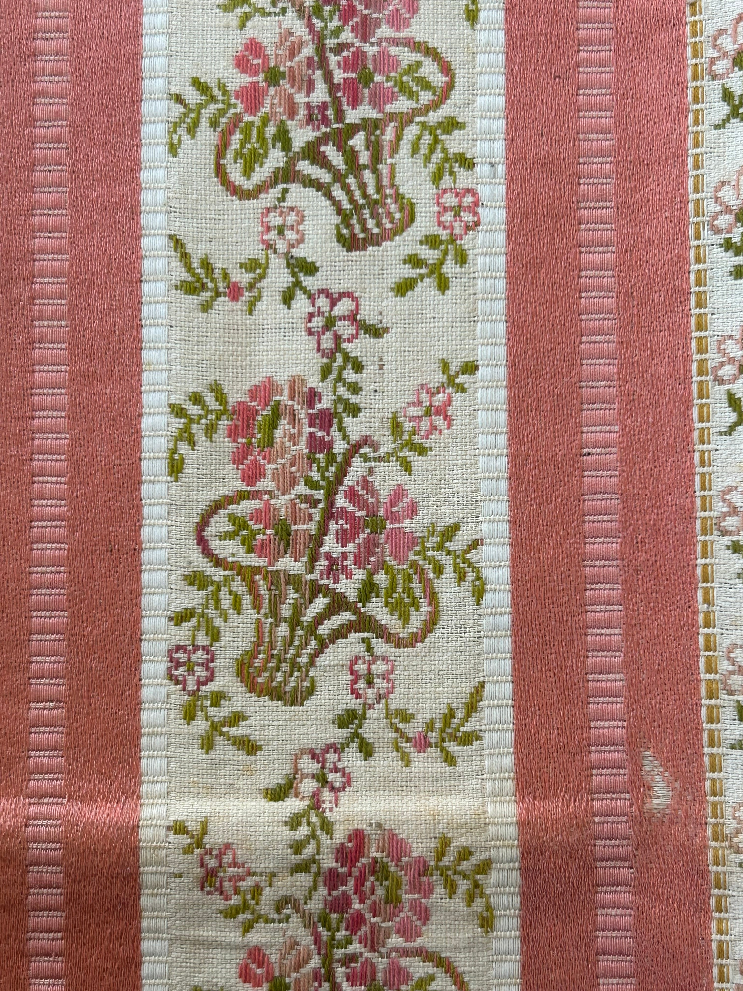 フランスアンティークファブリック パニエ 花籠 フラワーバスケット インテリアファブリック ピンク カルトナージュ