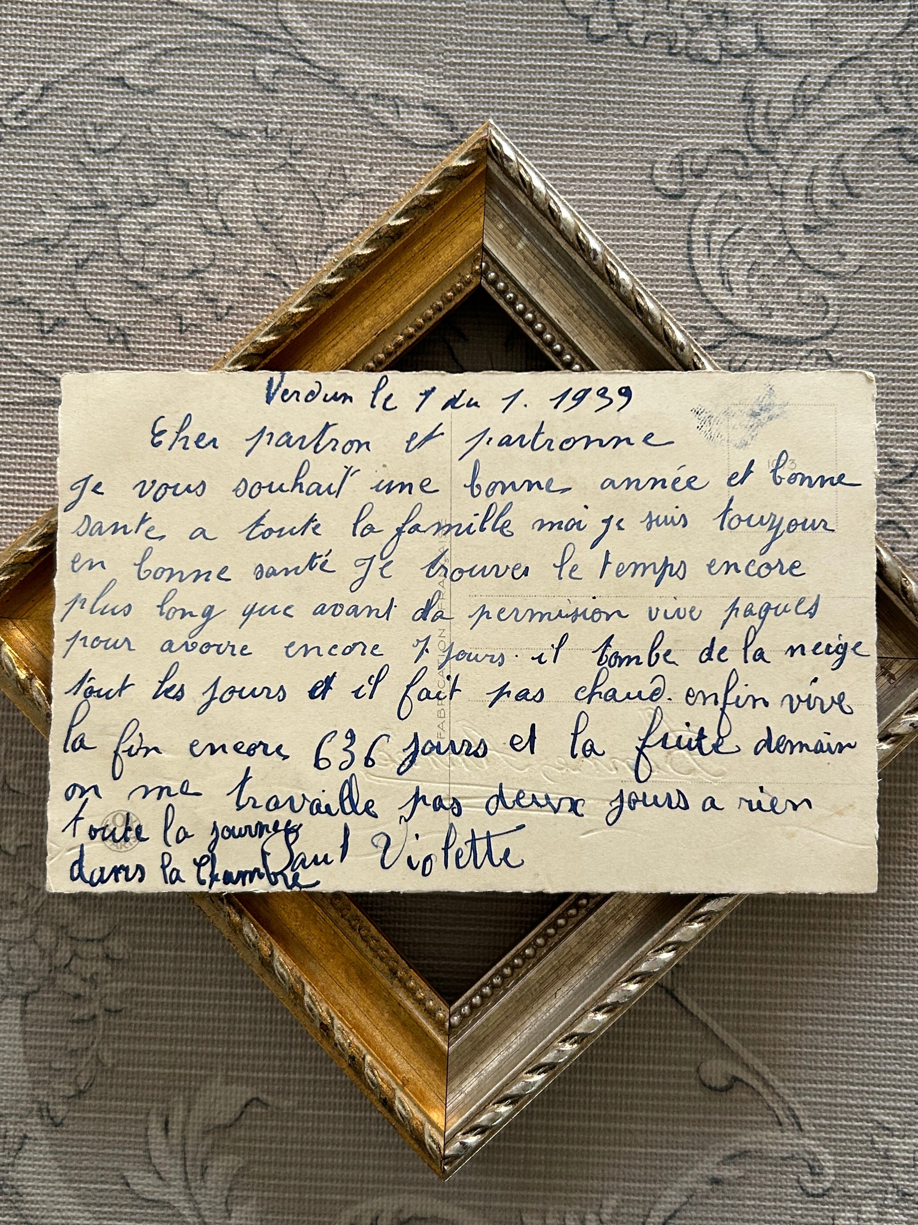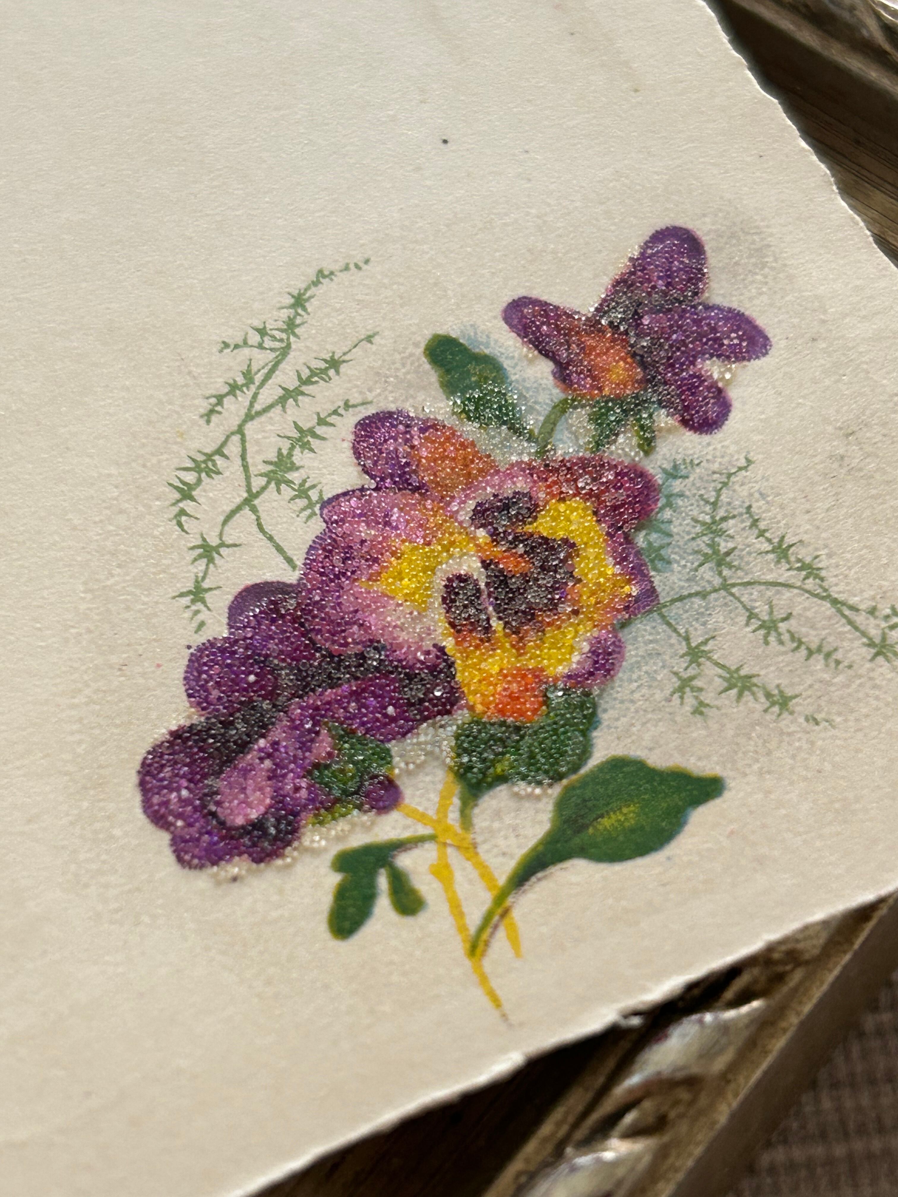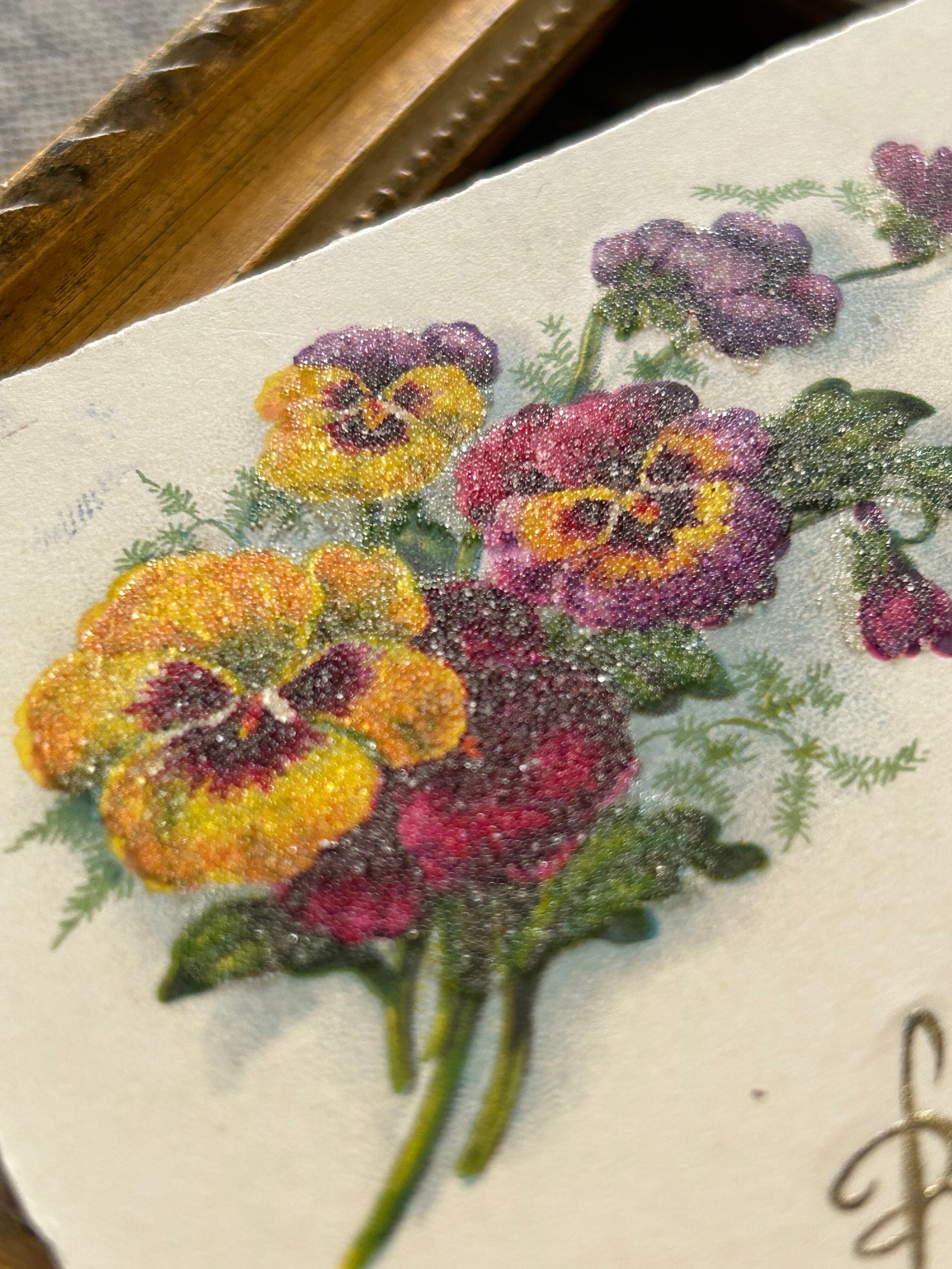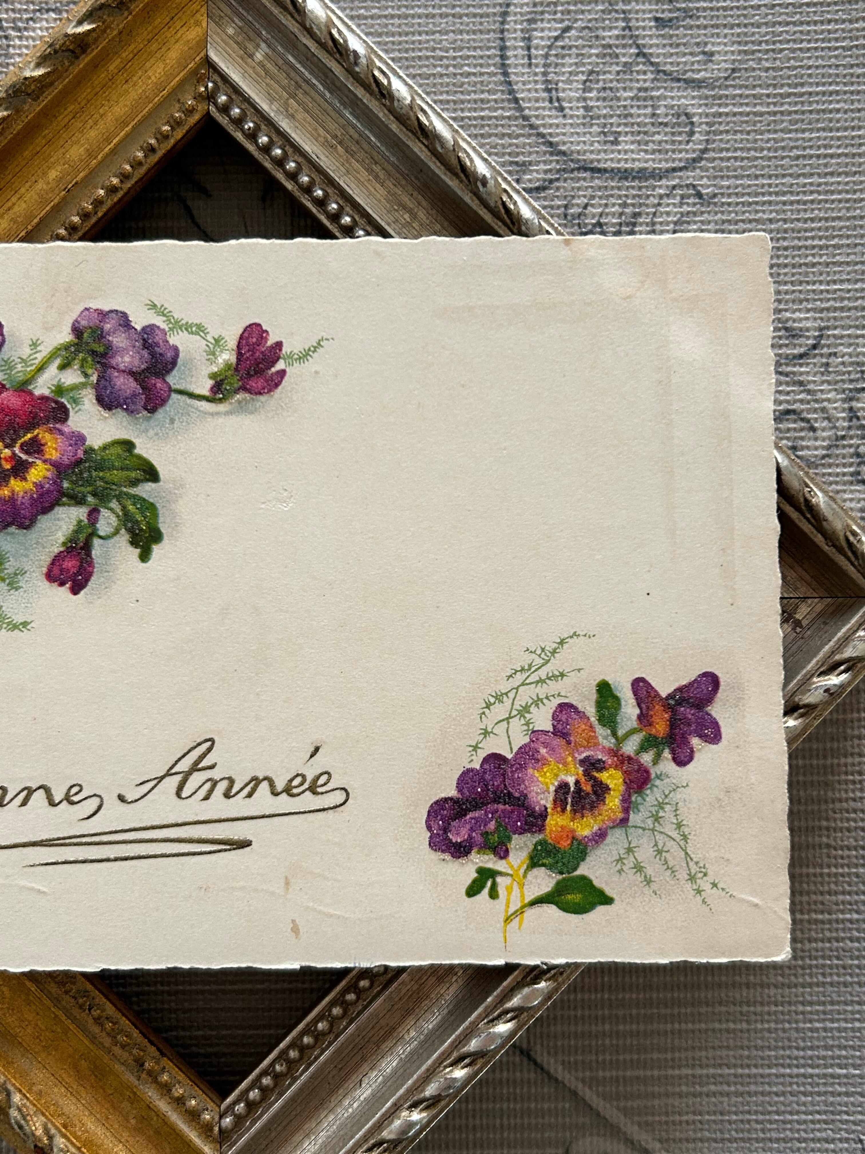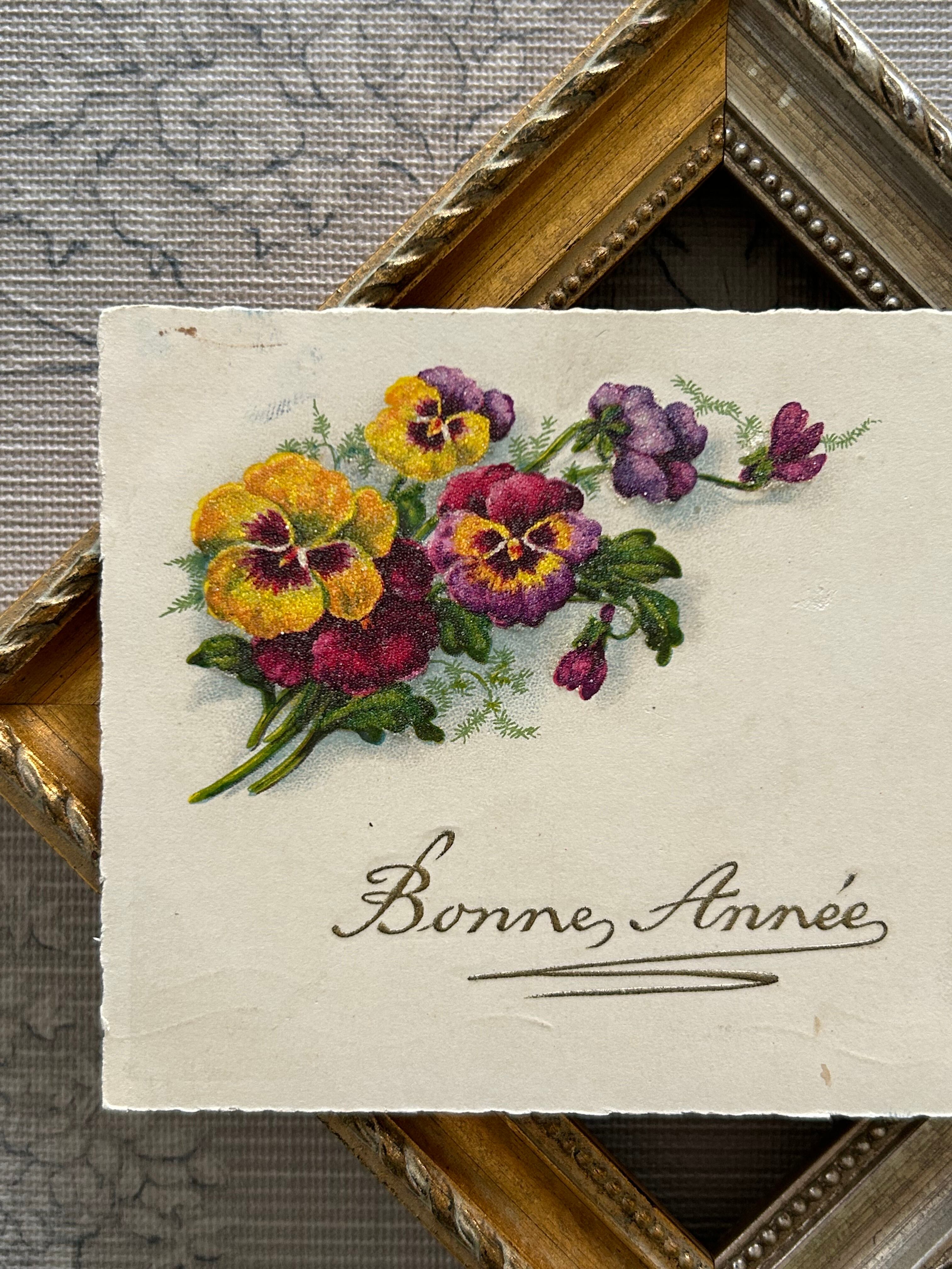 アンティークポストカード Bonne Anee パンジー 1939年 フランス 額装 インテリア コレクション BE