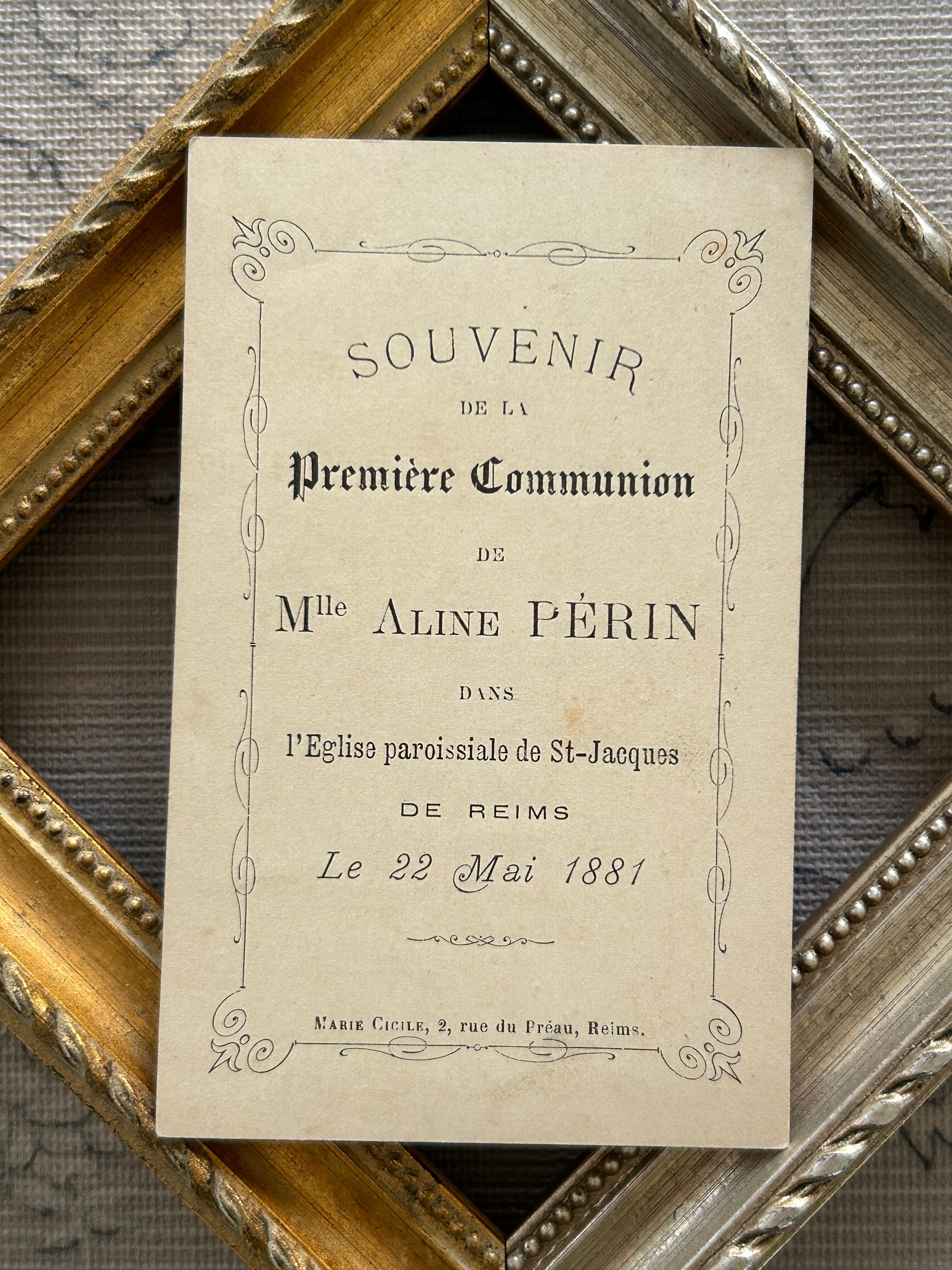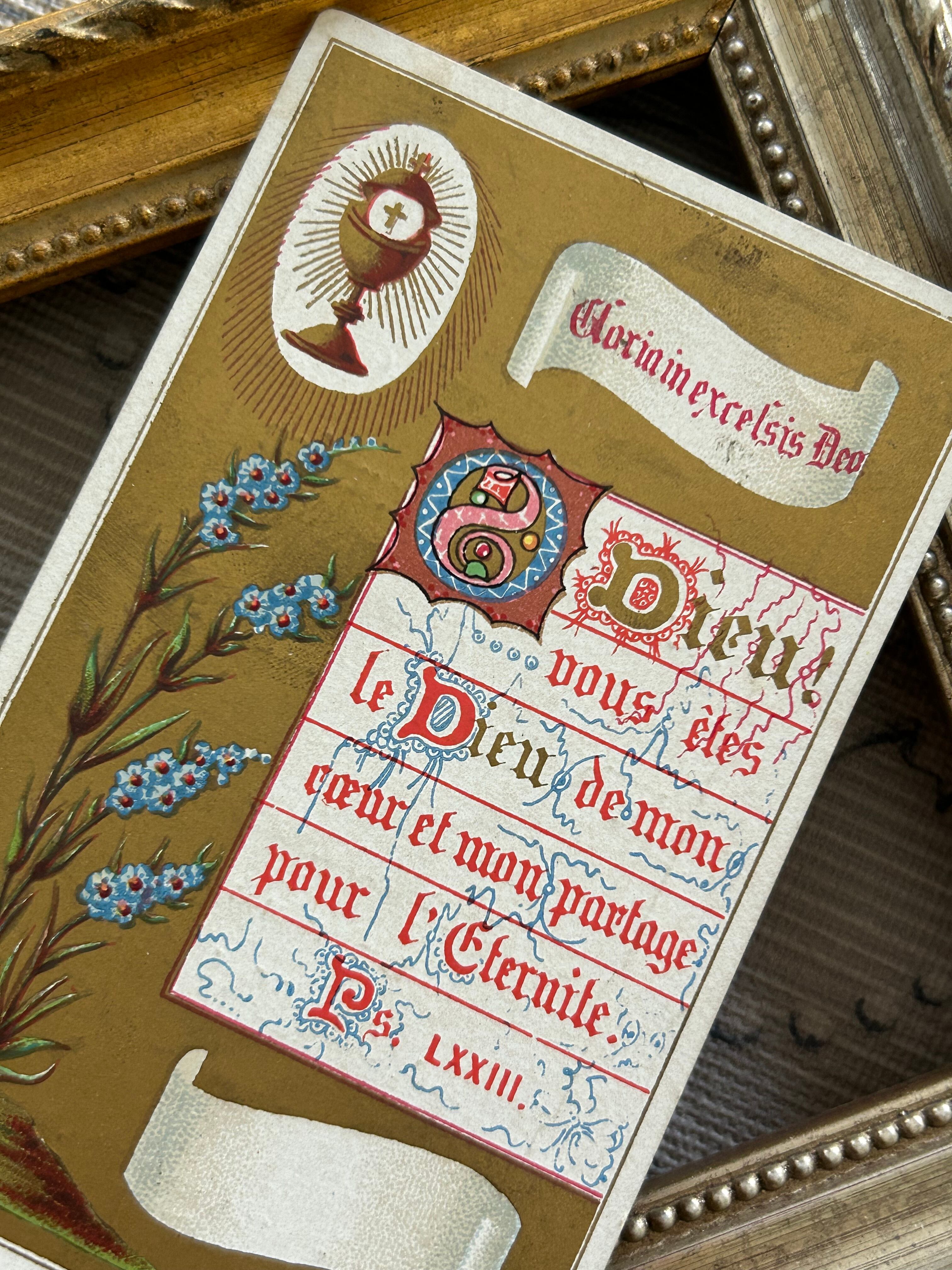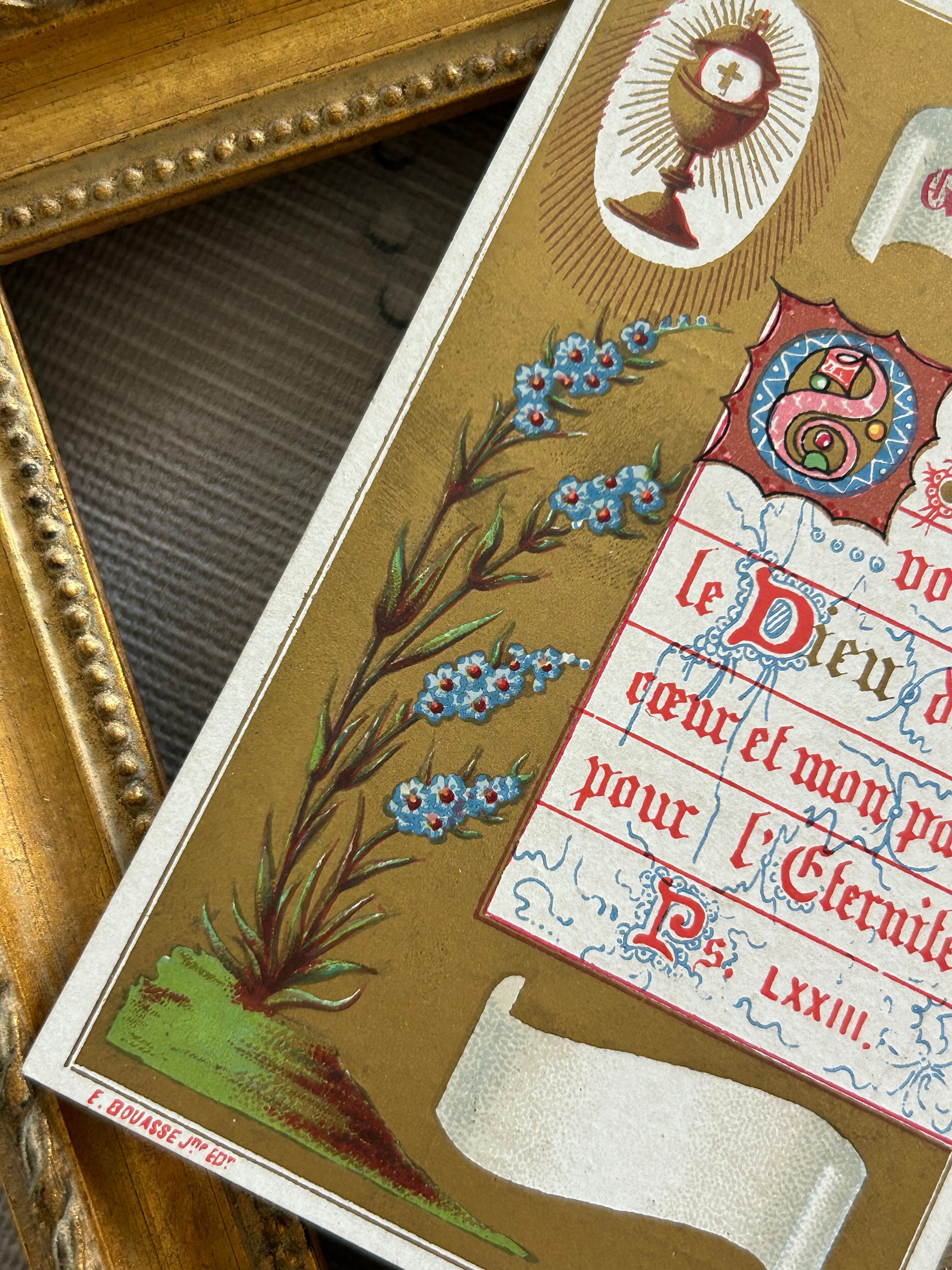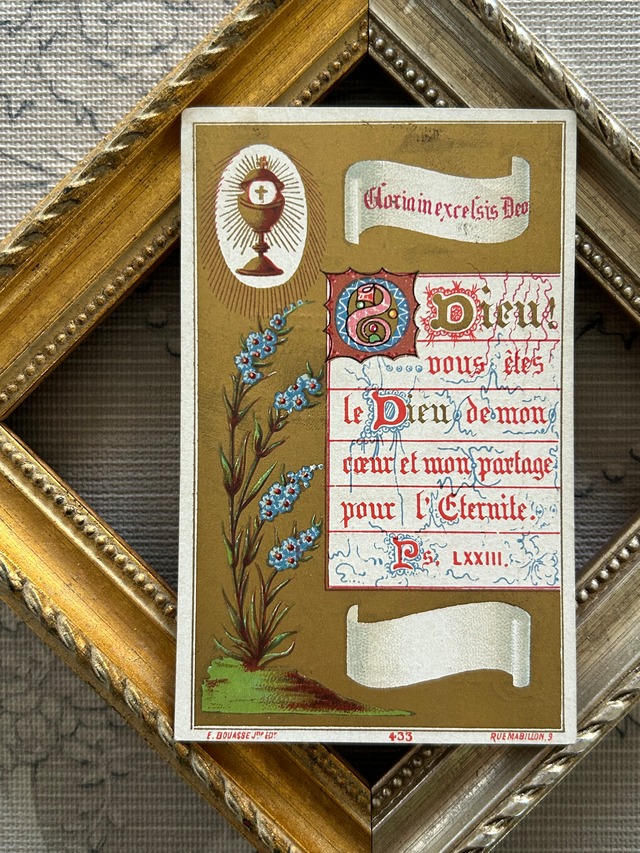 フランスアンティーク Holy Card ホーリーカード 花柄 1881年 額装 コレクション 撮影小物 BE