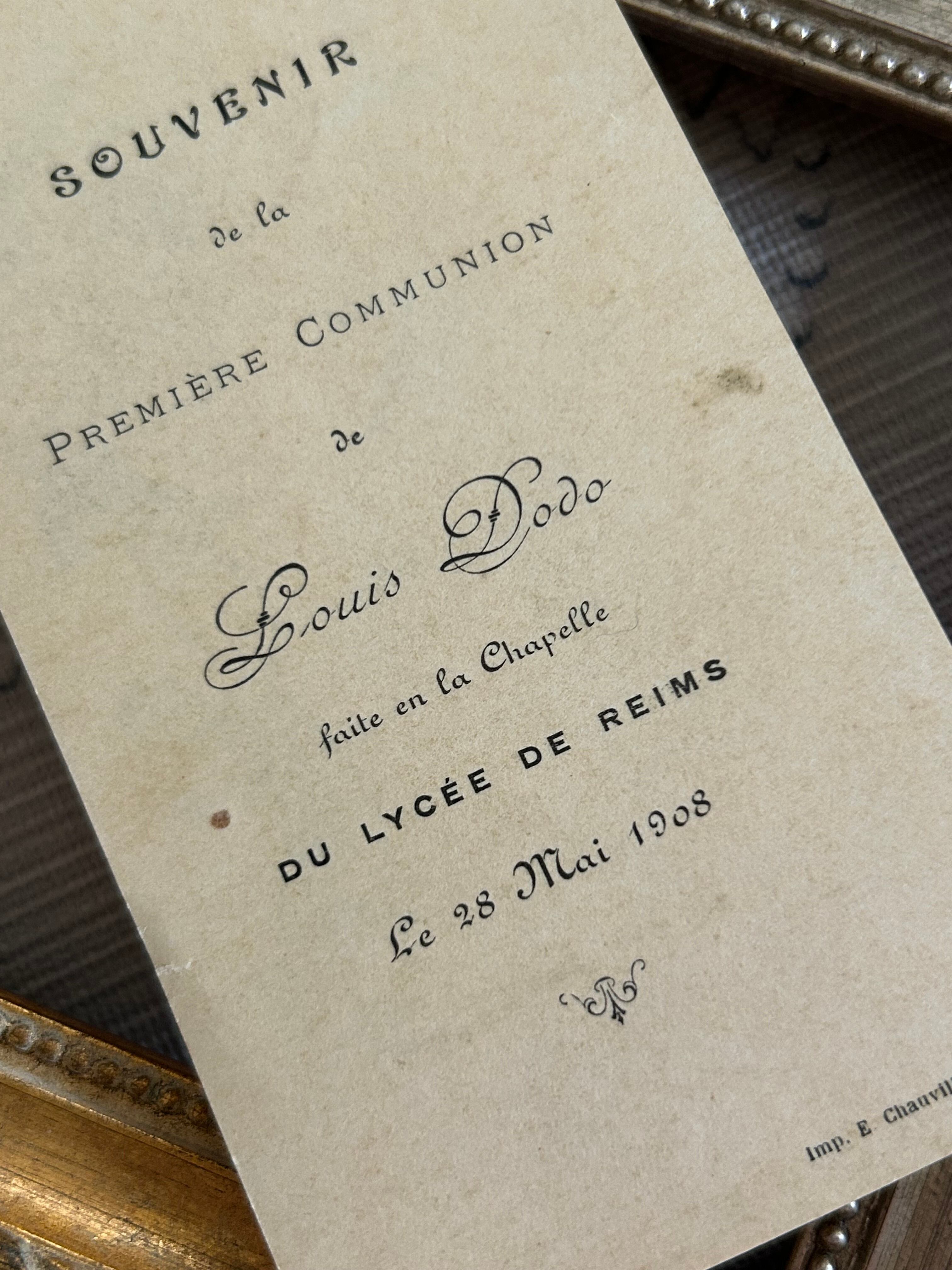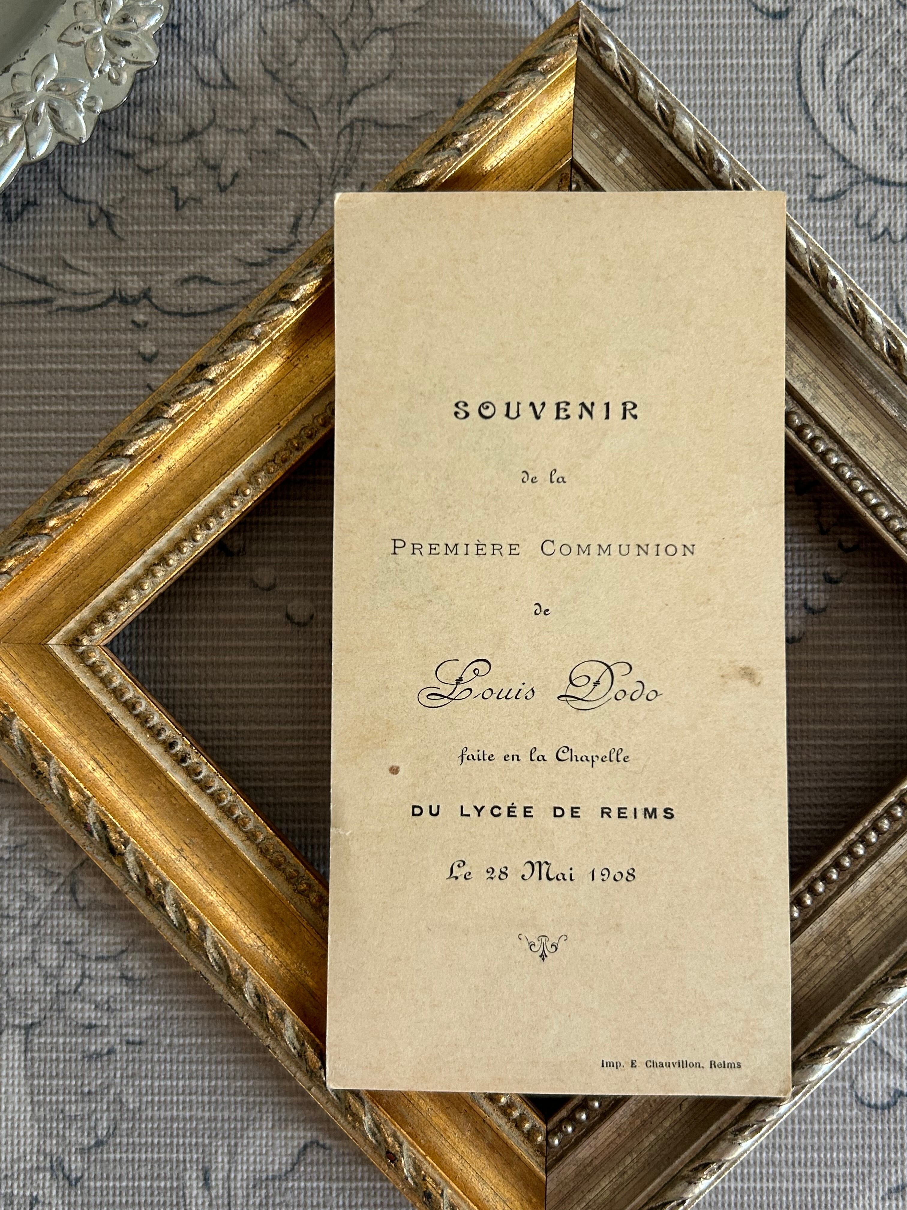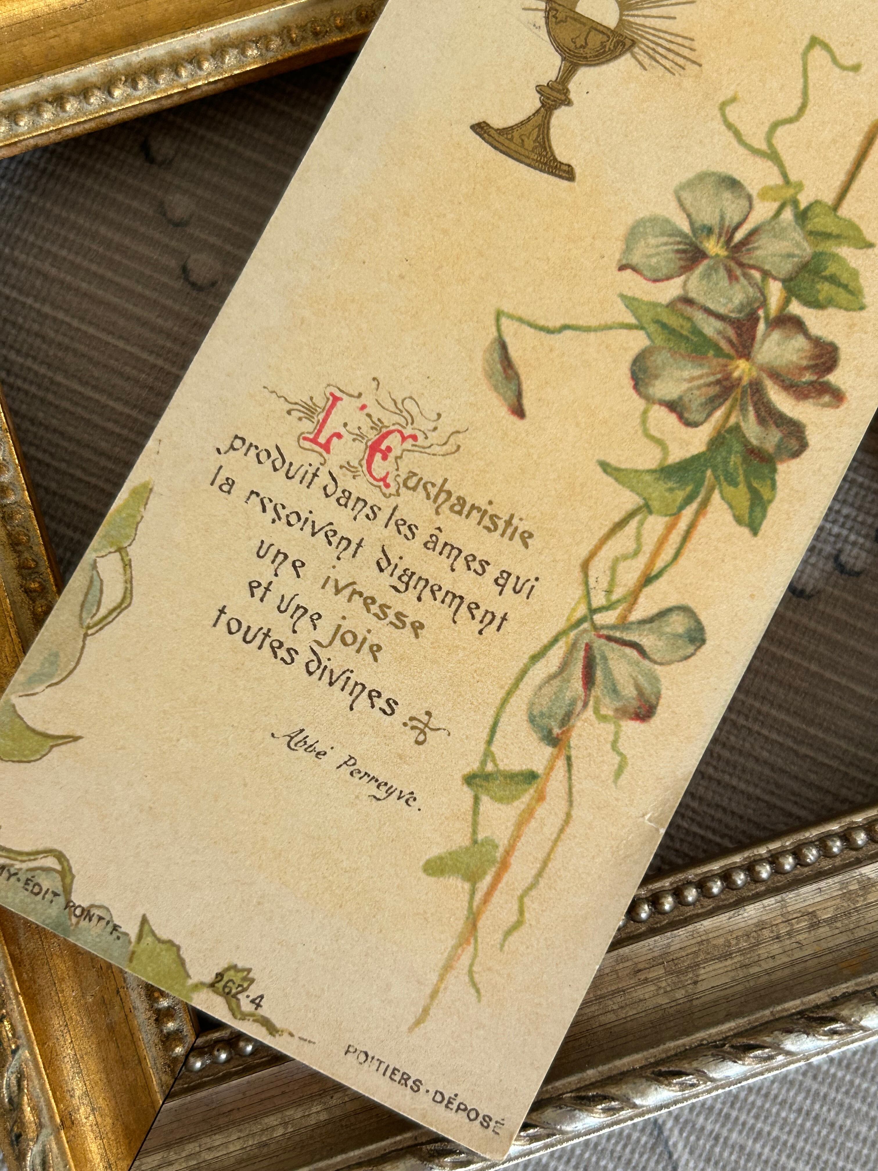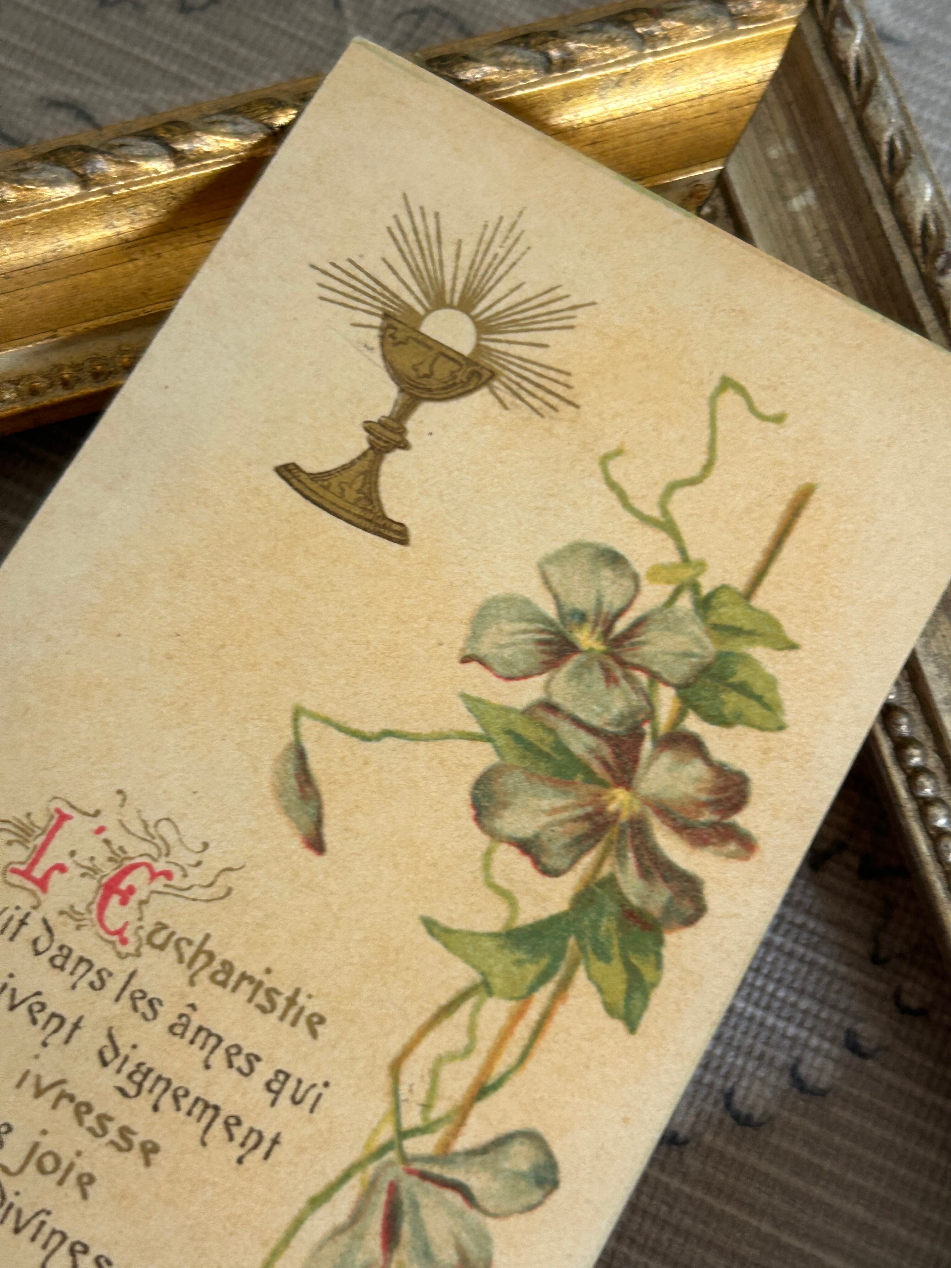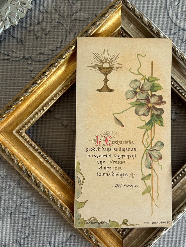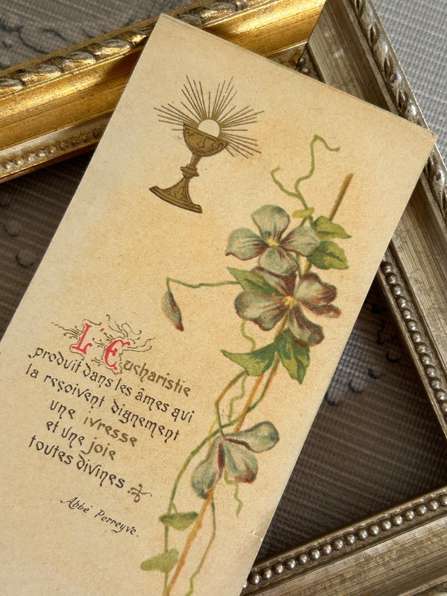 フランスアンティーク Holy Card ホーリーカード すみれ violette 聖杯 1908年 額装 コレクション 撮影小物