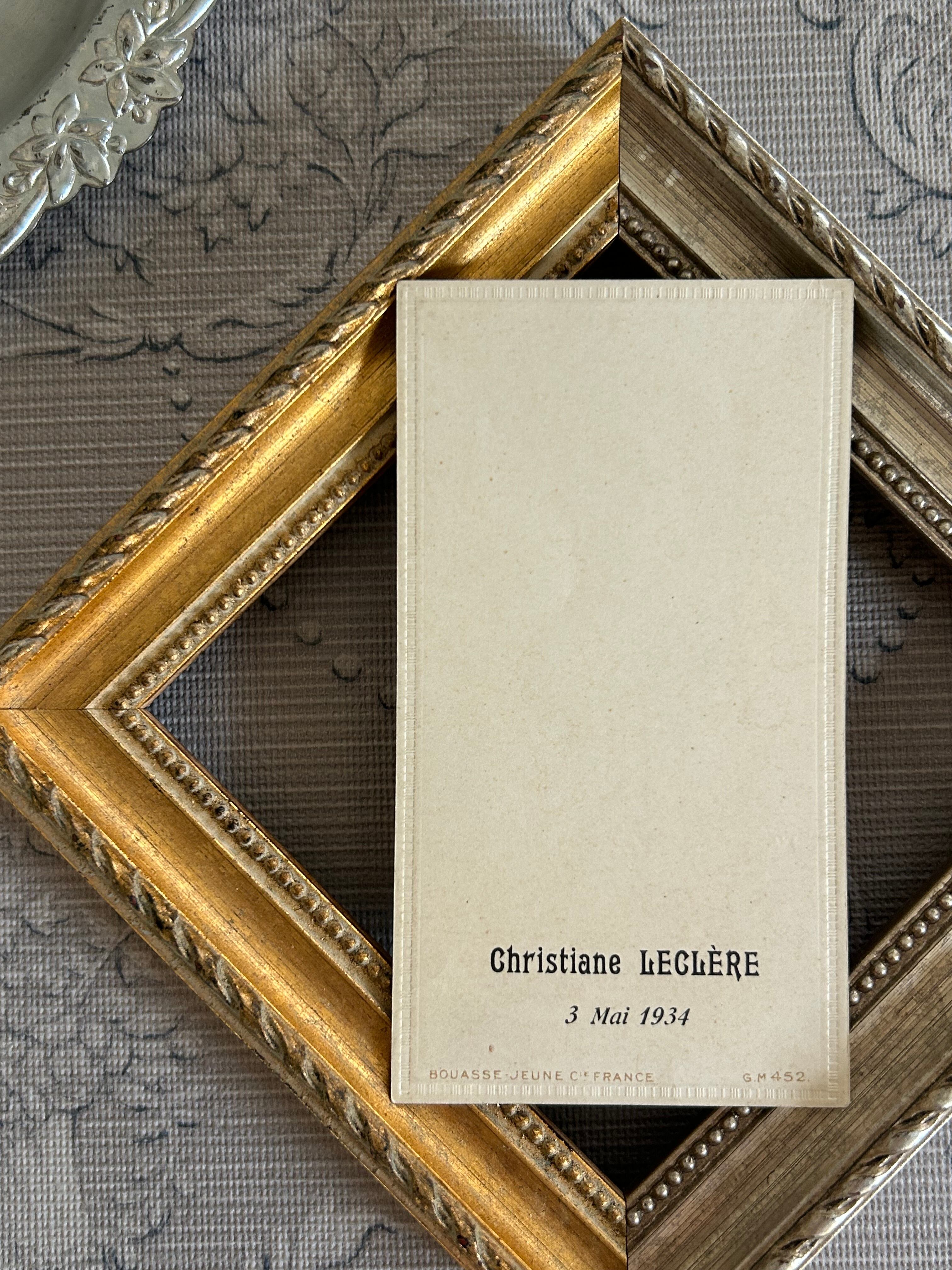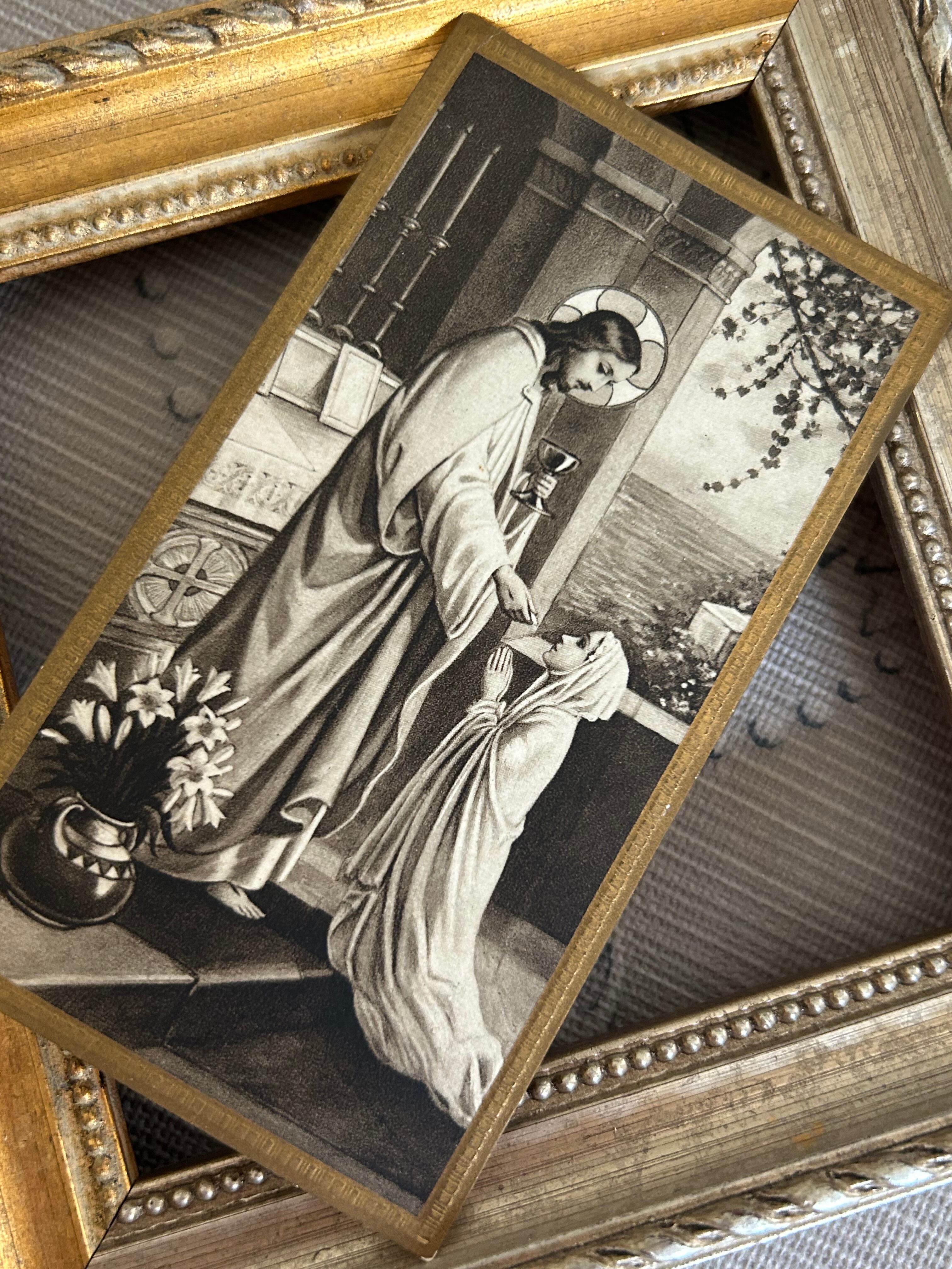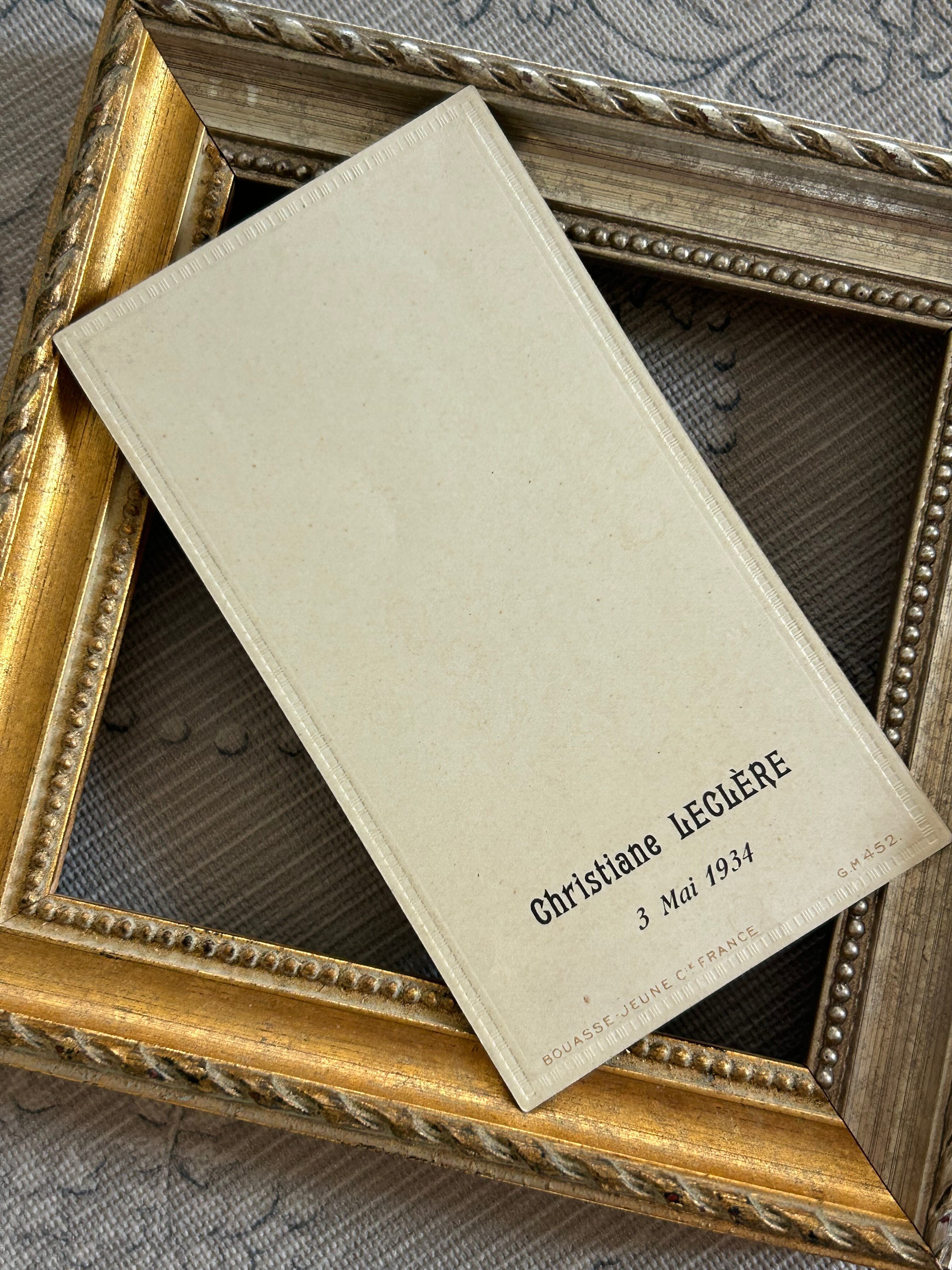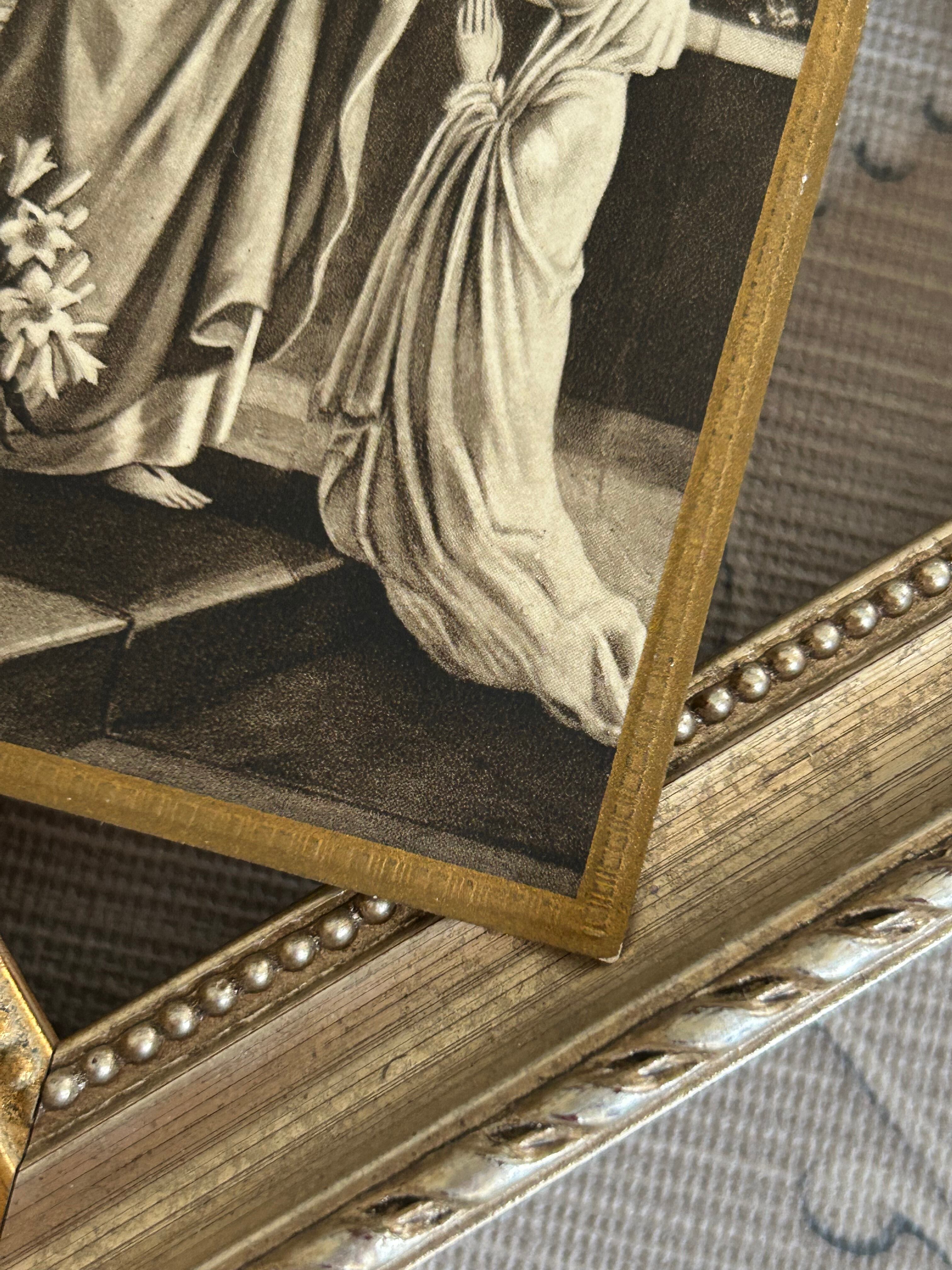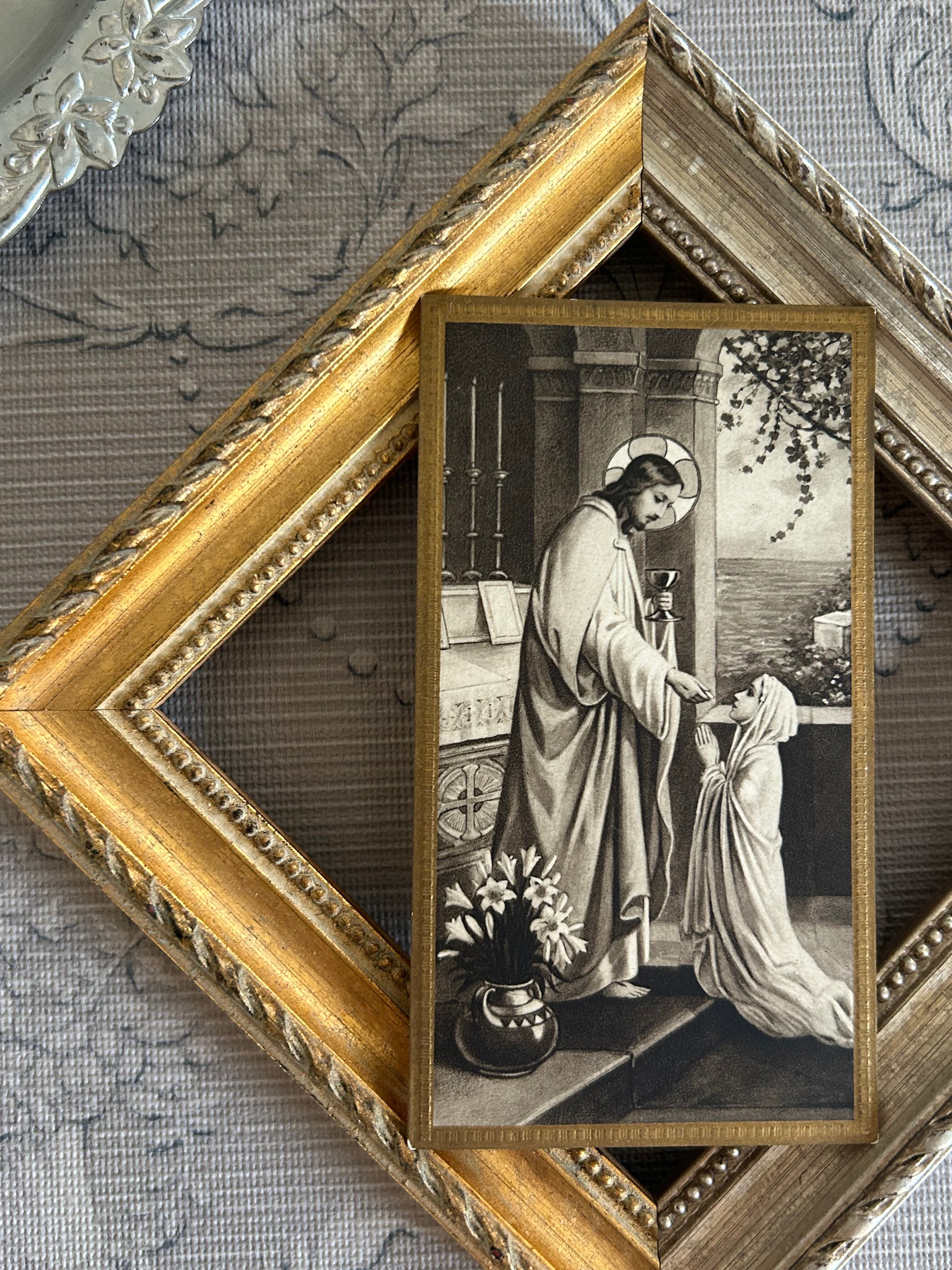 フランスアンティーク Holy Card ホーリーカード 百合 聖杯 エンボス 1934年 額装 コレクション 撮影小物 BE