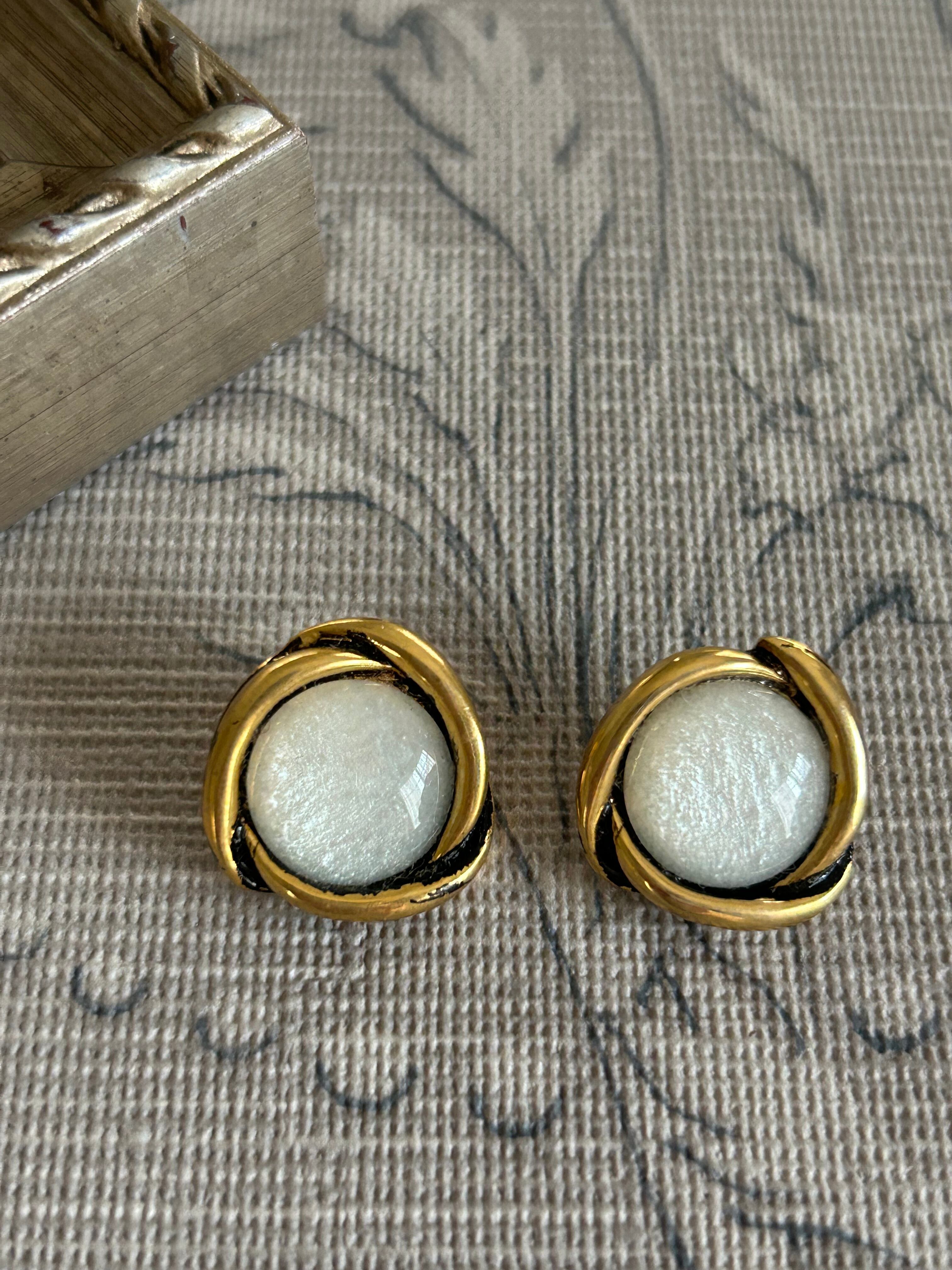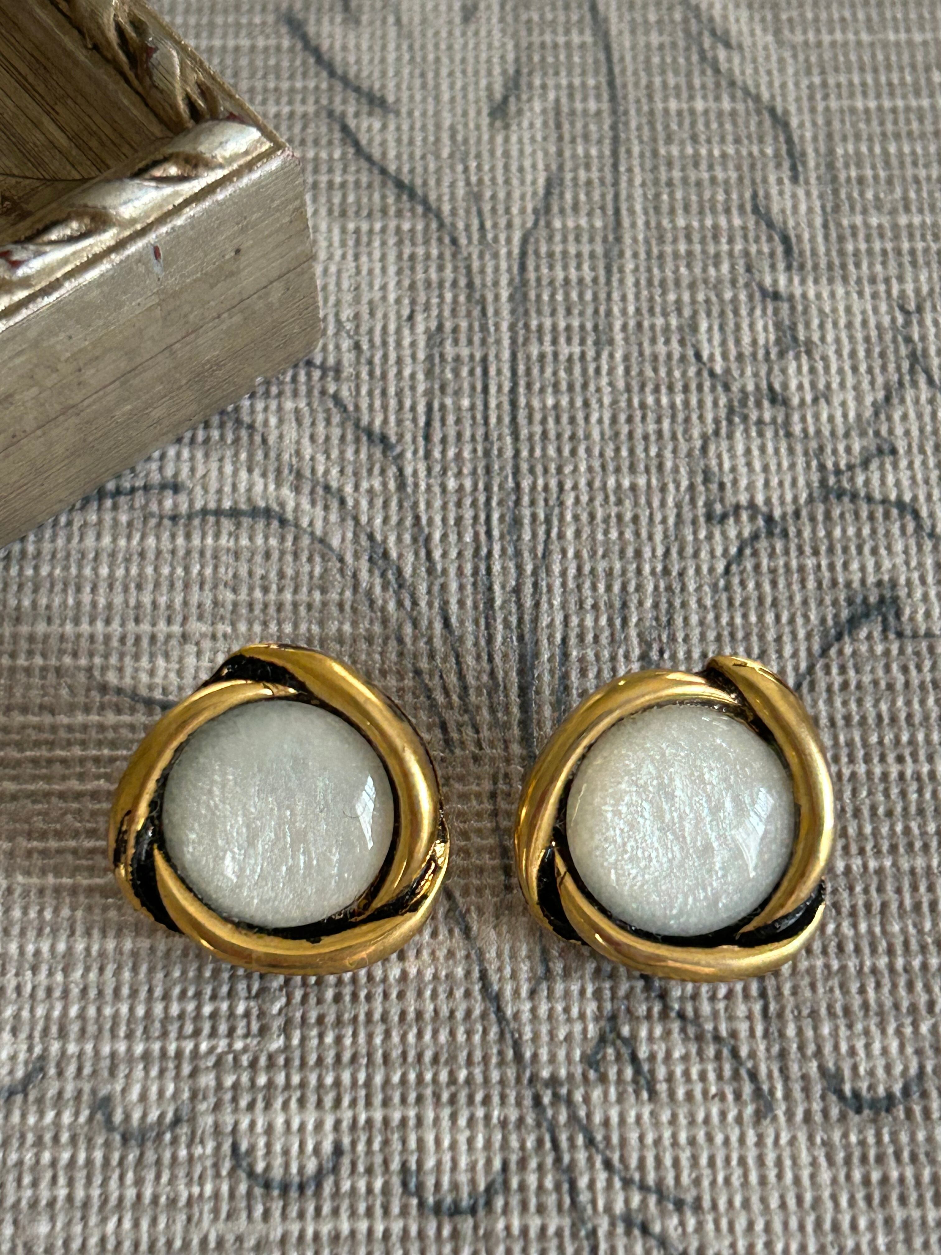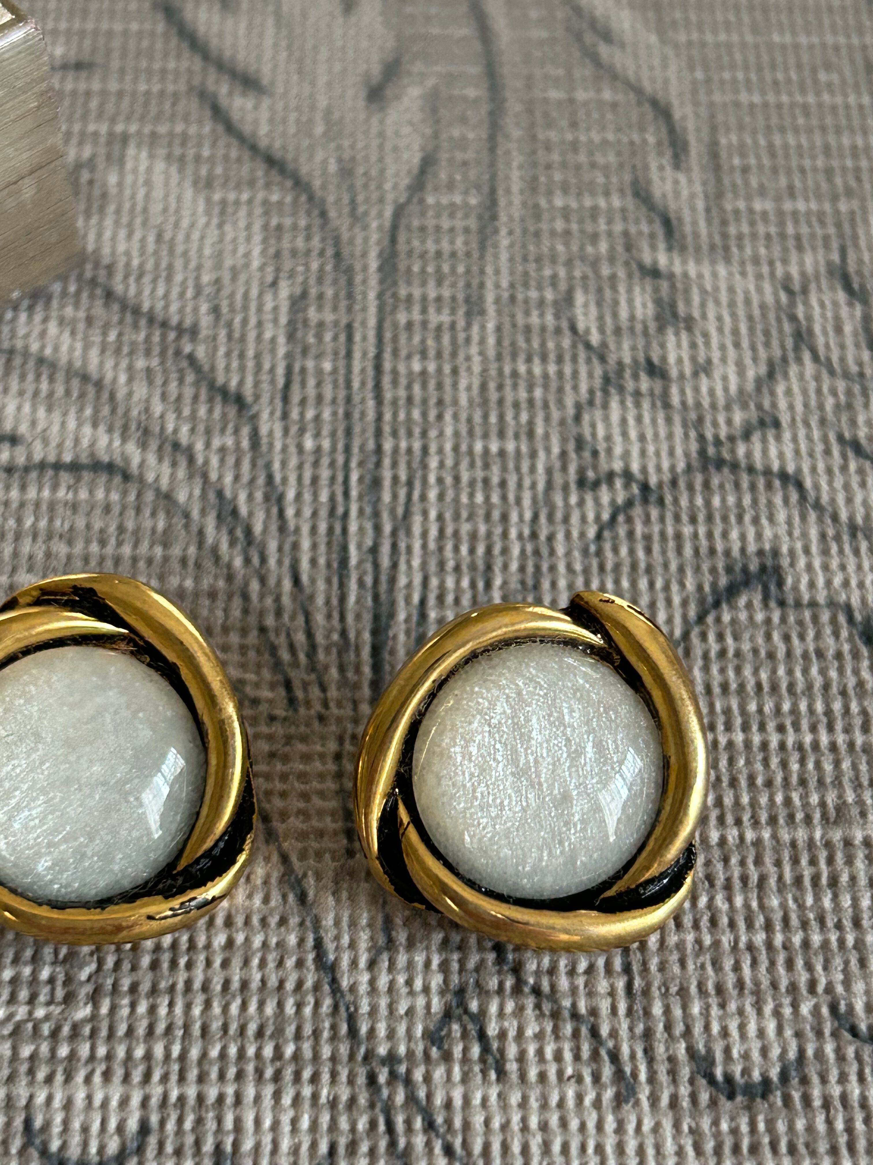 中央にホワイトカラーのカボション、ゴールドフレームがクラシカルで格好良いデザイン。