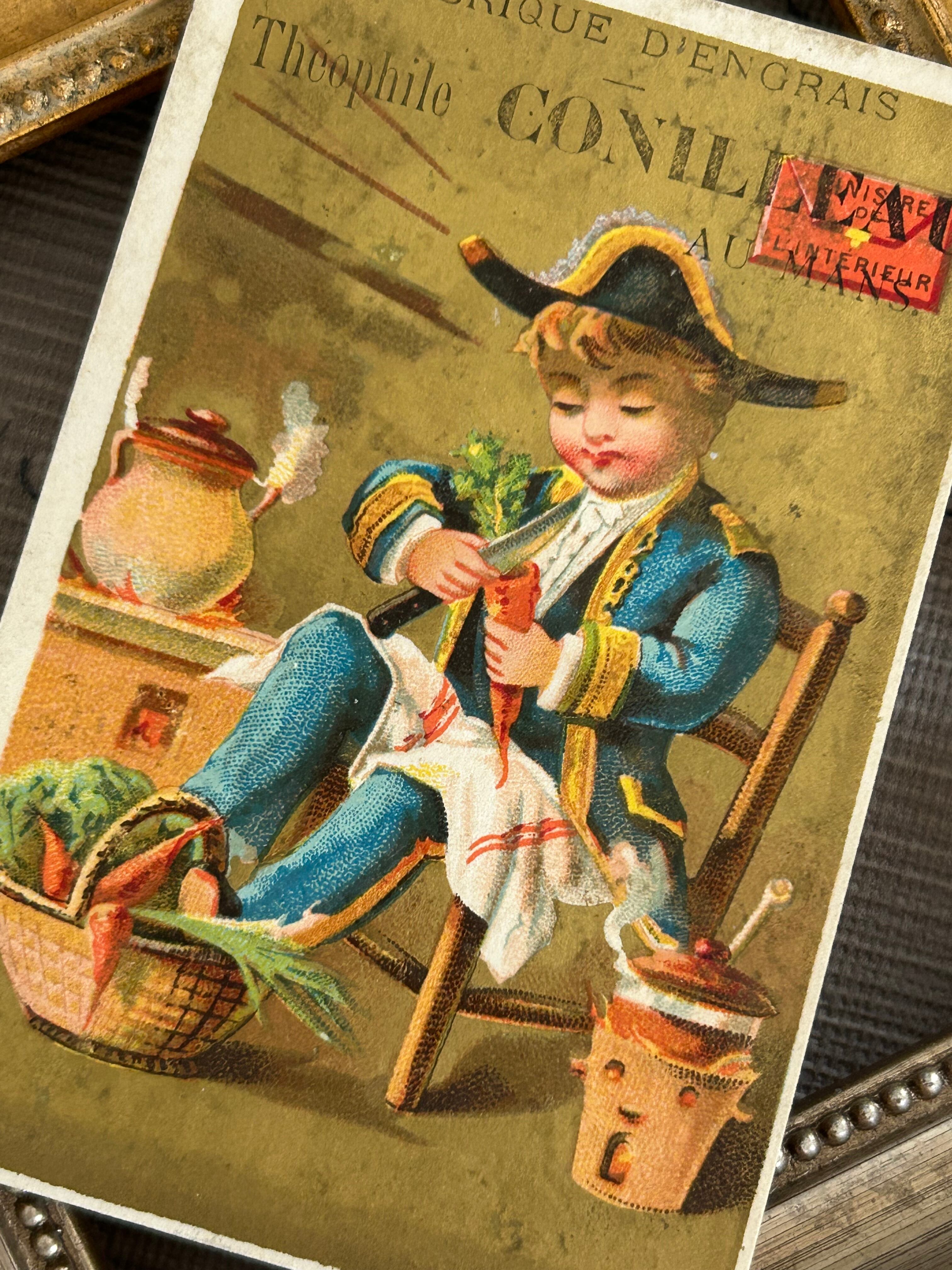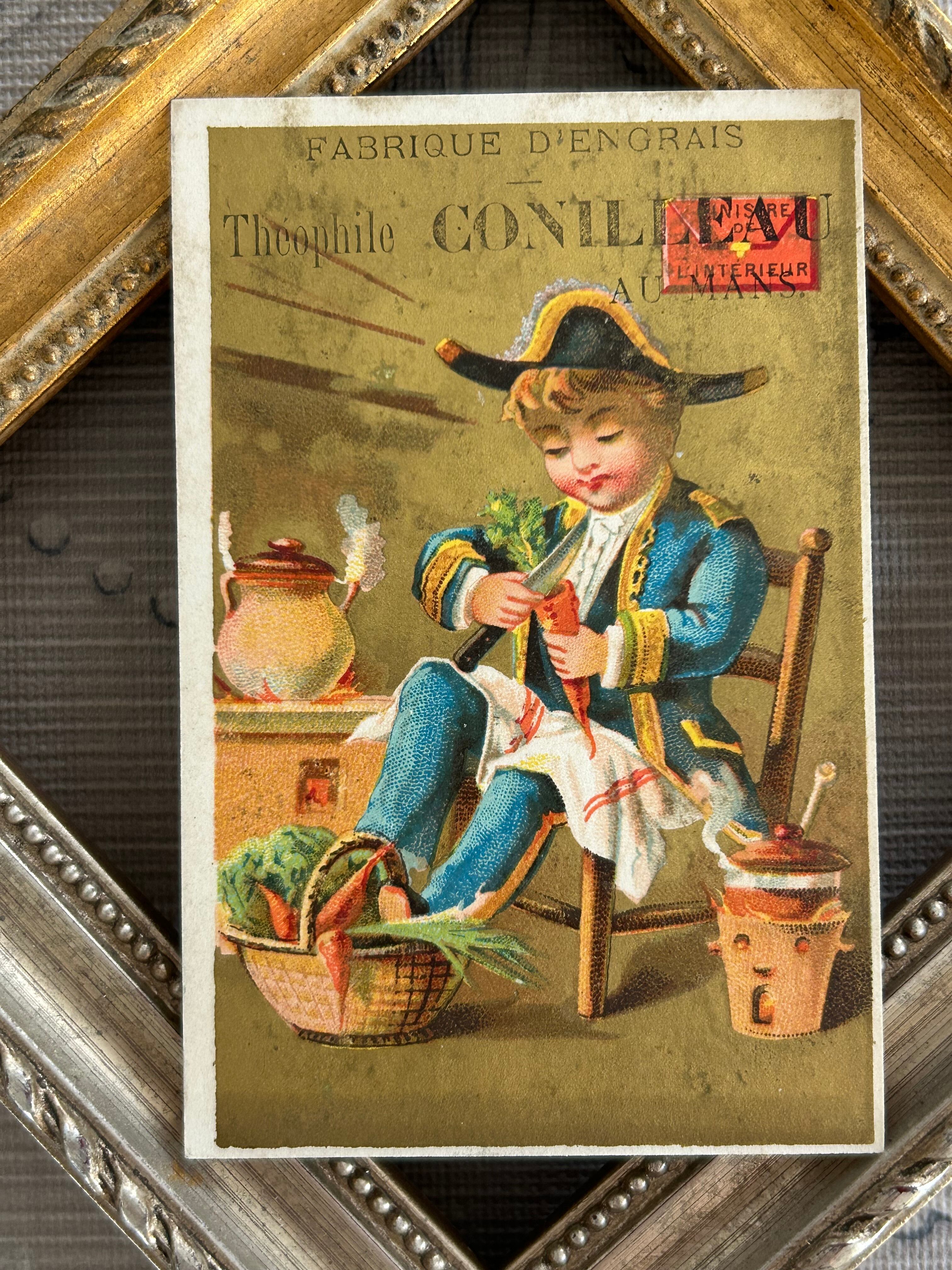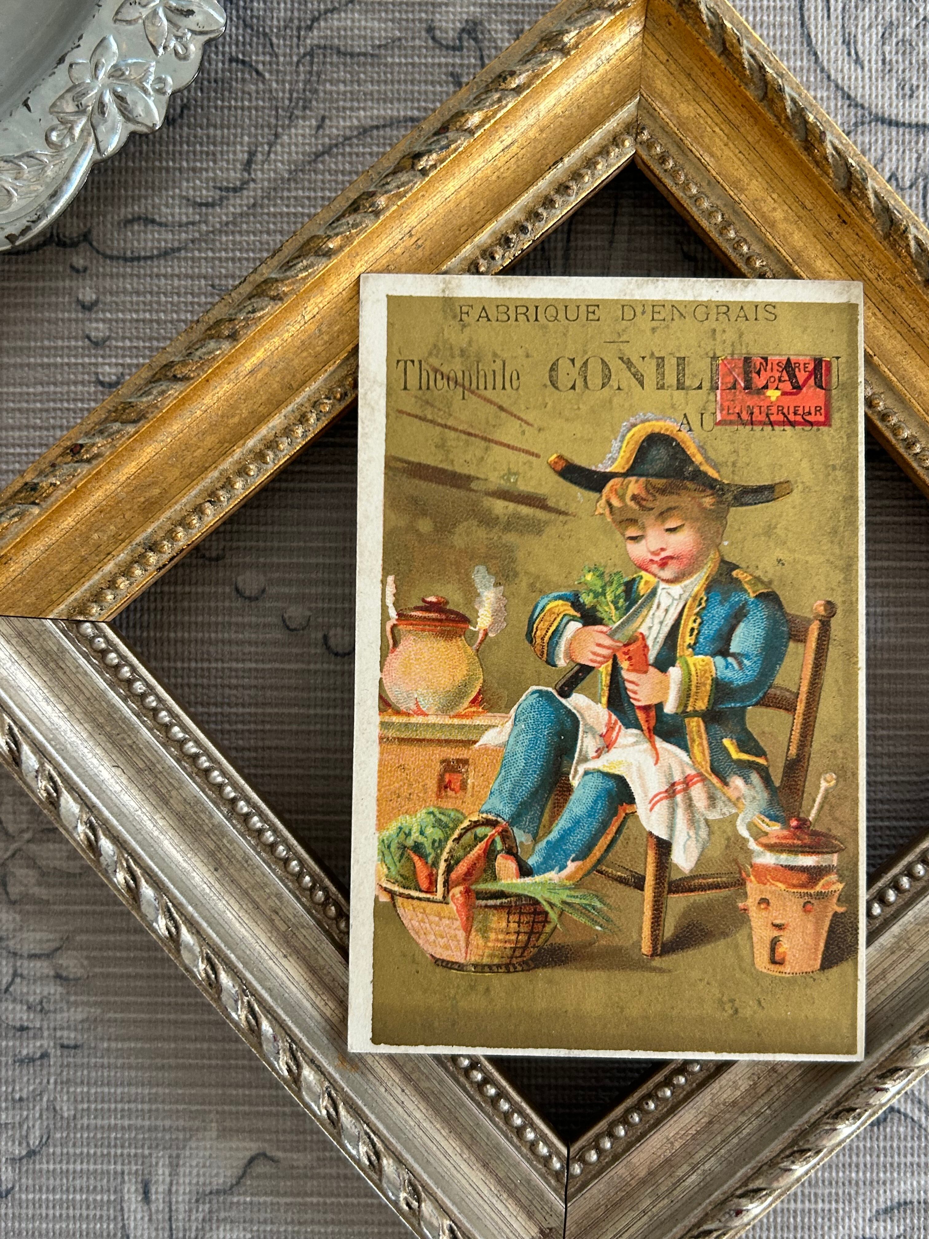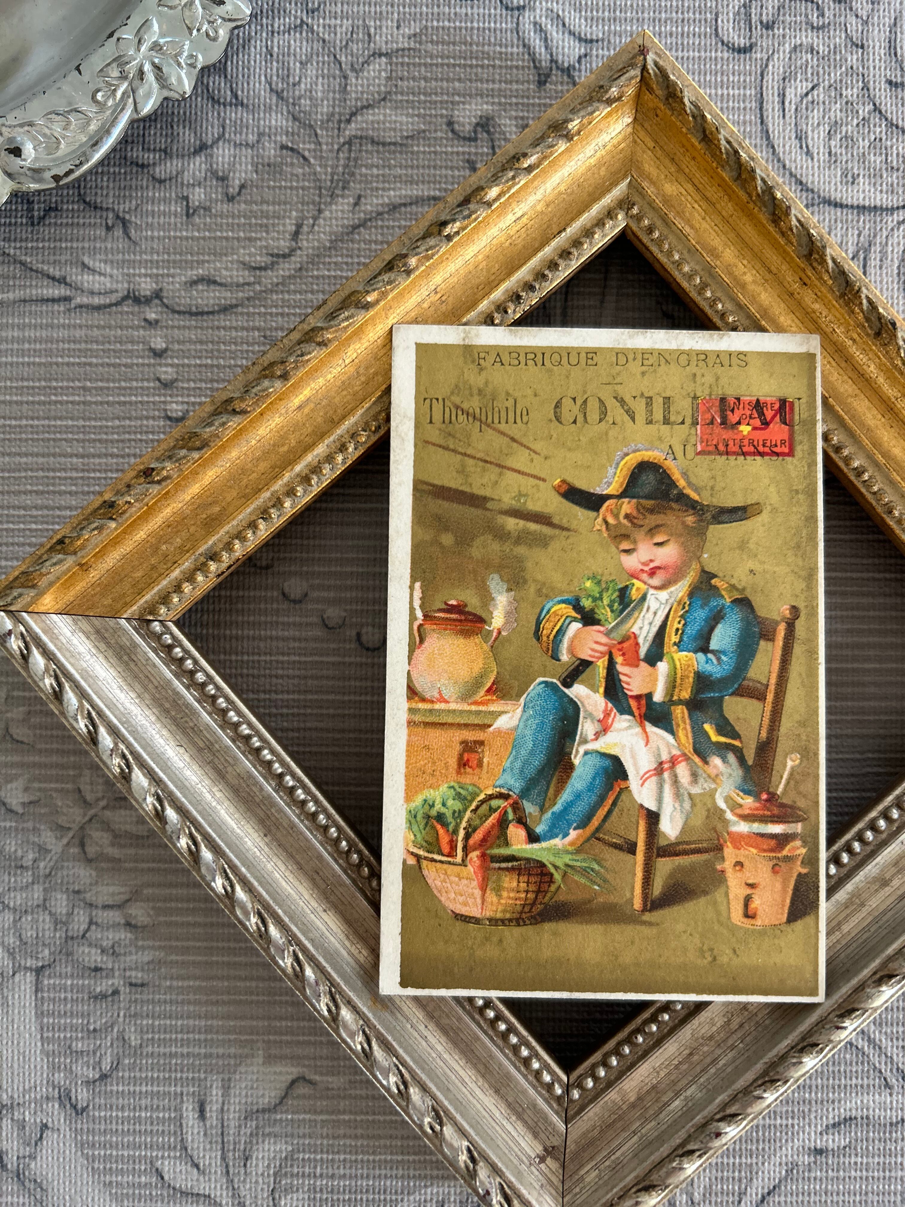 フランスアンティーク クロモカード Theophile CONILLEAU 額装 インテリア小物 撮影小物 コレクション
