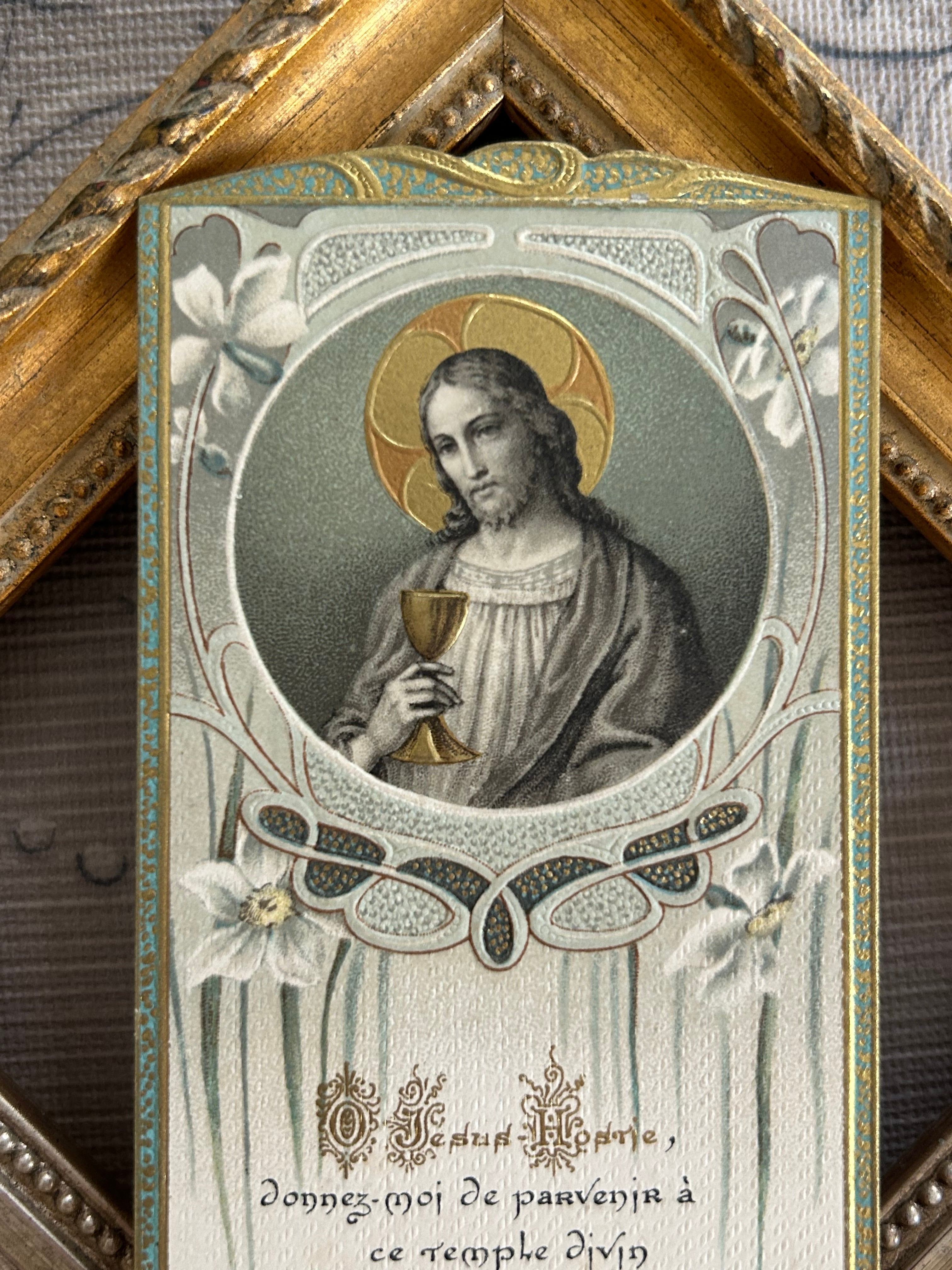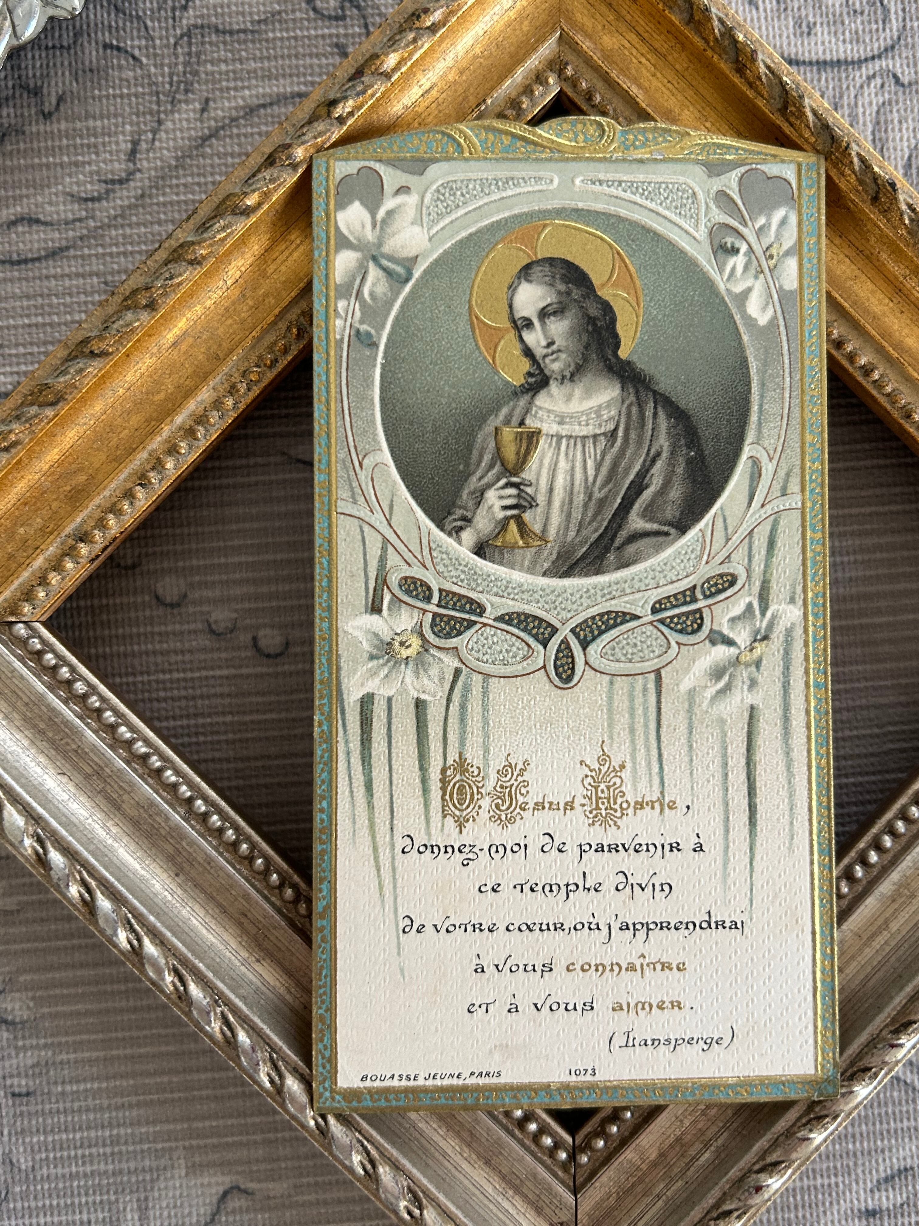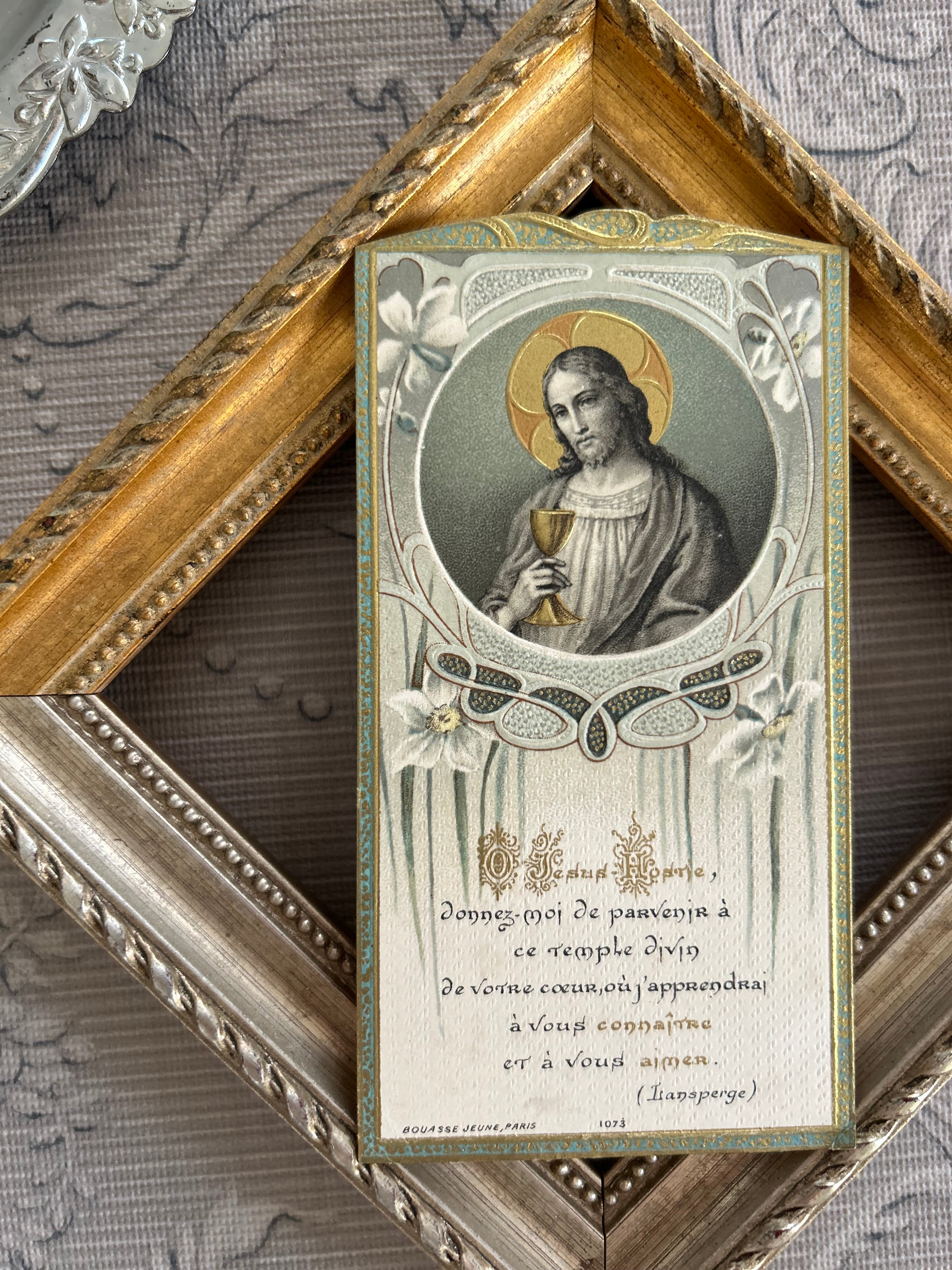 フランスアンティーク Holy Card ホーリーカード 聖杯 キリスト 1908年 額装 撮影小物 インテリア コレクション M