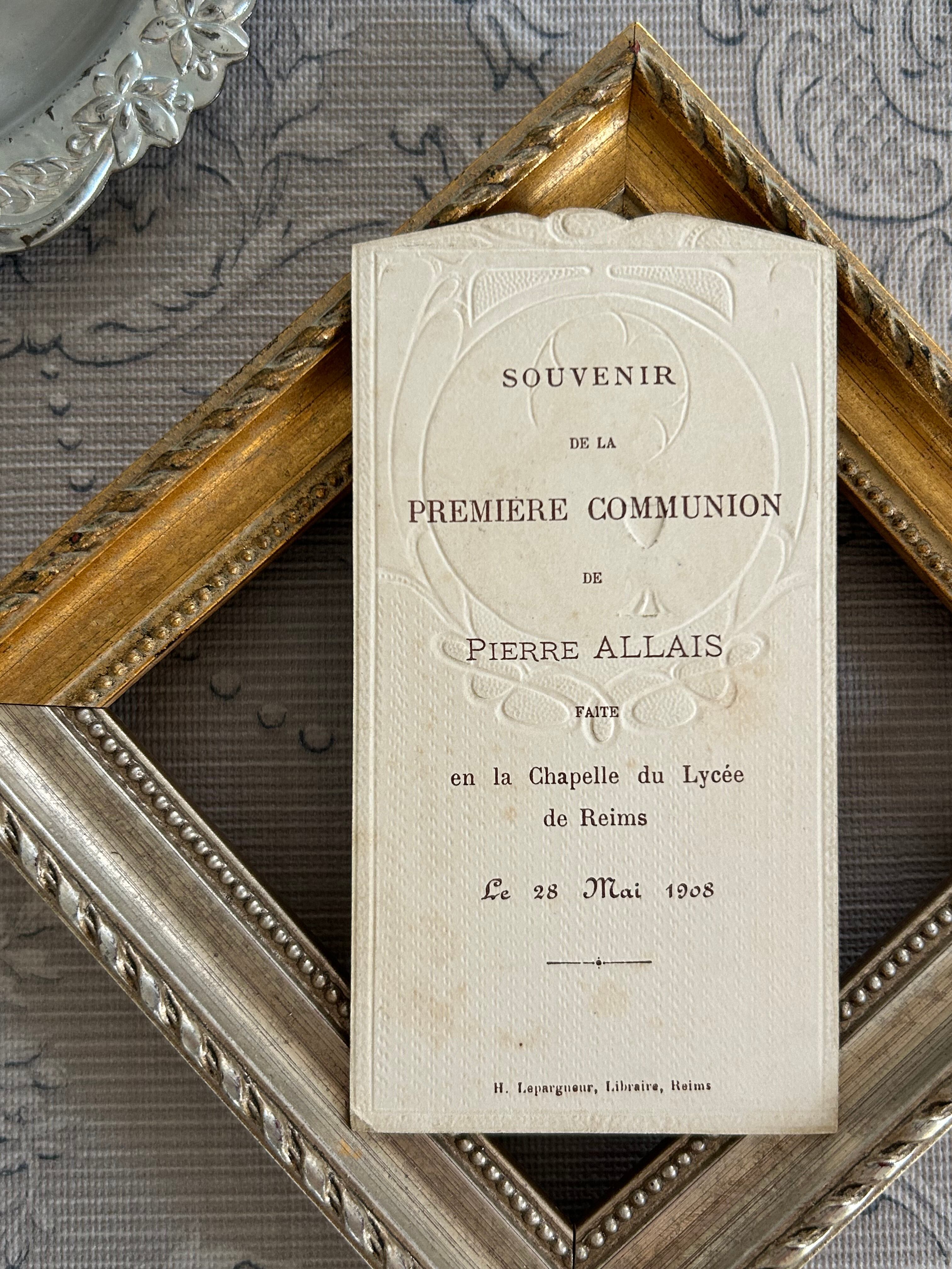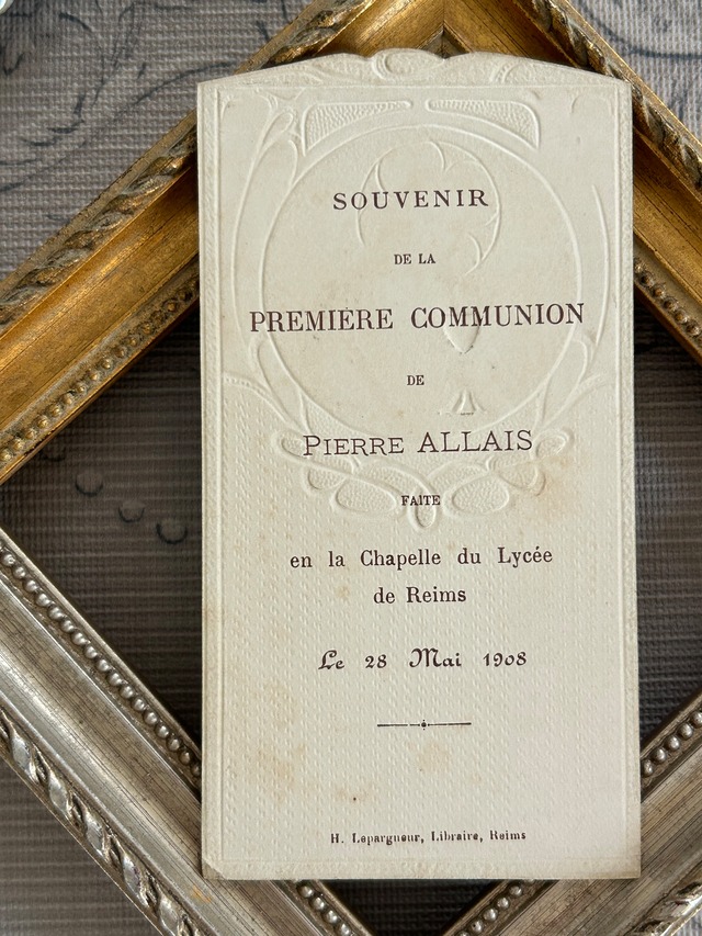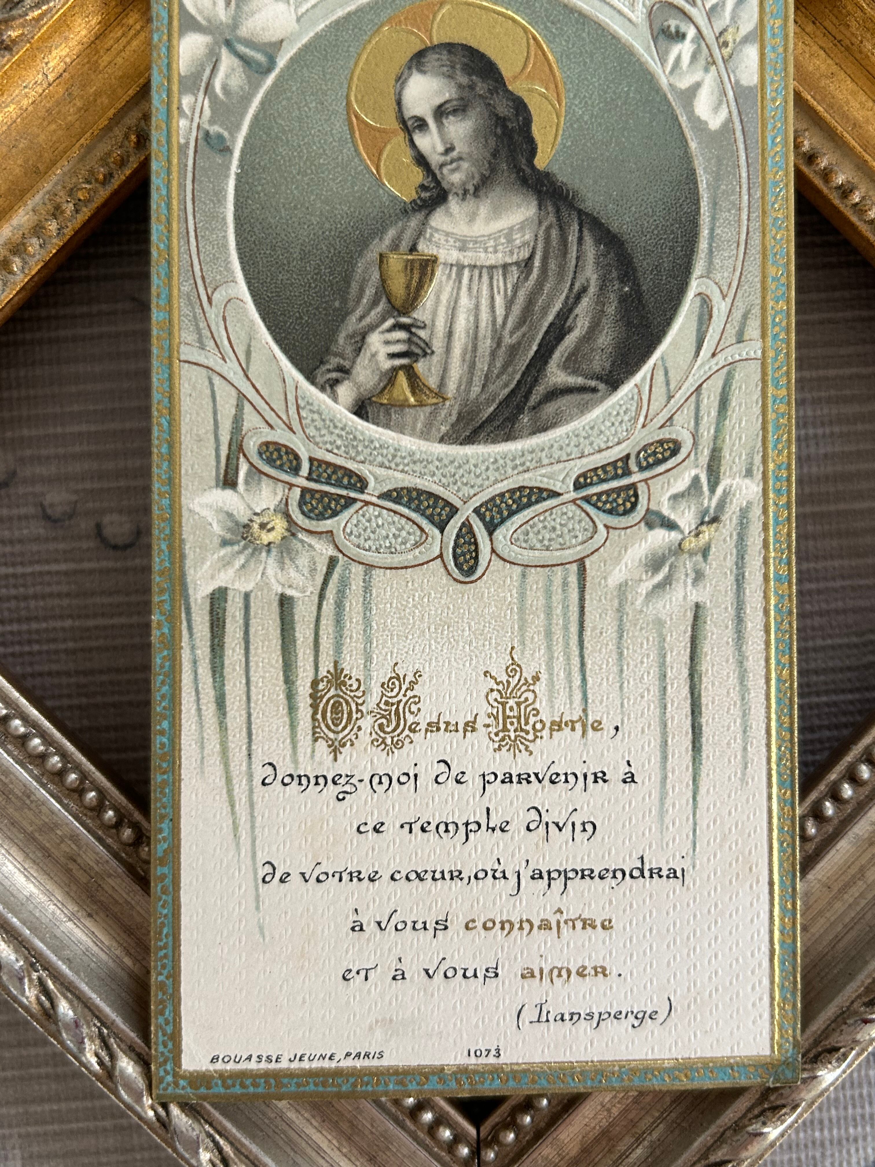 フランスアンティーク Holy Card ホーリーカード 聖杯 キリスト 1908年 額装 撮影小物 インテリア コレクション M