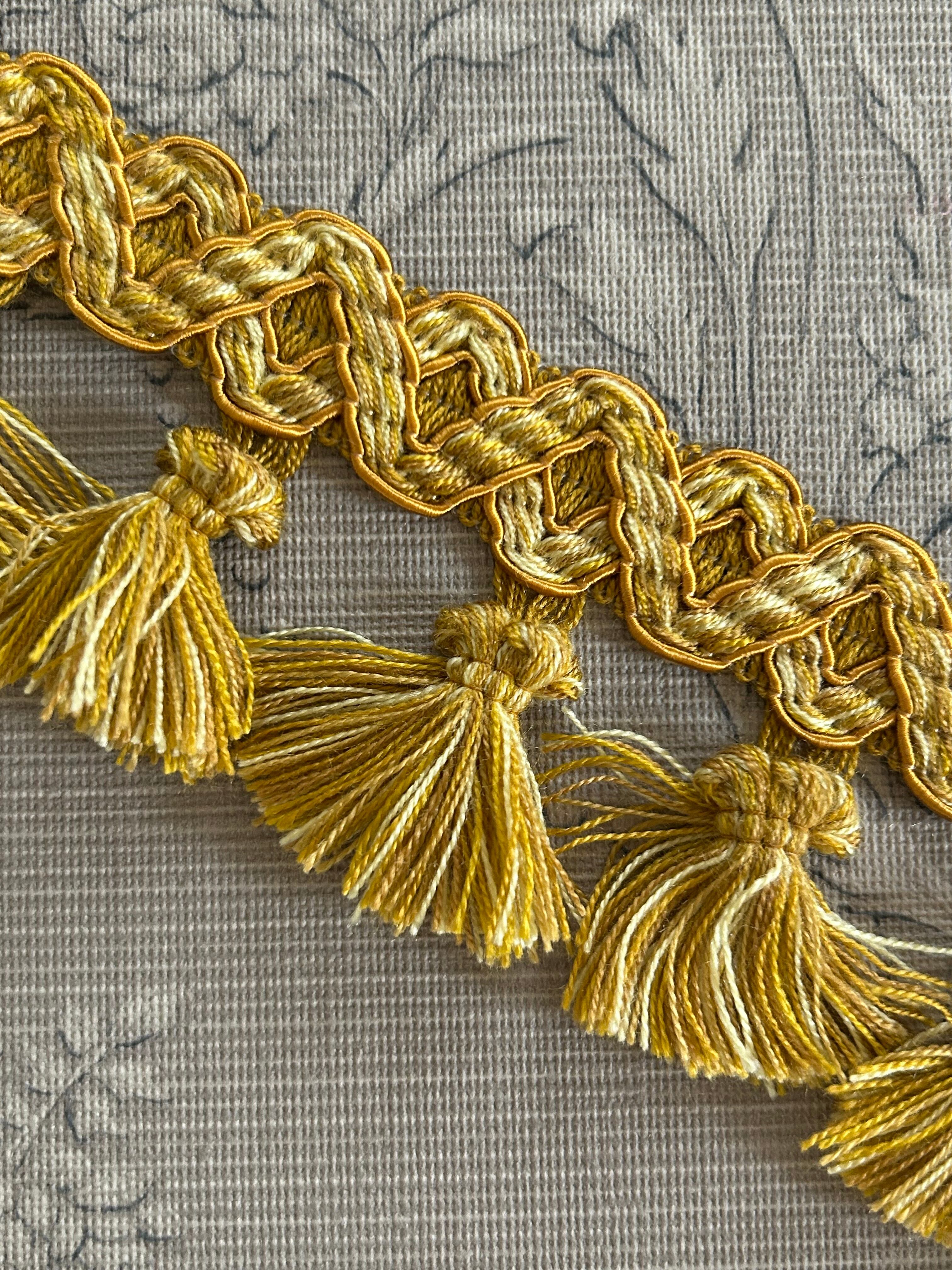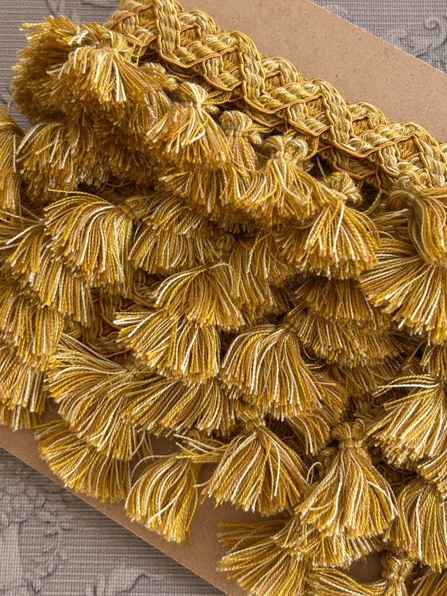 フランス タッセルブレード 50cm/カット マスタードイエロー カルトナージュ スツール デコレーション材