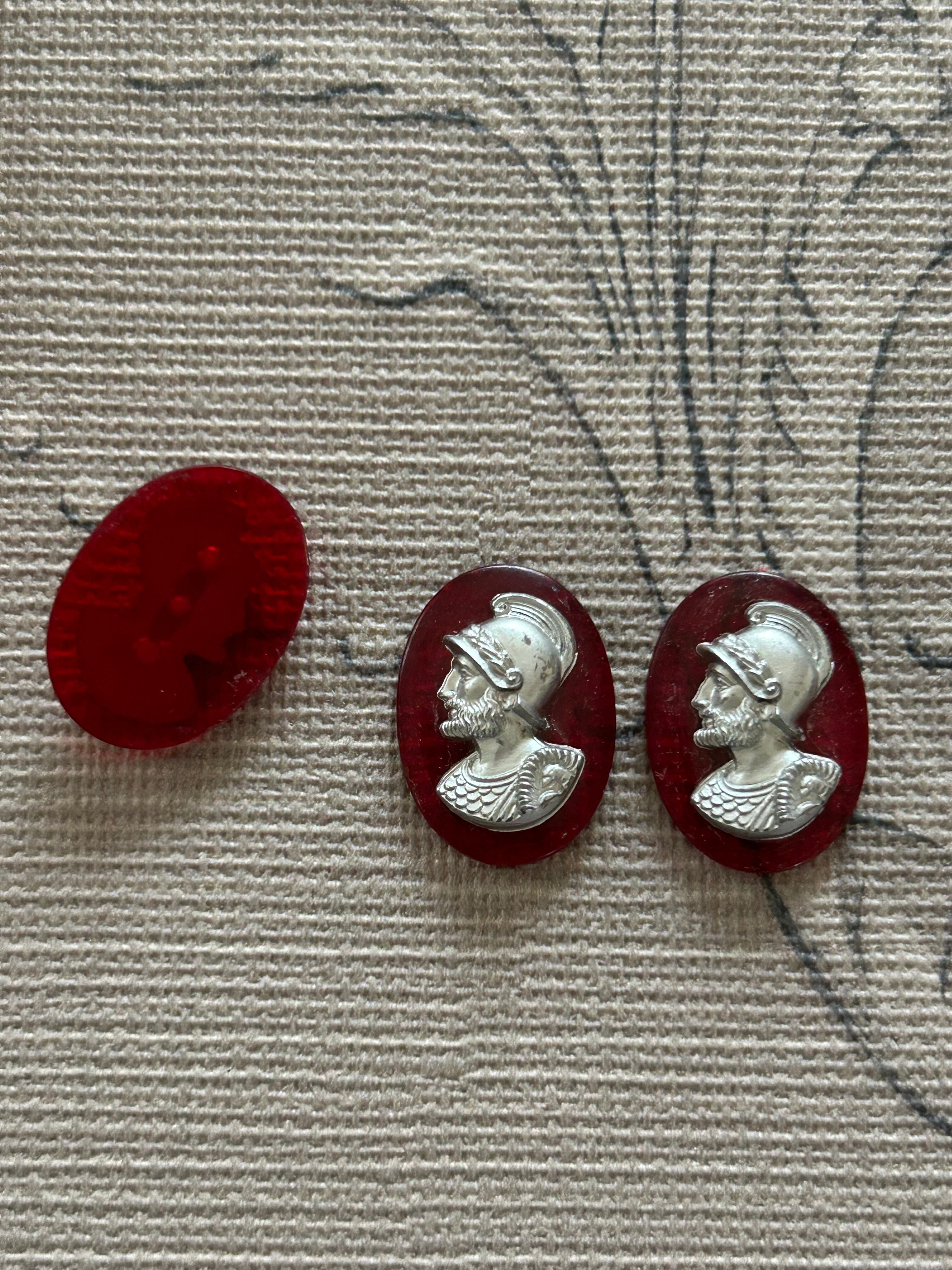 ドイツVintage カメオパーツ 騎士 ナイト レッド×シルバー 22mm カルトナージュ アクセサリーパーツ デコレーション材