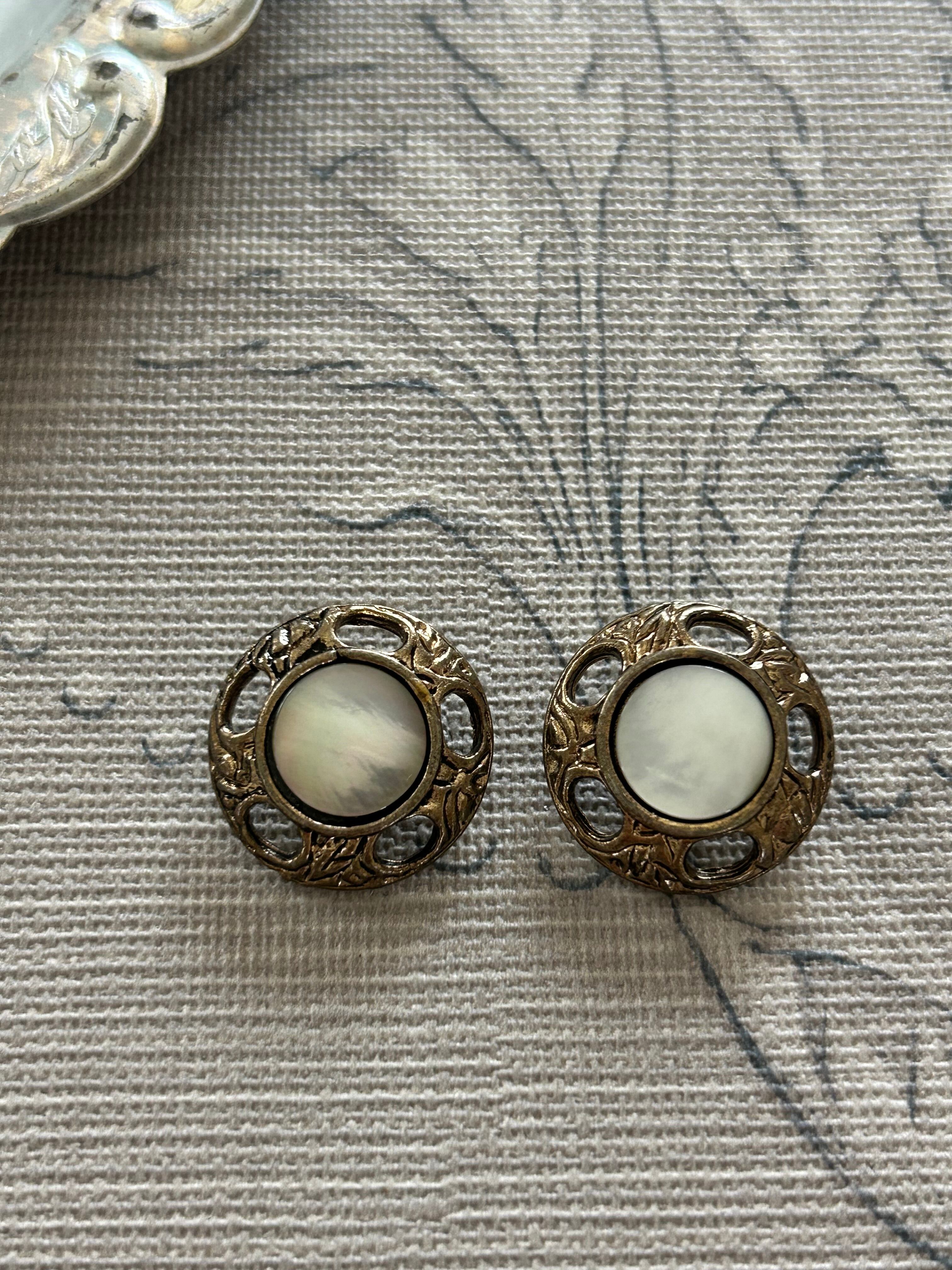 Japanese Vintageボタン シェル×メタル 透かし デッドストック 22mm アクセサリーパーツ デコレーション材 カルトナージュ