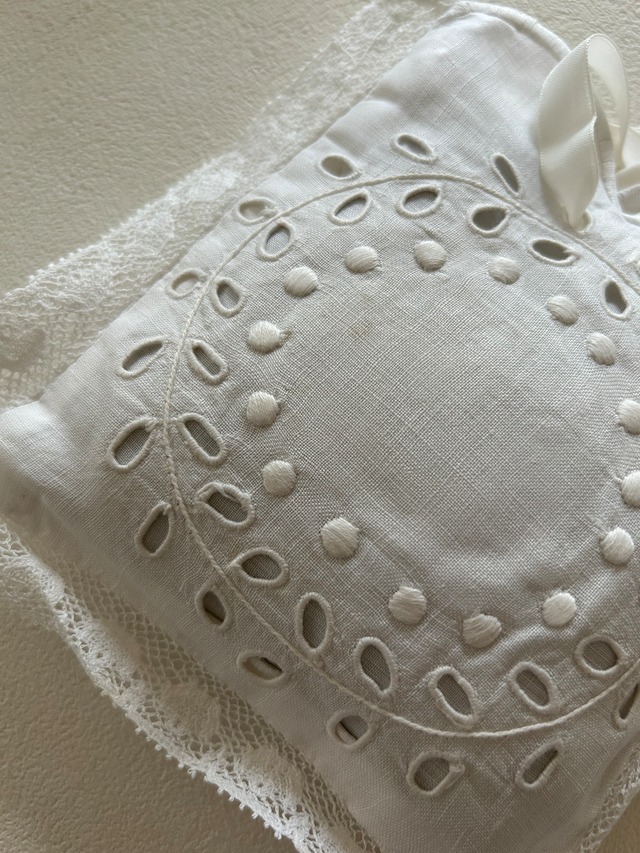 英国Vintage ラベンダーのサシェバッグ サシェ ホワイト刺繍 リース カットワーク刺繍 インテリア 撮影小物