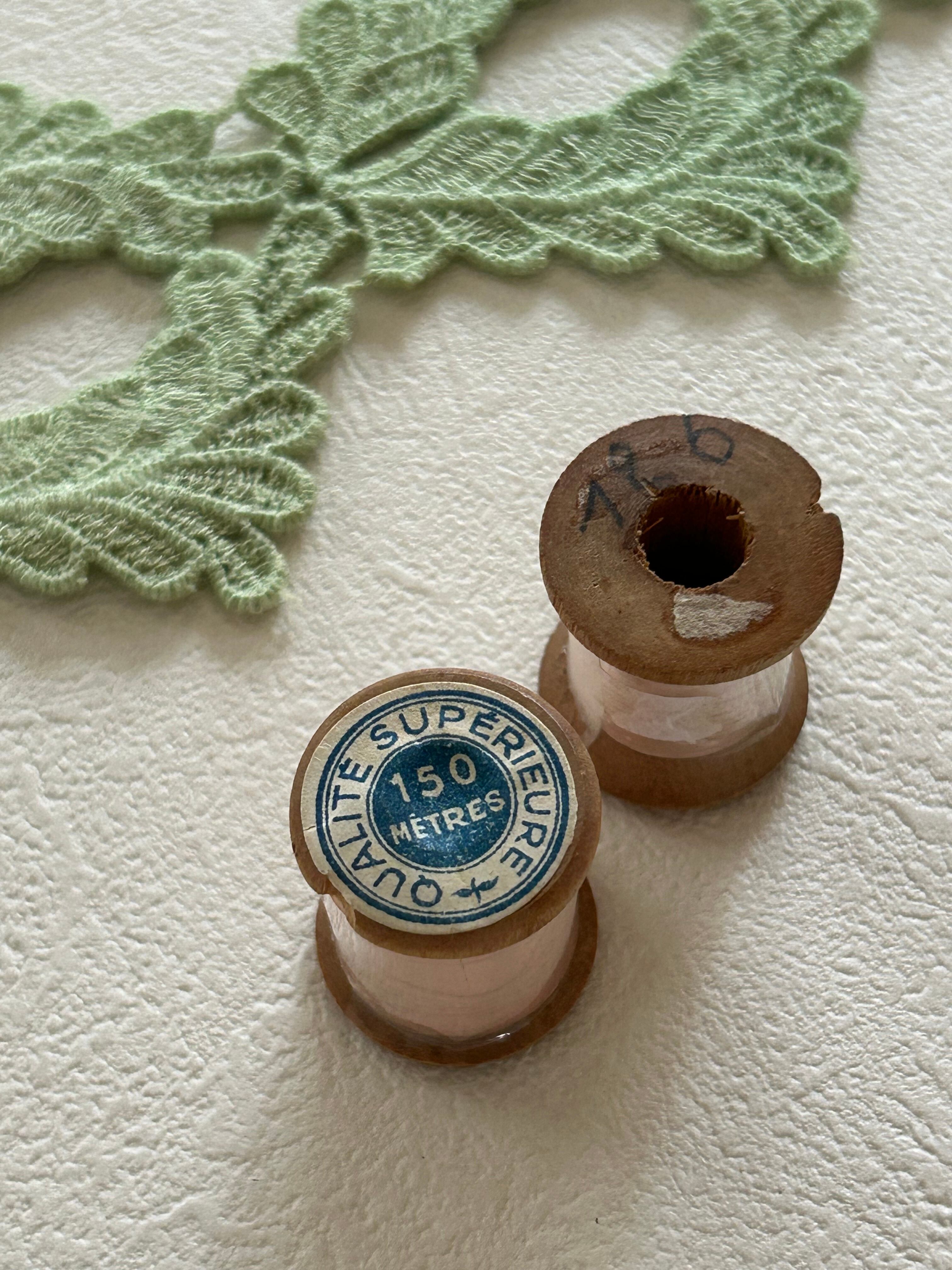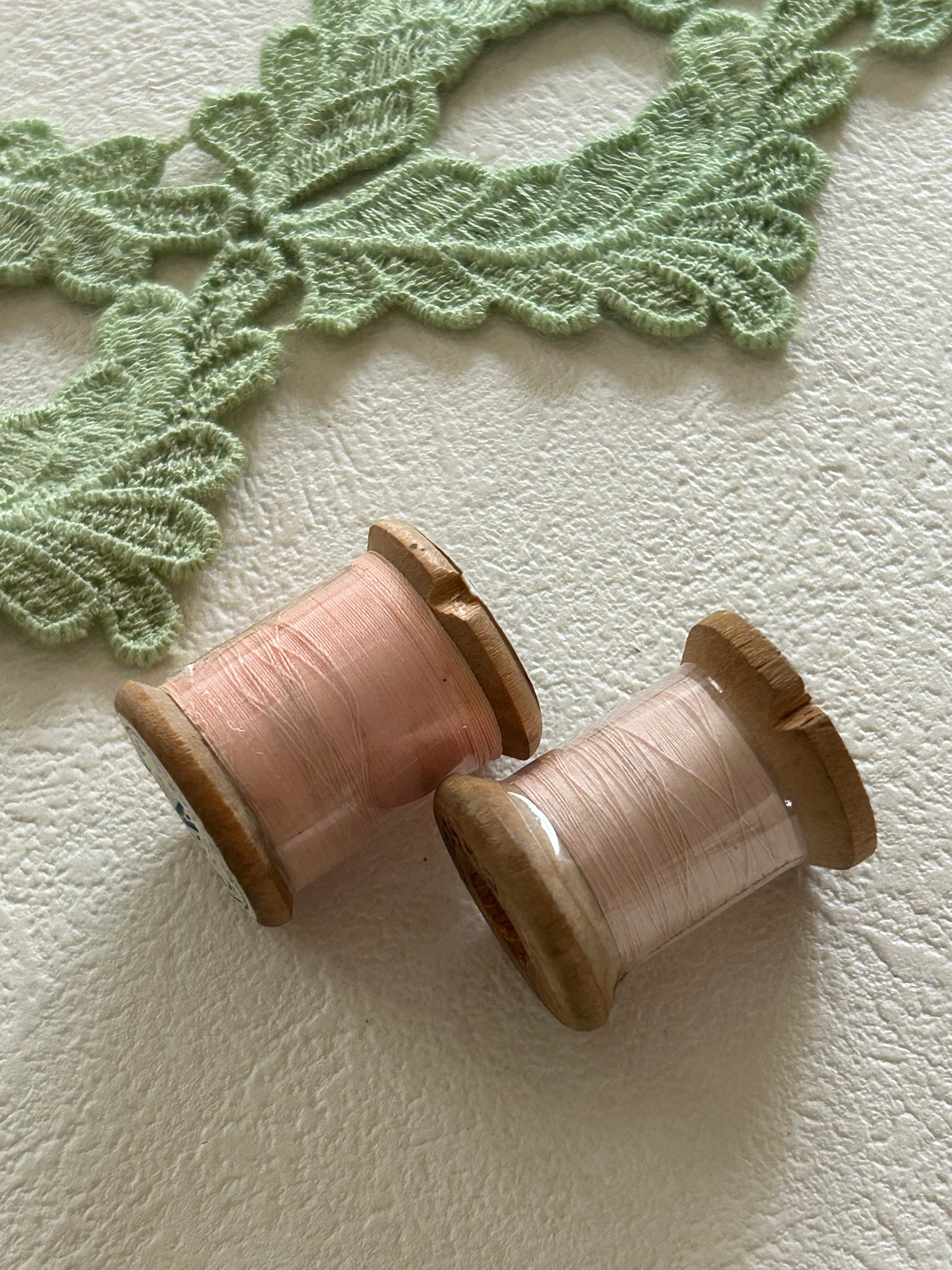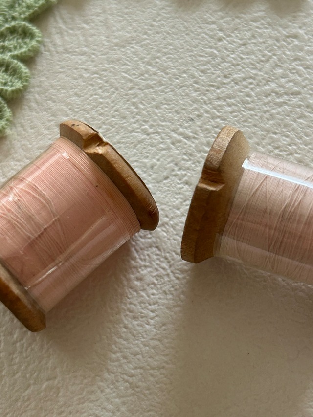 フランスアンティーク 小さな木製糸巻き 2個セット ピンク インテリア小物 オブジェ 撮影小物
