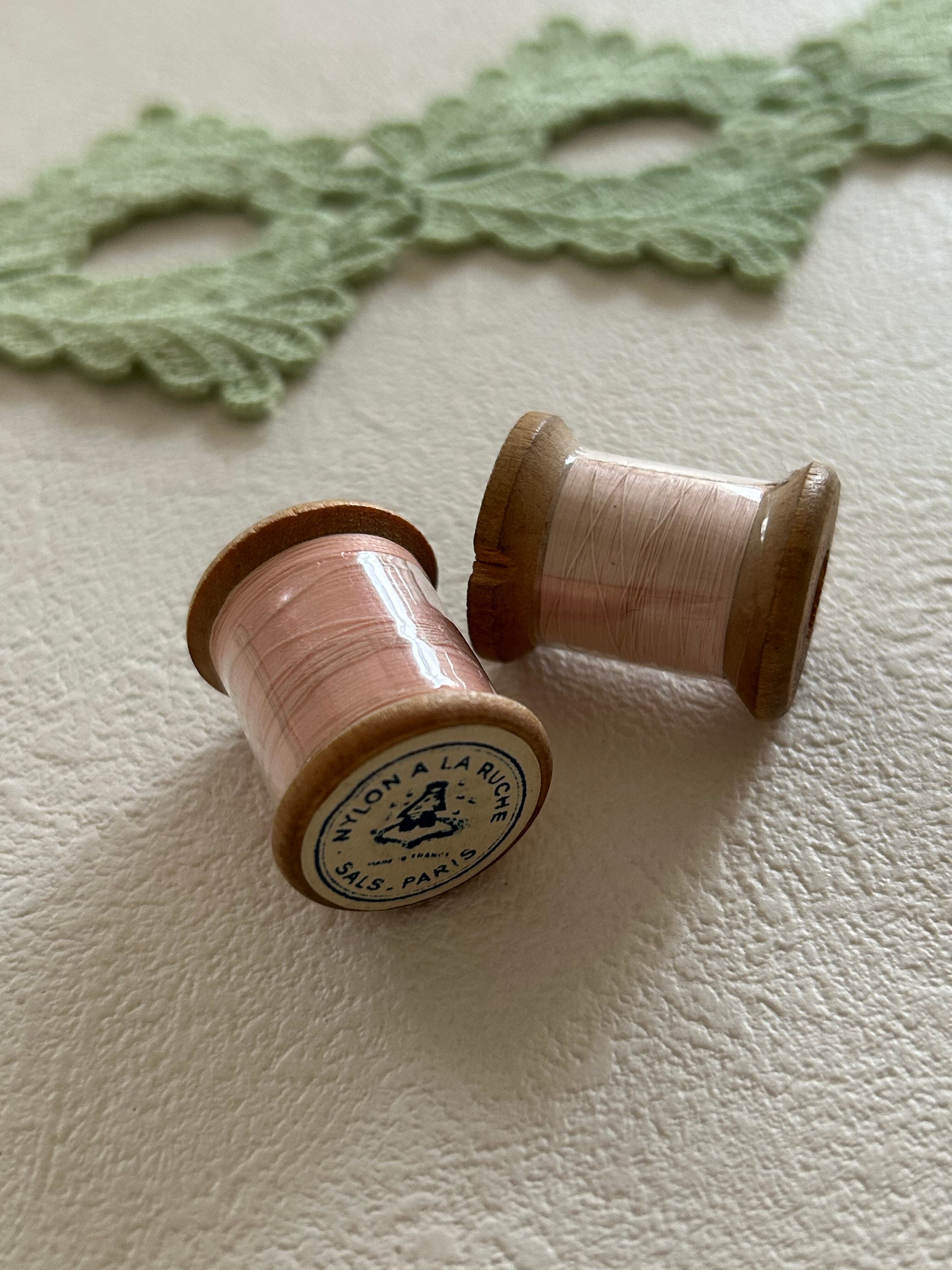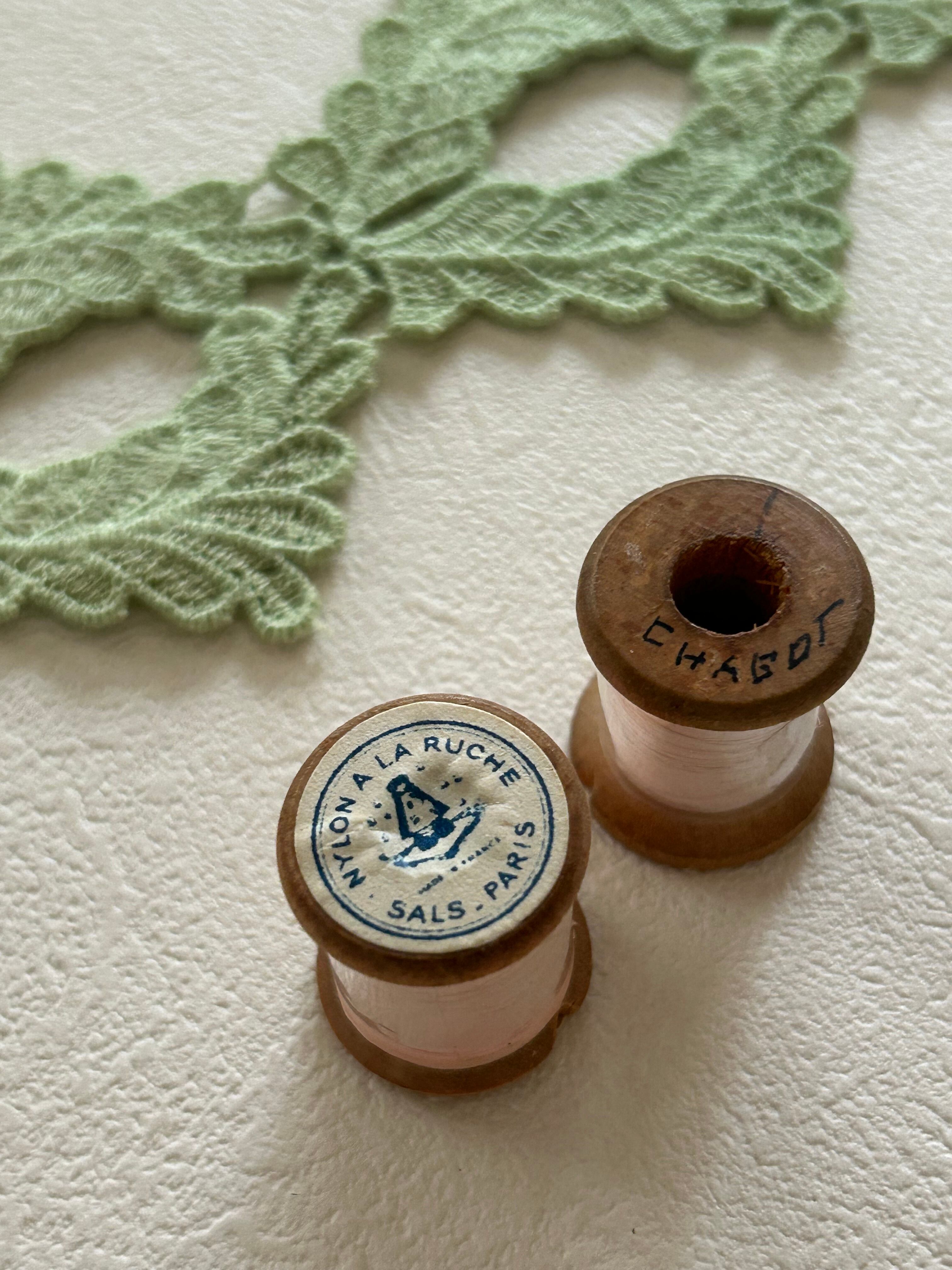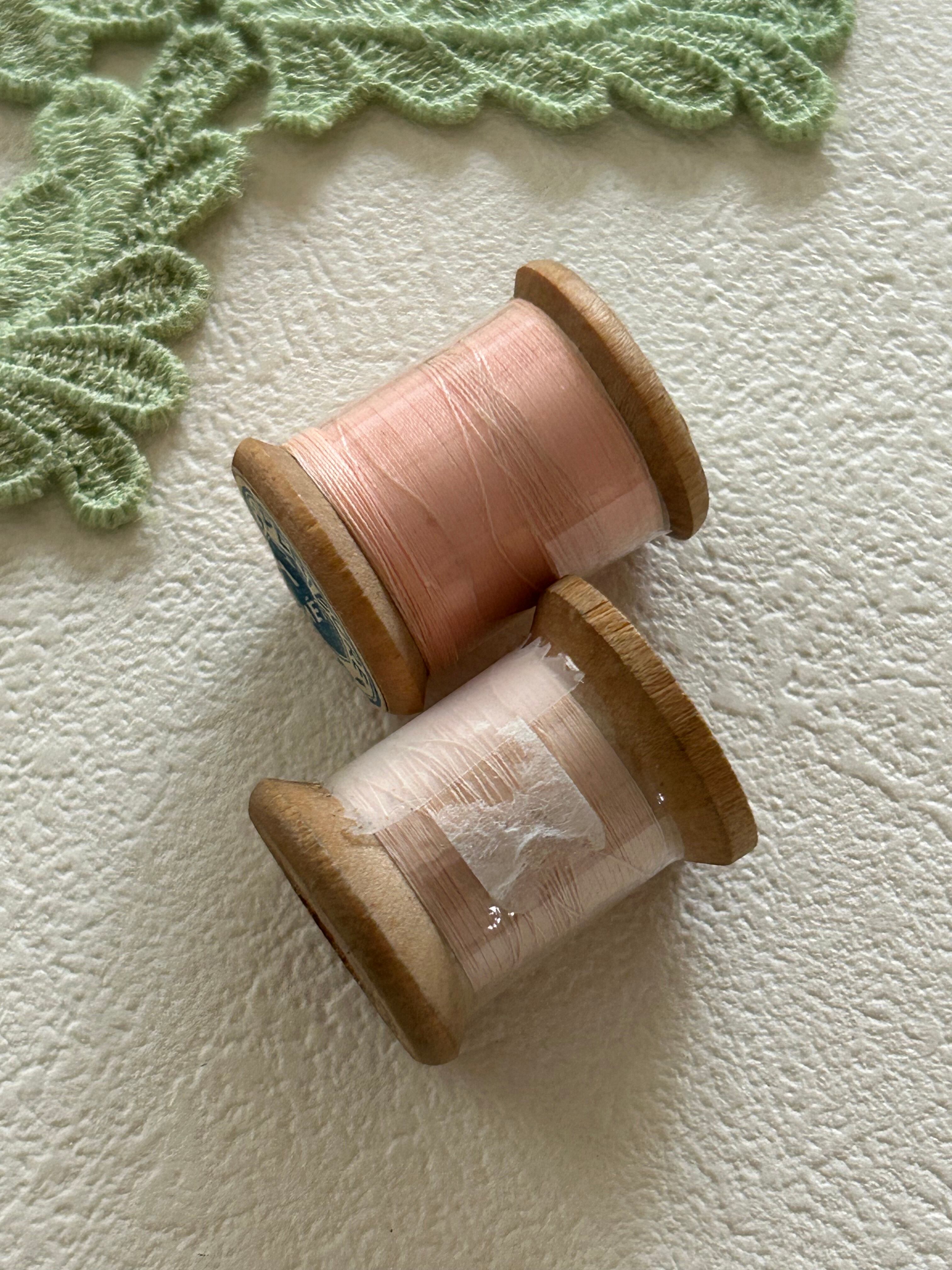フランスアンティーク 小さな木製糸巻き 2個セット ピンク インテリア小物 オブジェ 撮影小物