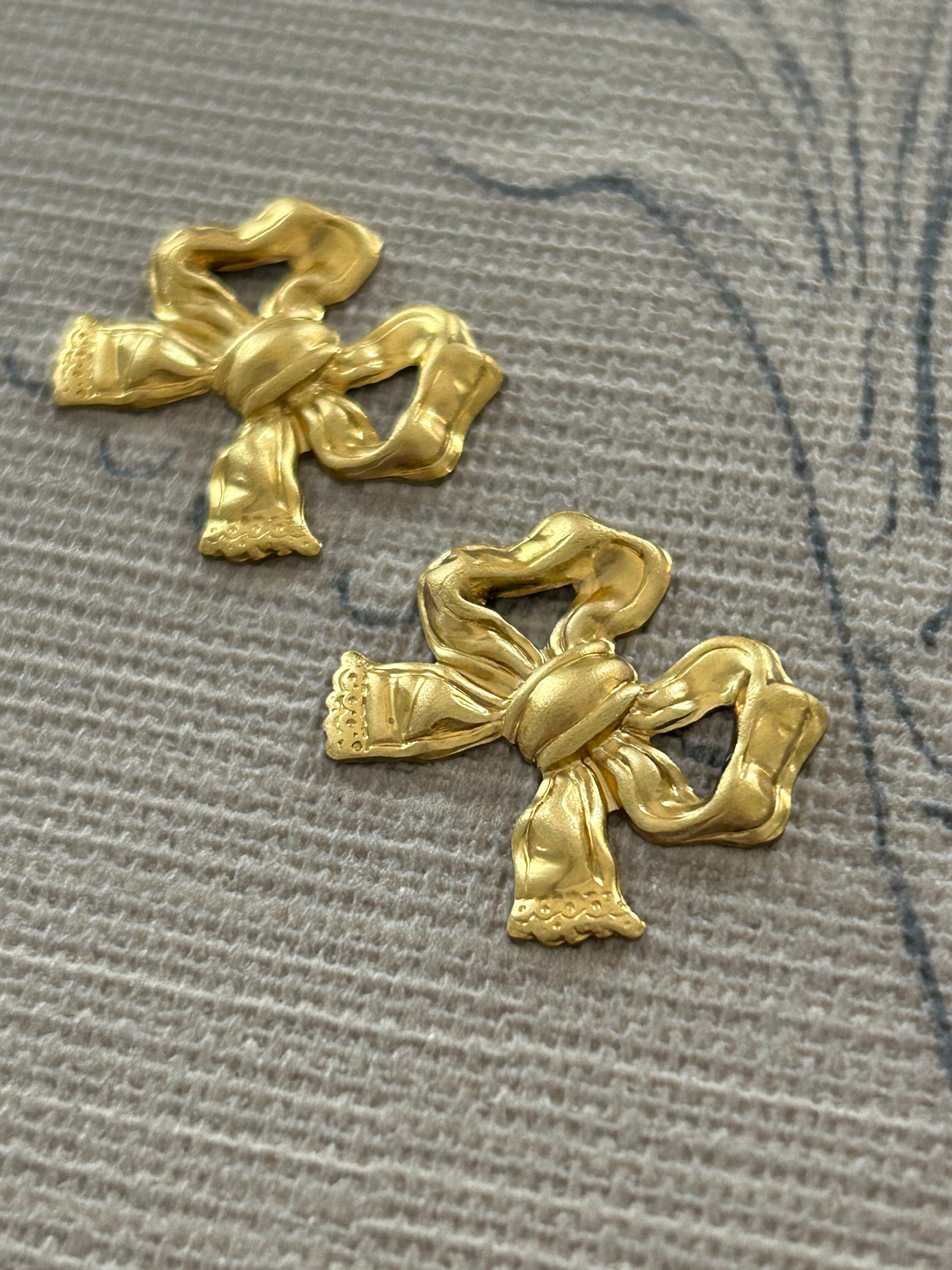 USA ブラス製パーツ Ruban リボン型パーツ スタンピングパーツ アクセサリーパーツ ゴールド デコレーション材