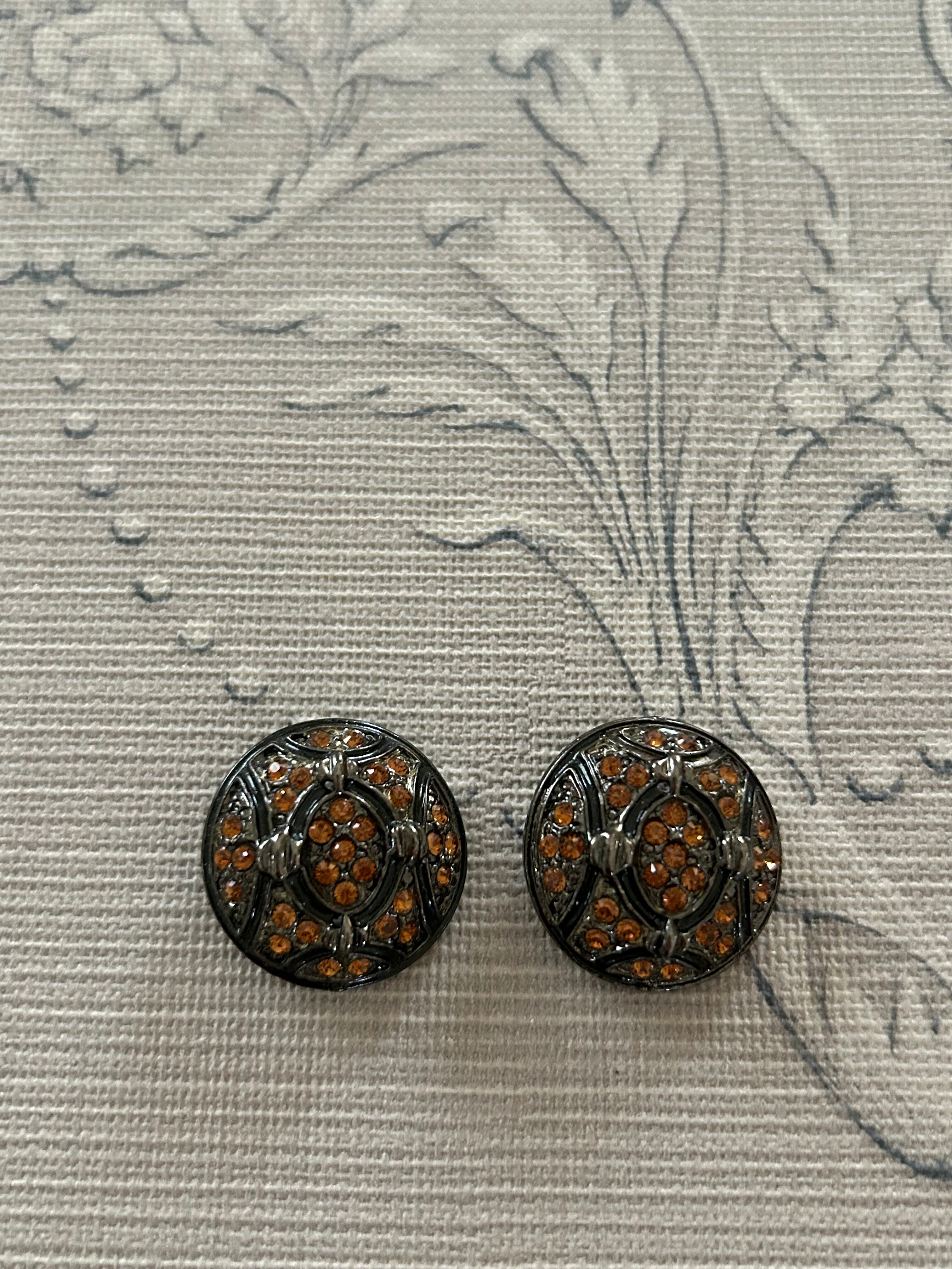 深みのあるオレンジカラーのストーンが一面に敷き詰められたクラシカルでゴージャスなデザインボタンです。