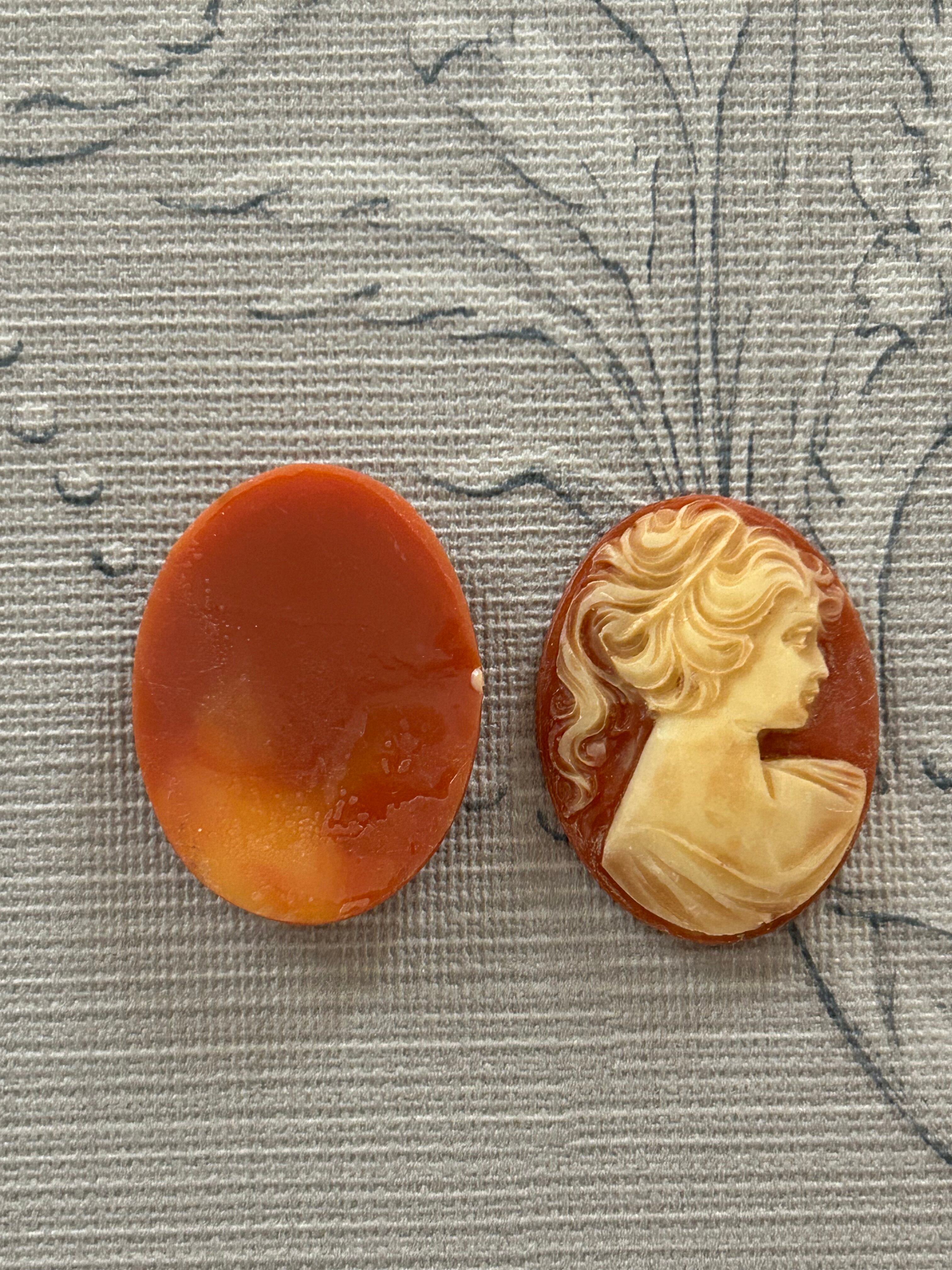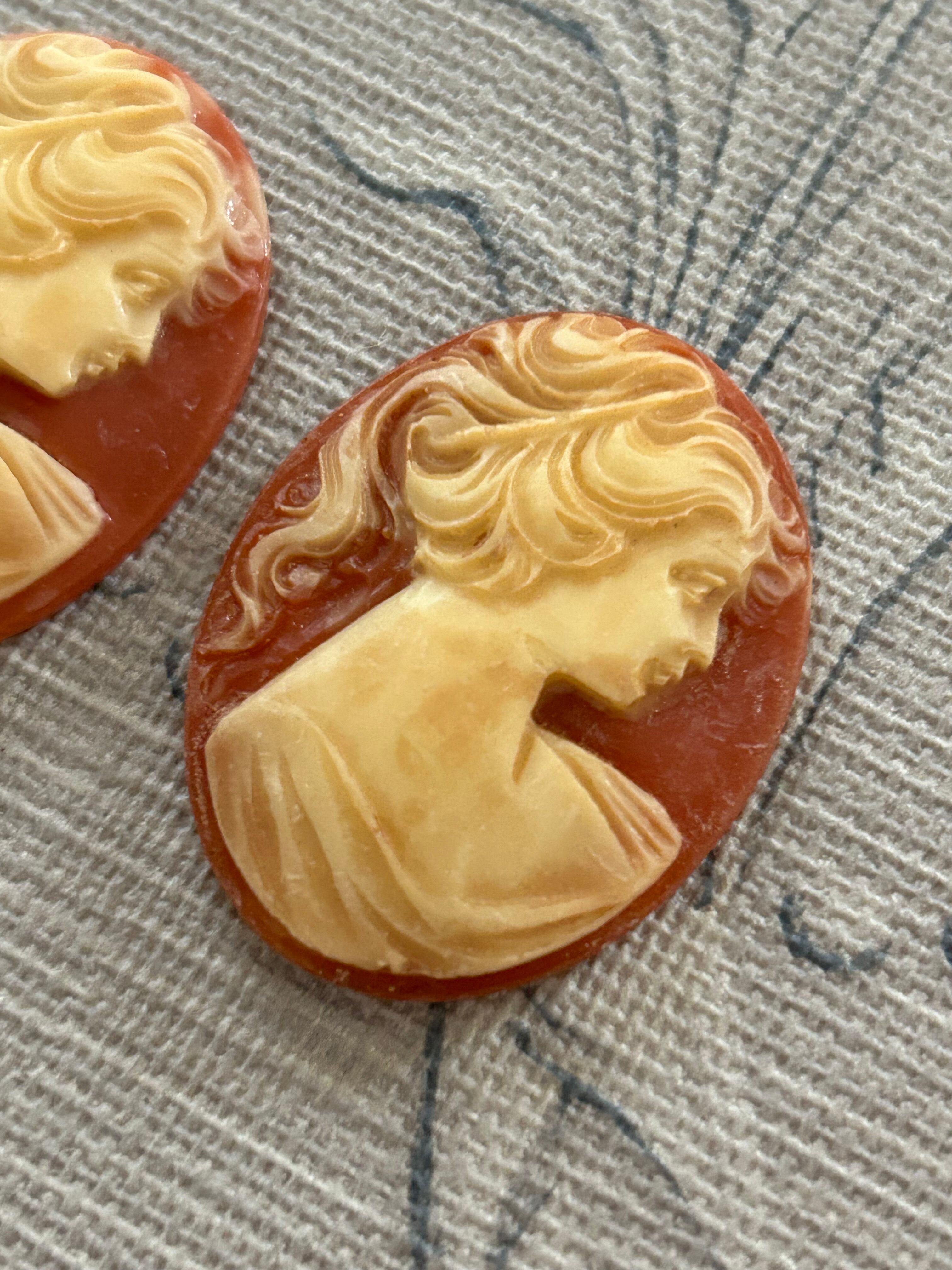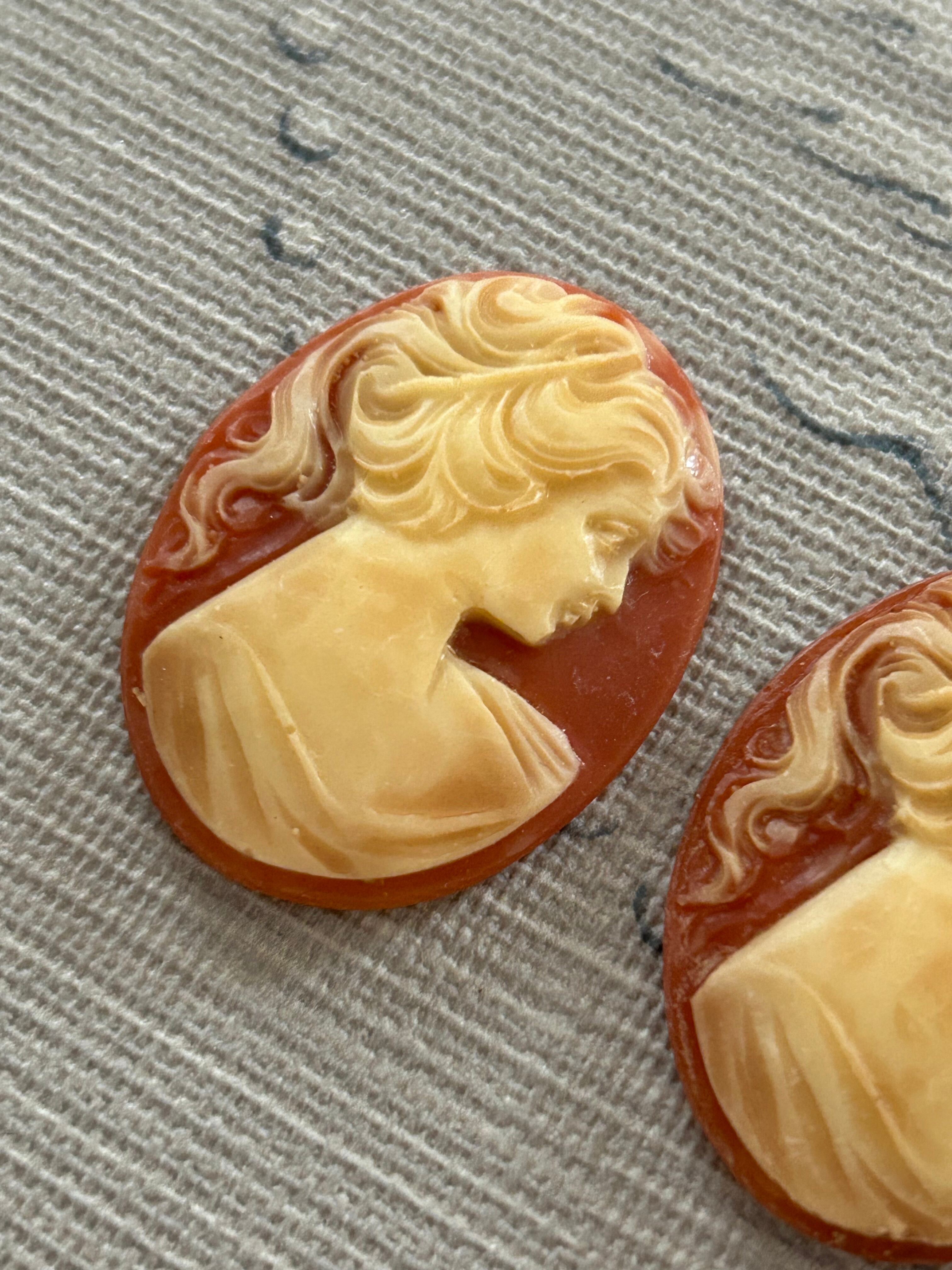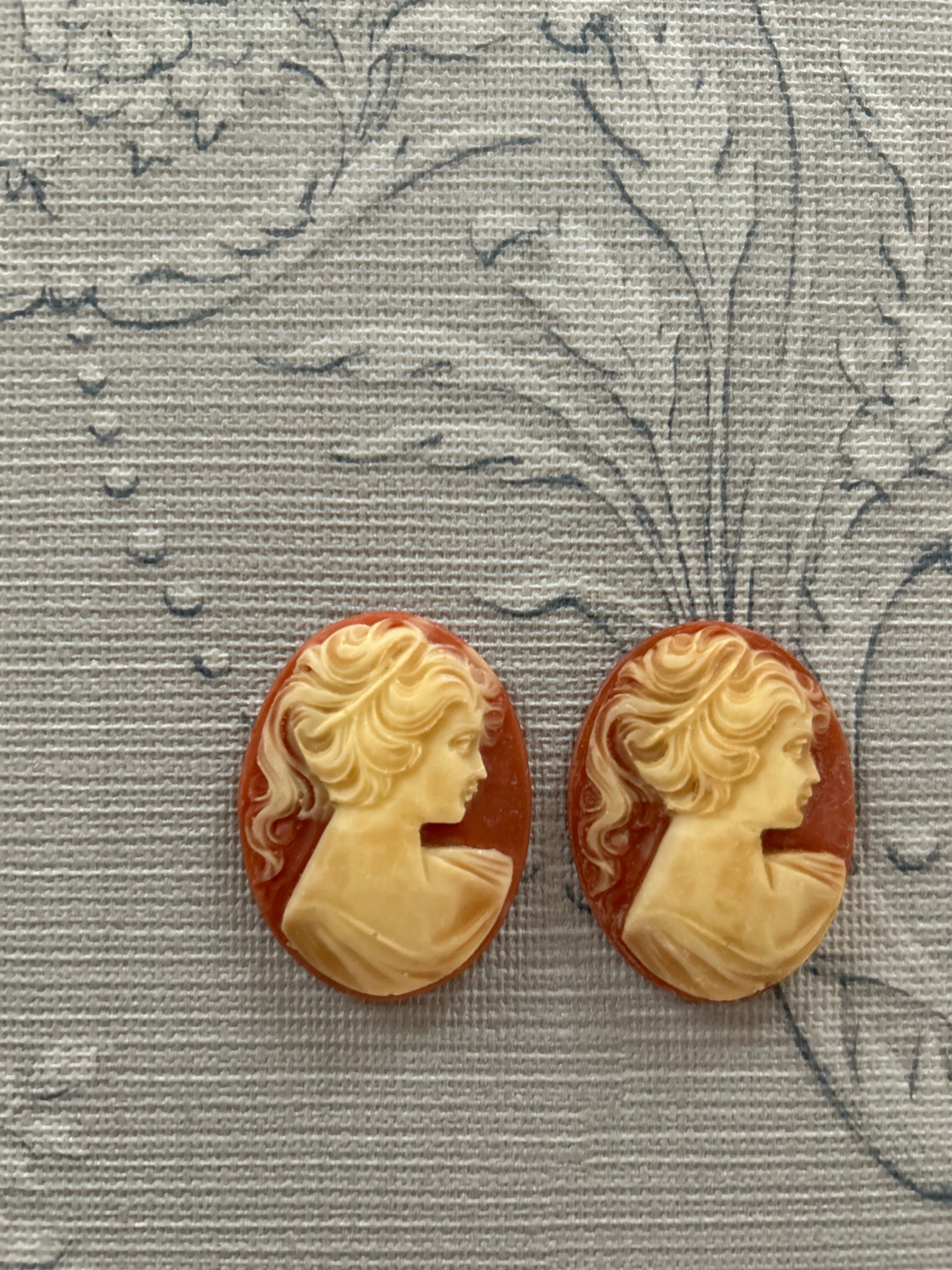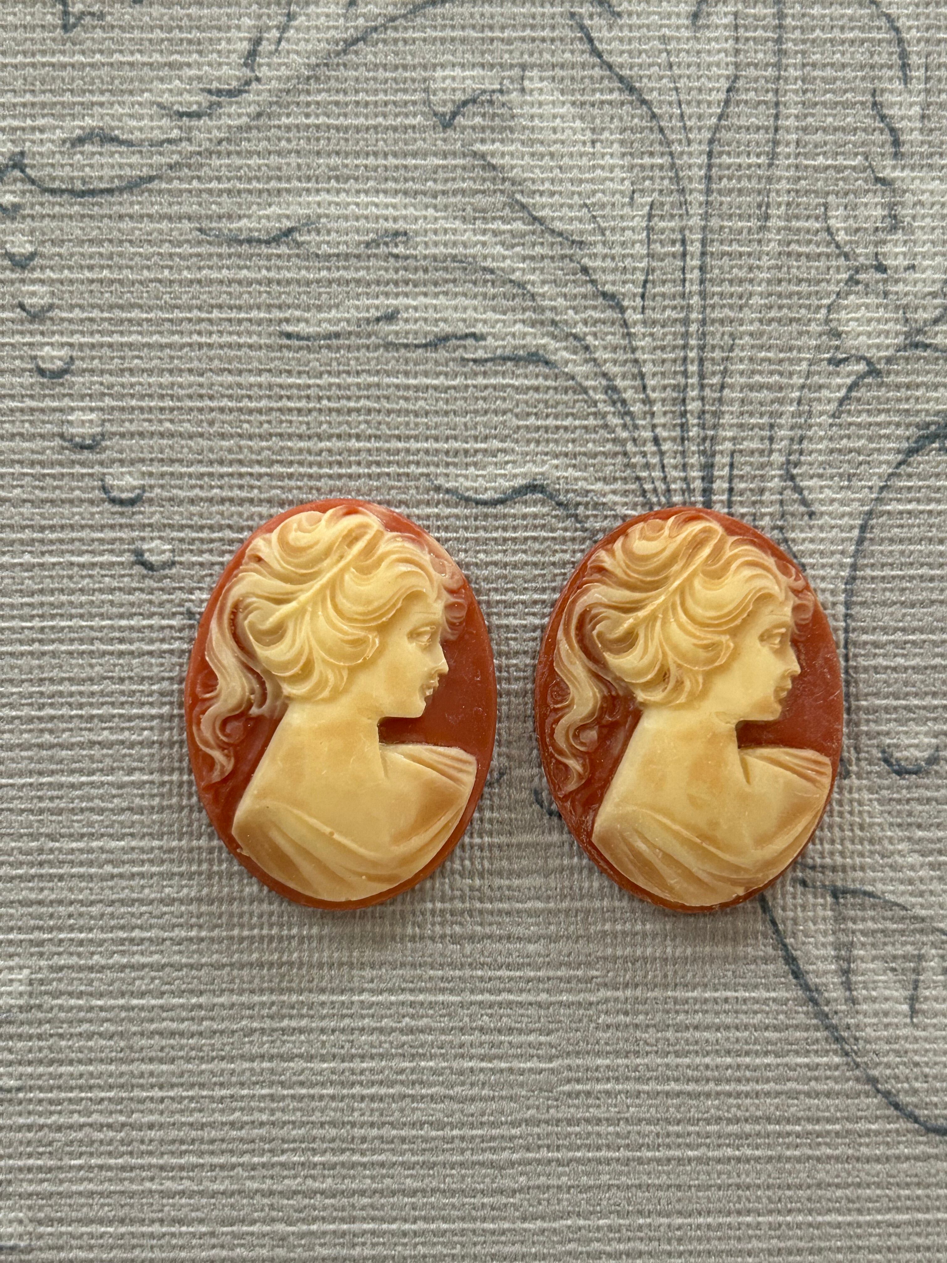 Vintageカメオパーツ 朱色のカメオ 女性の横顔 39mm カルトナージュ アクセサリーパーツ デコレーション材