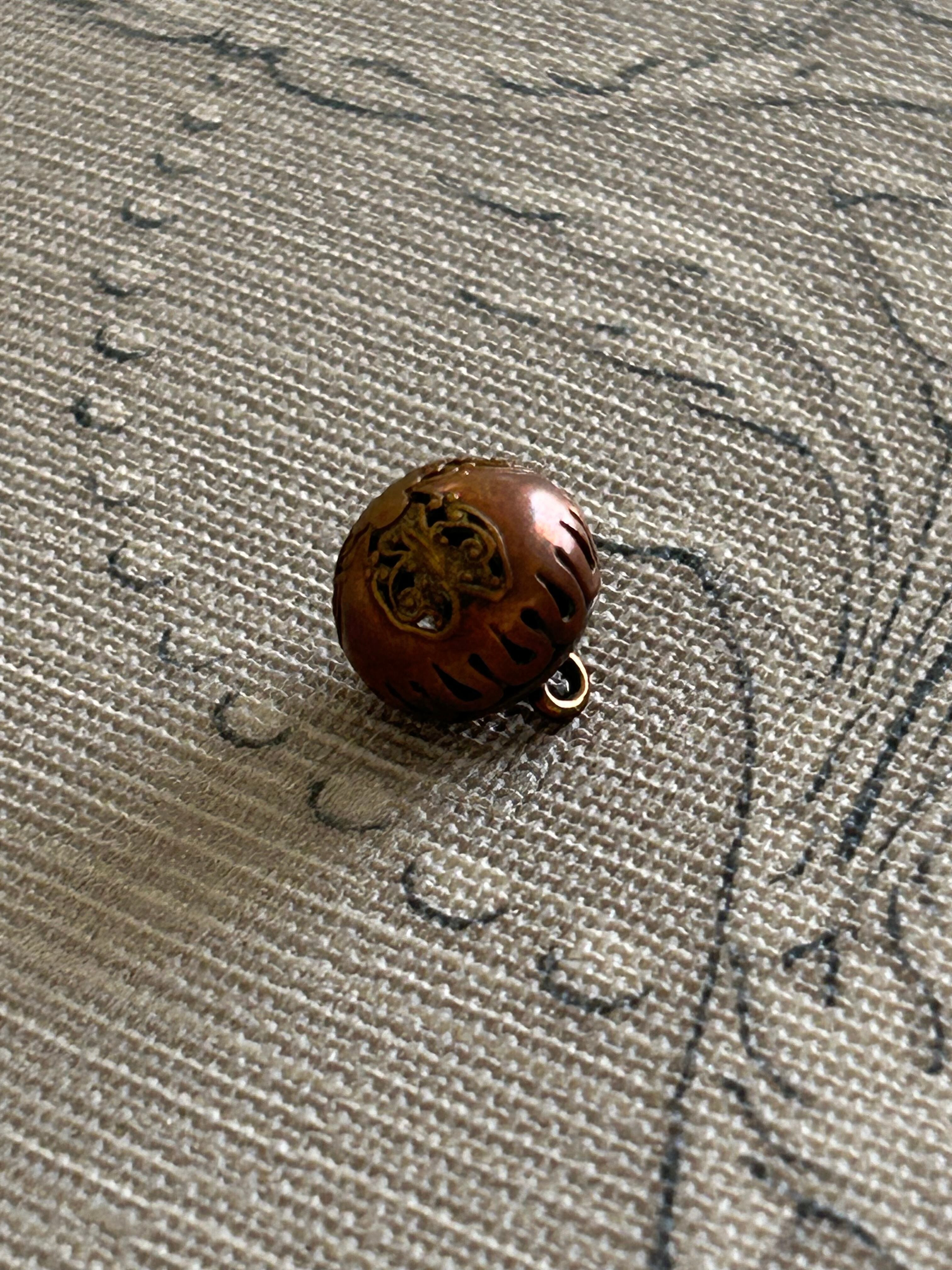 透かし模様がクラシカルで美しいドーム型のアンティークボタンです。