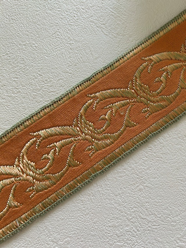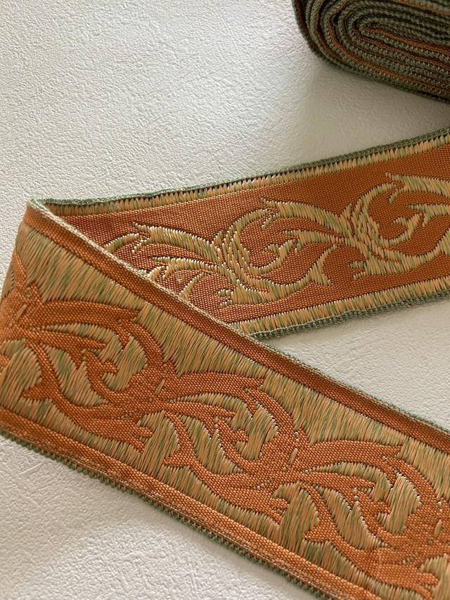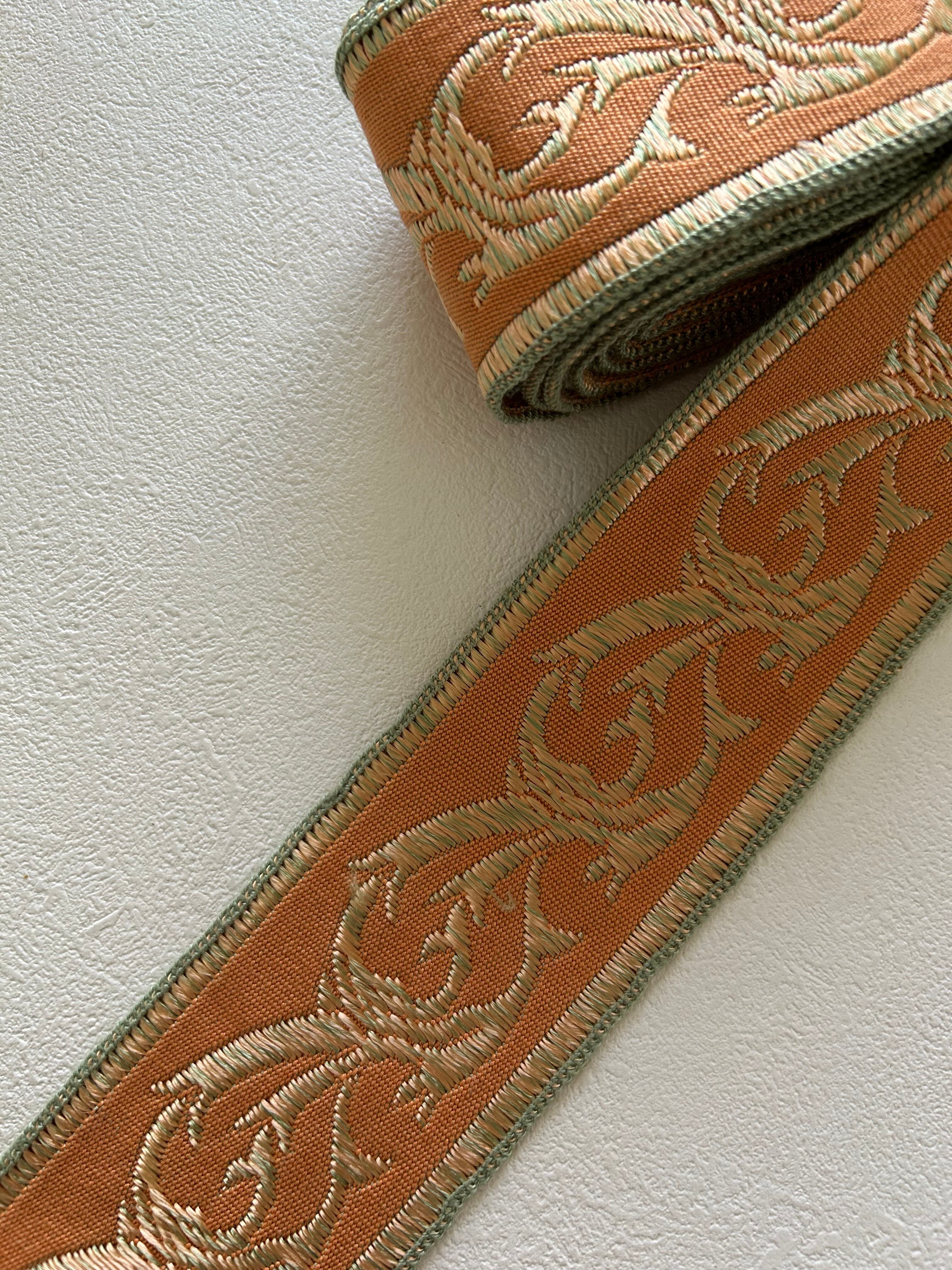 フランス 幅広ブレード 50cm/カット 60mm 織模様 ピンクオレンジ カルトナージュ デコレーション材