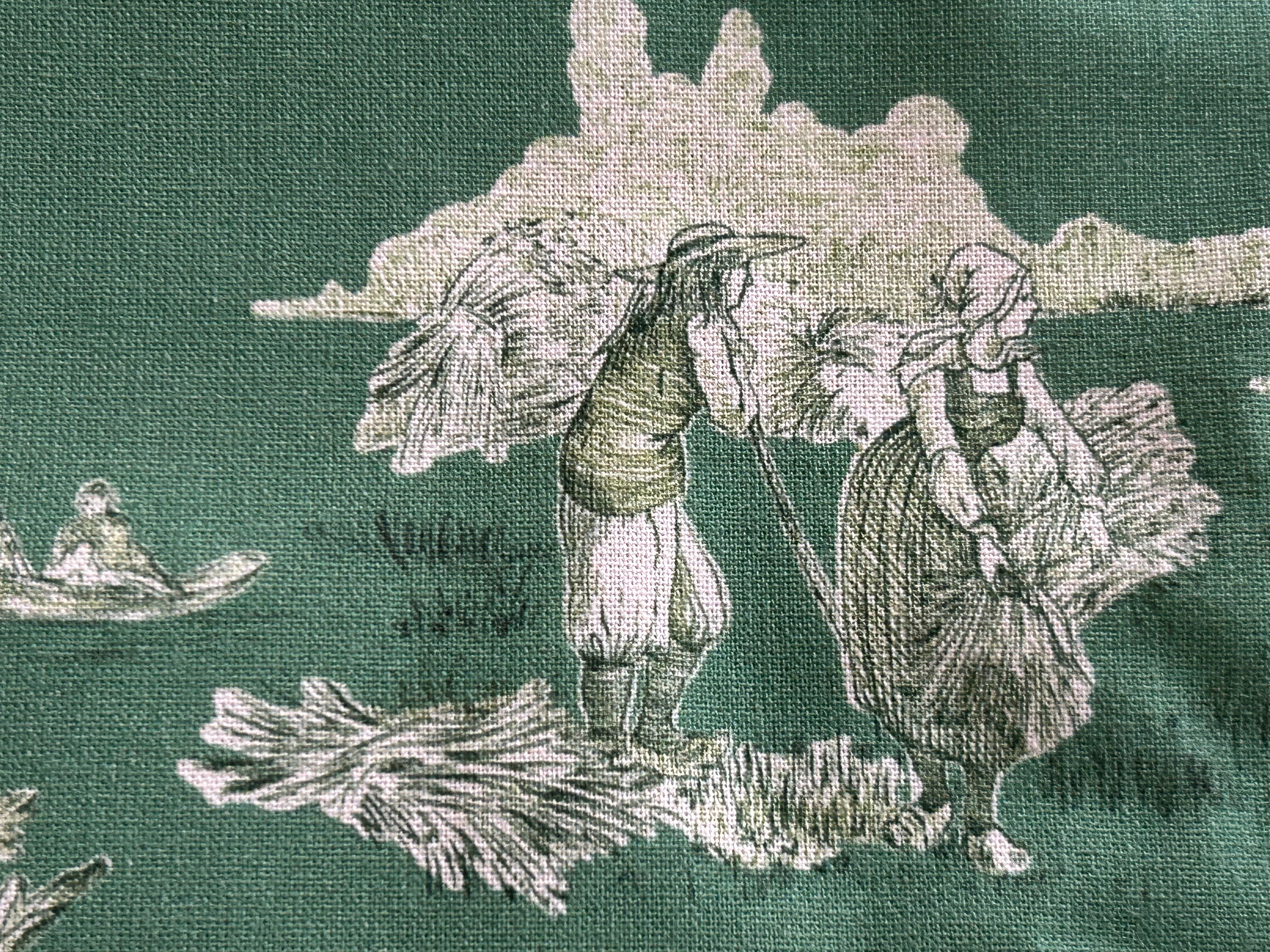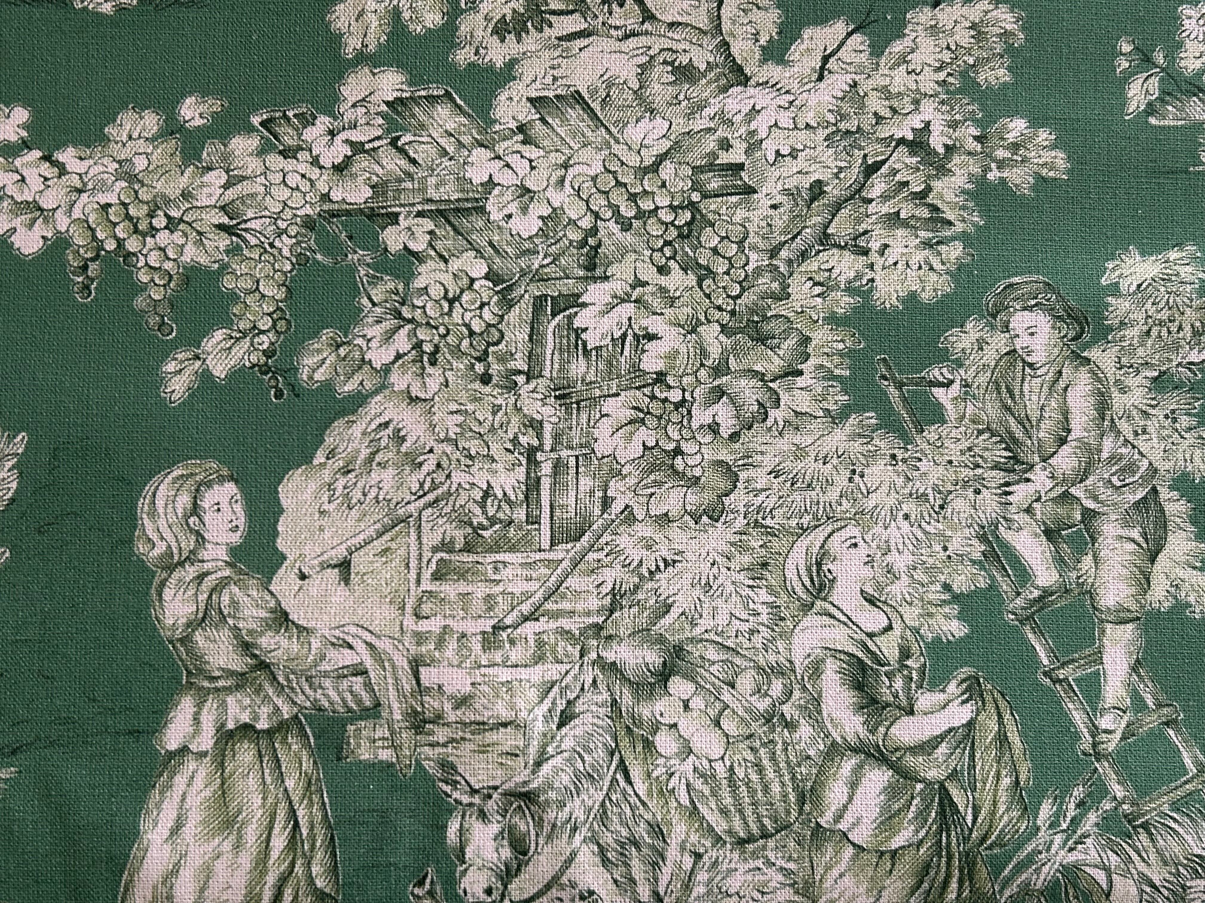 フランス コットンファブリック Pastorale パストラル Toile de Jouy 田園風景 グリーン カルトナージュ スツール 茶箱