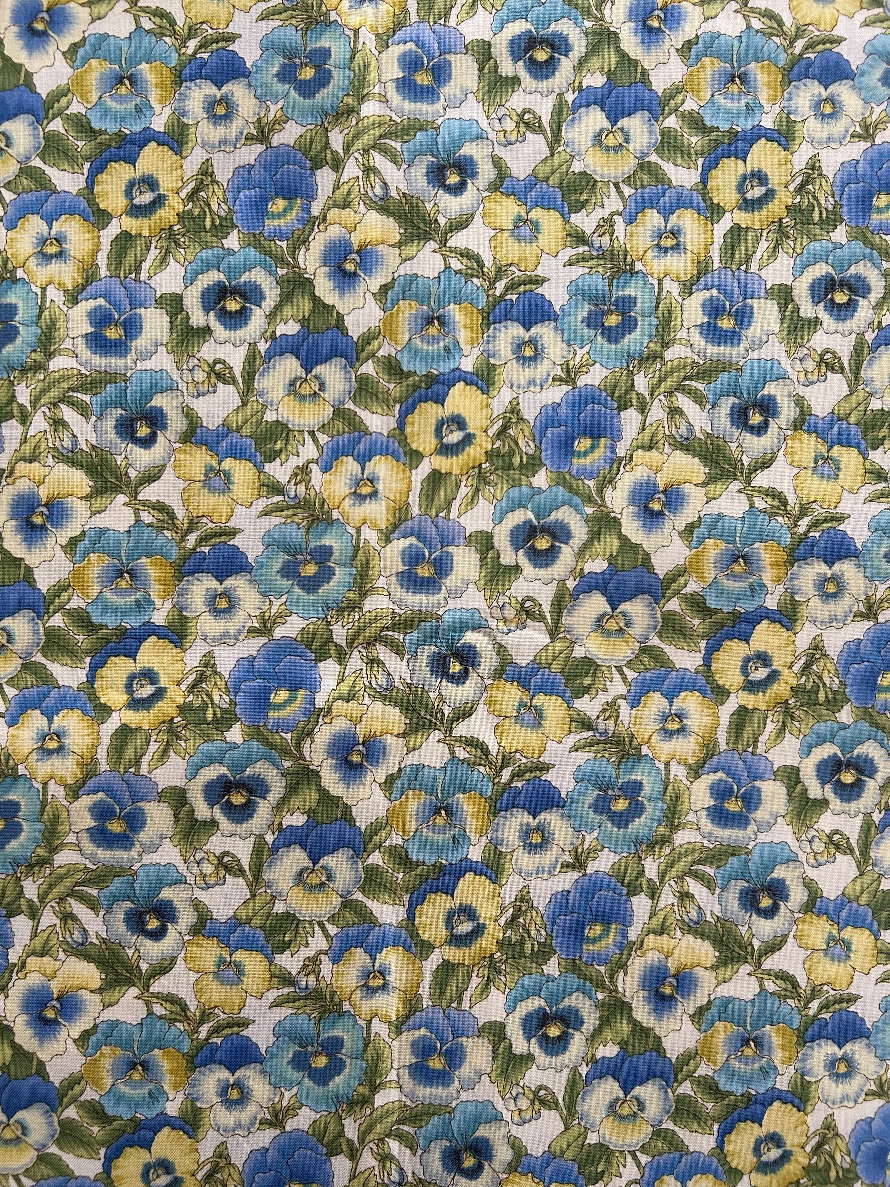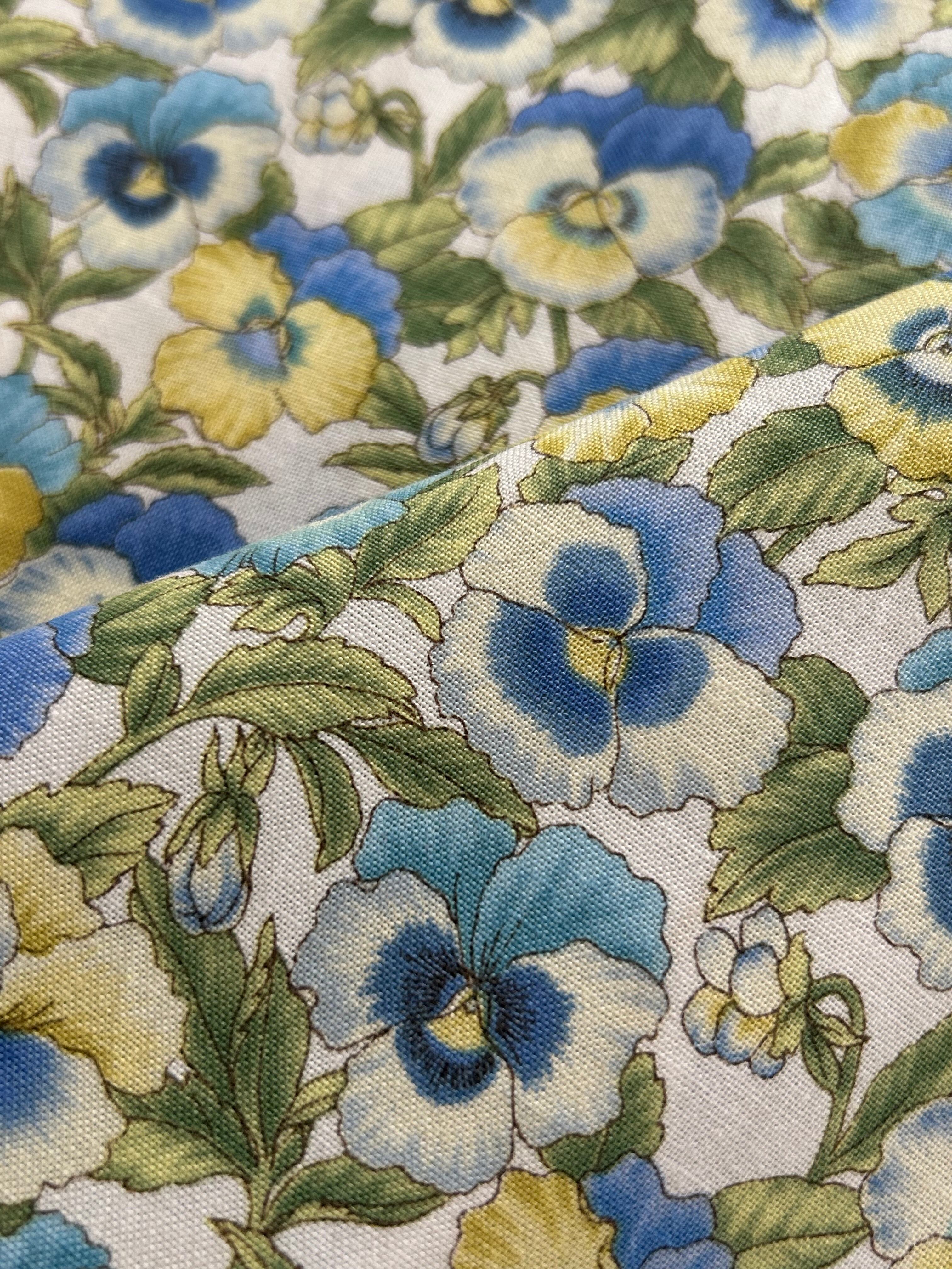 USA 輸入コットンファブリック パンジー柄 寒色系 ブルー系のパンジー 総柄 カルトナージュ