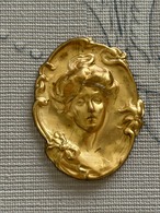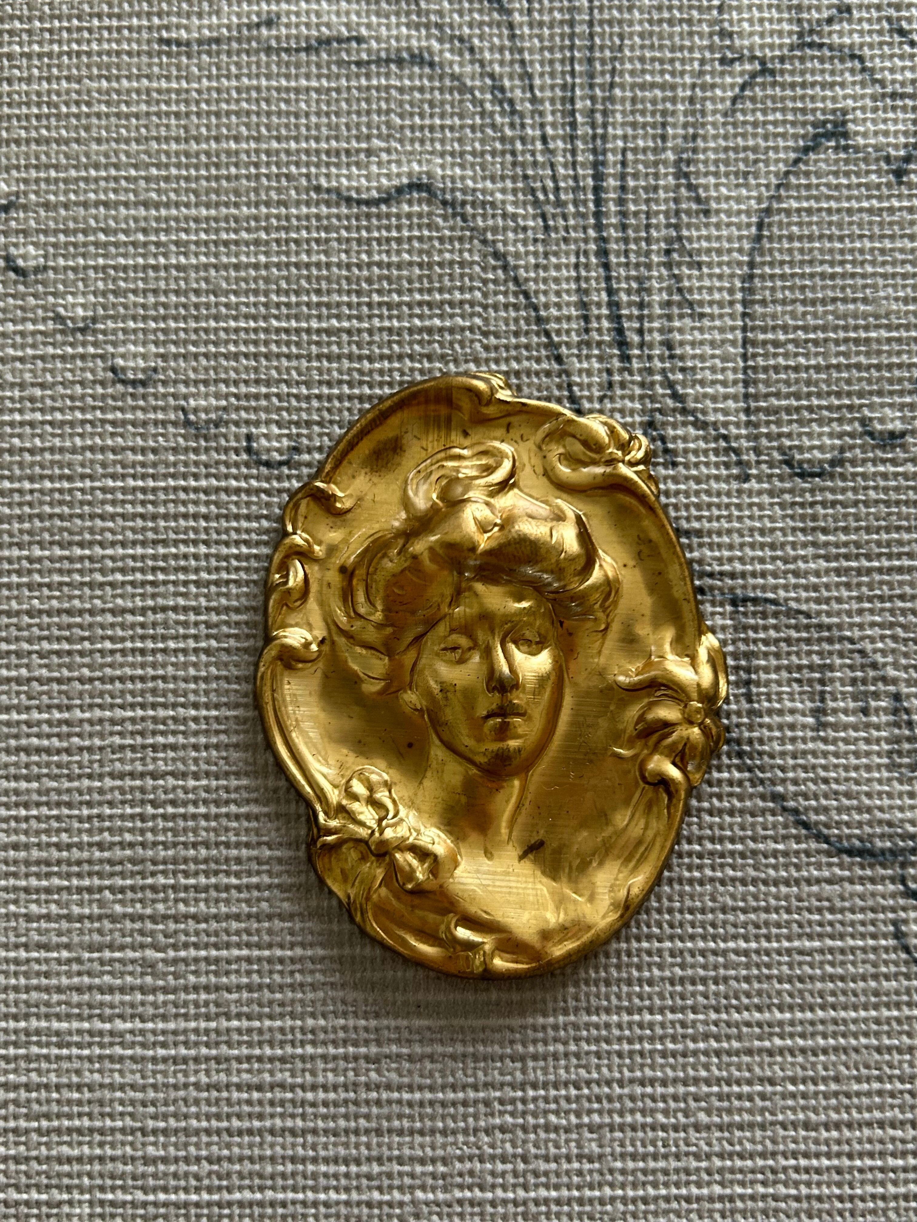 輸入デザインパーツ USA 貴婦人のフレーム カメオ風パーツ 真鍮製 スタンピングパーツ Ruban リボン アクセサリーパーツ デコレーション材 カルトナージュ ゴールド