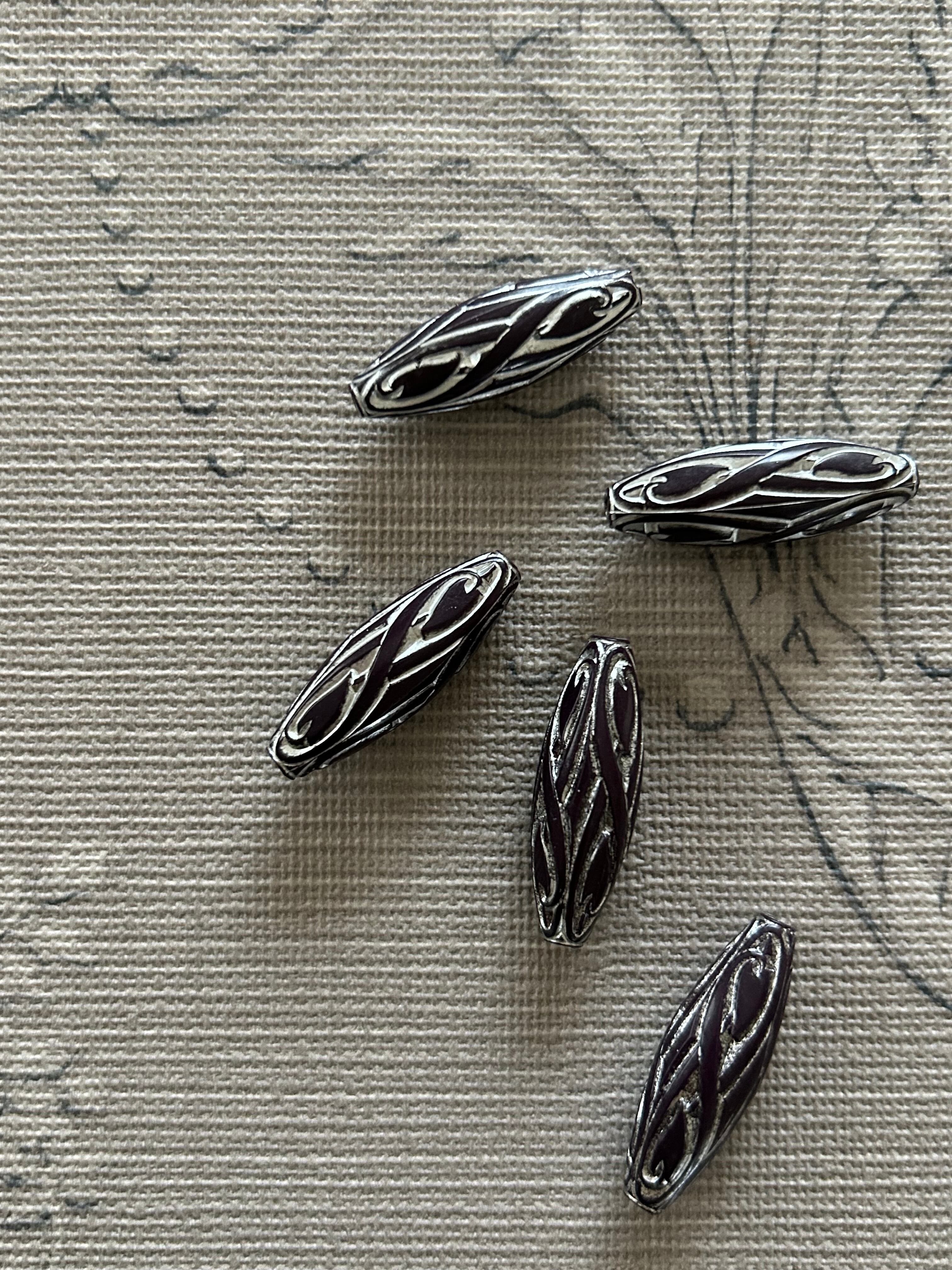 ドイツVintage ルーサイトビーズ 縦長ビーズ パープル×シルバー デッドストック アクセサリーパーツ