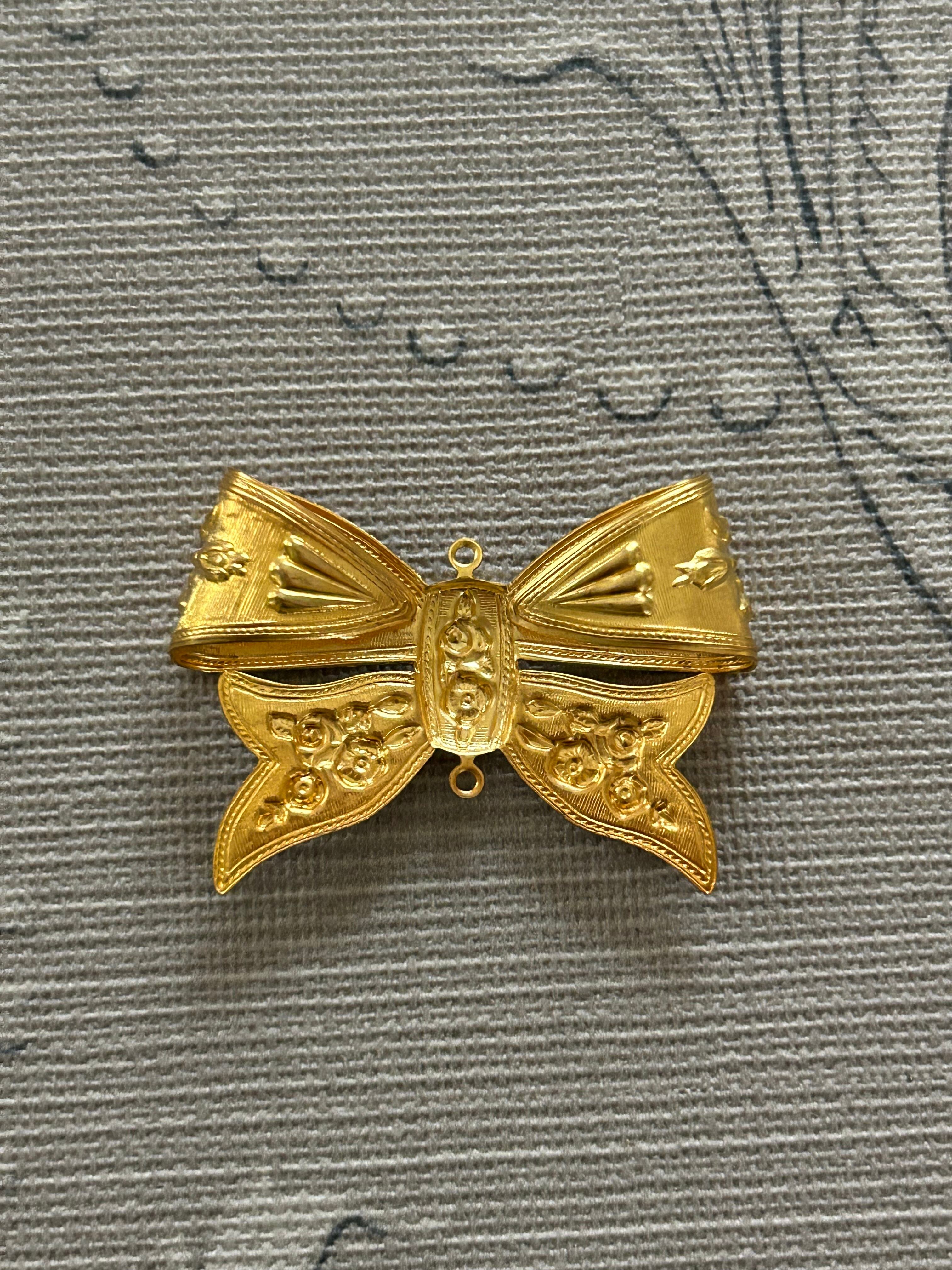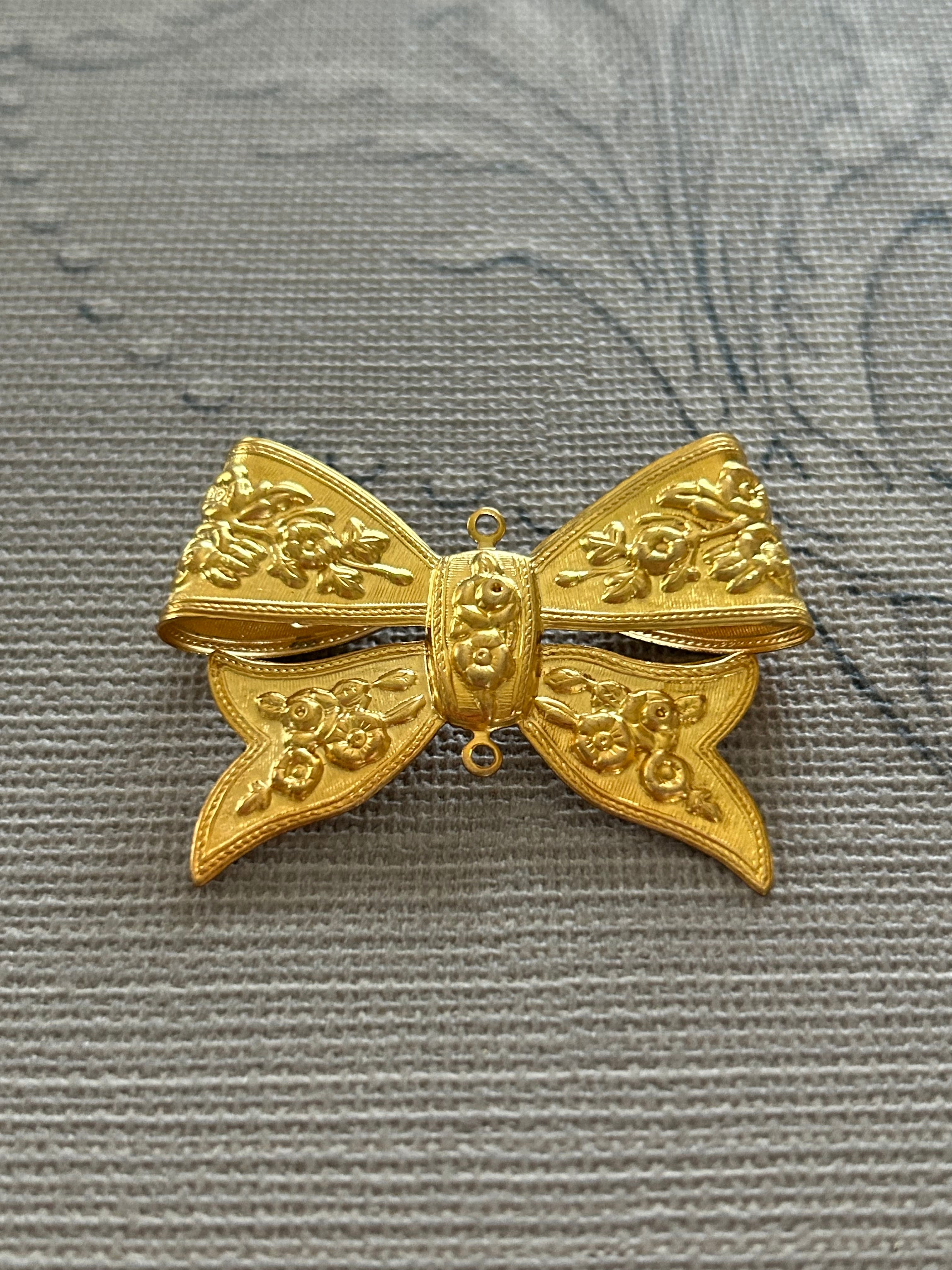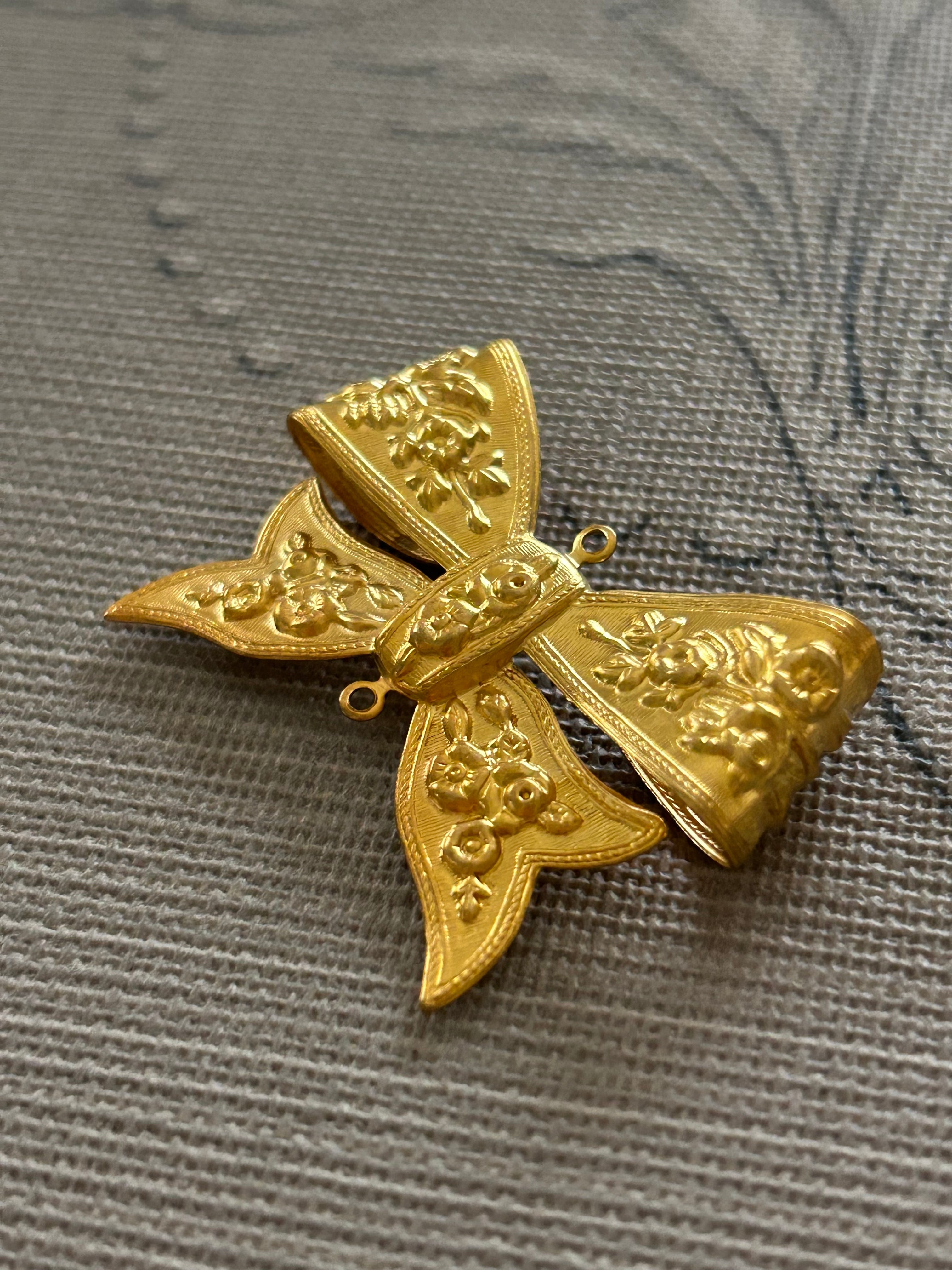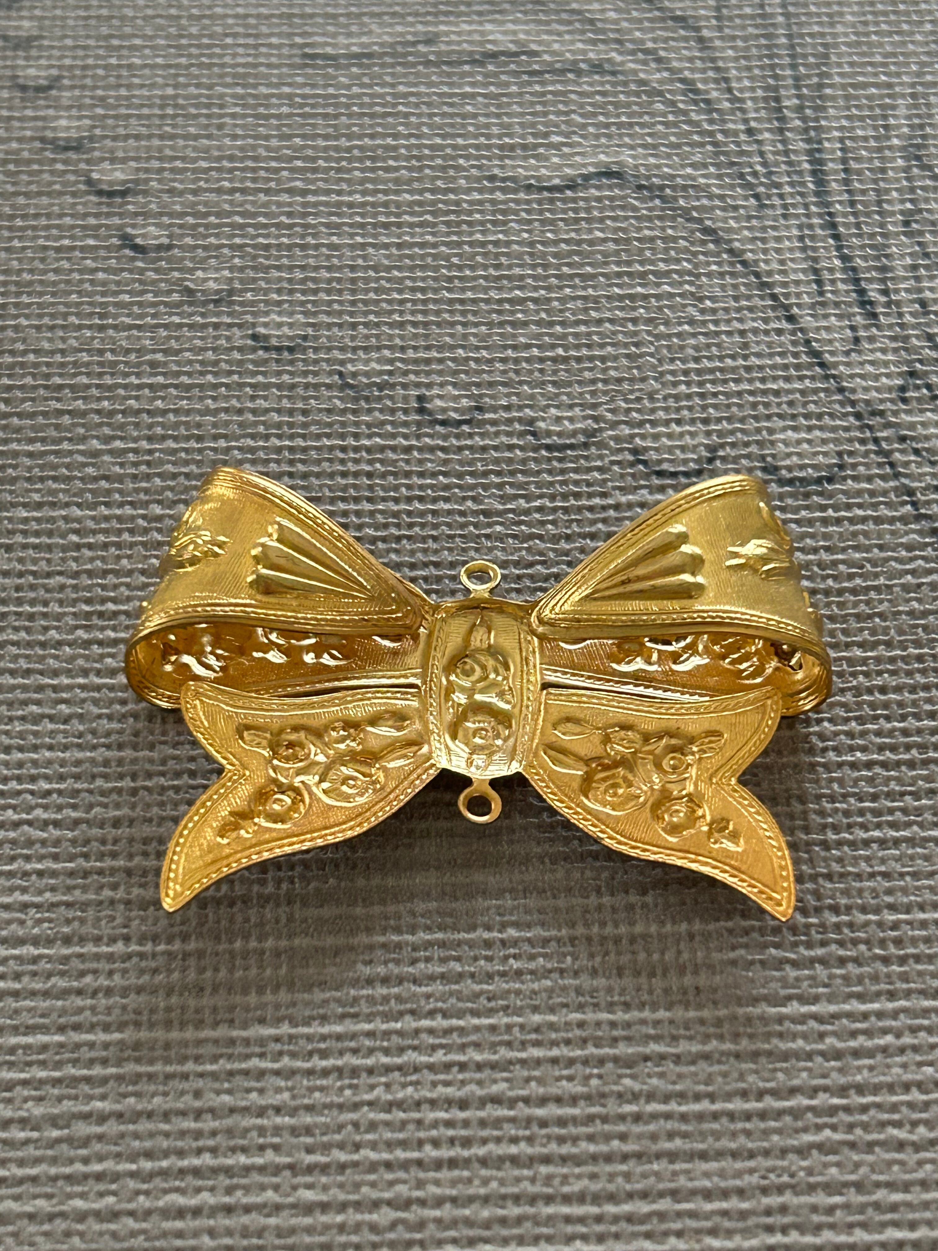 USA ブラス製パーツ Rose柄の立体型Ruban(リボン)真鍮 カン付 アクセサリーパーツ エンボス